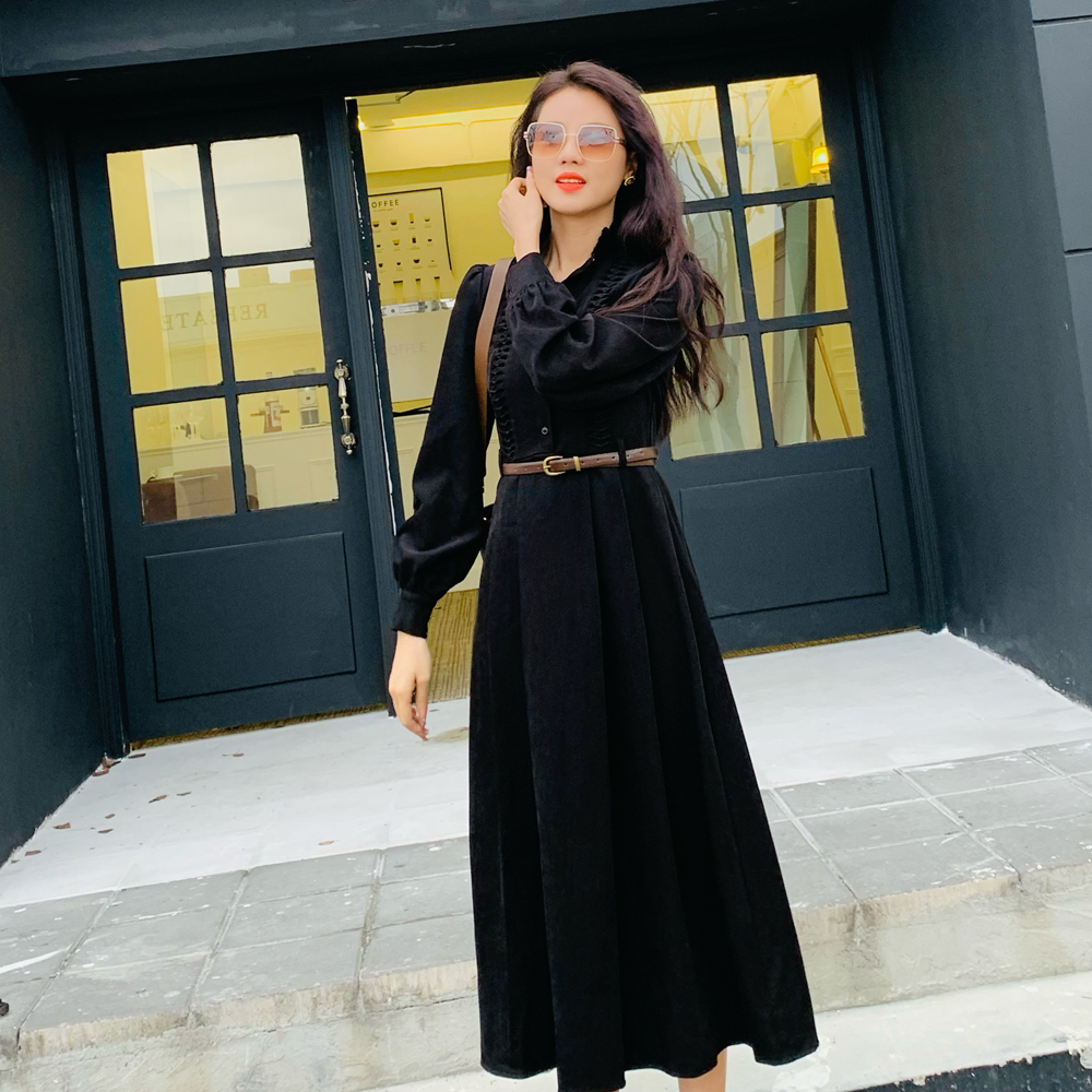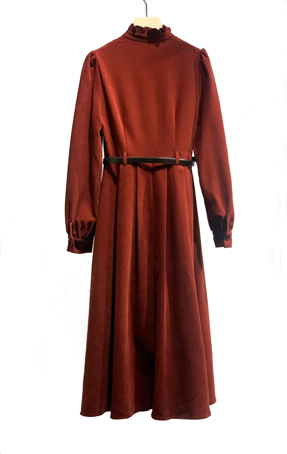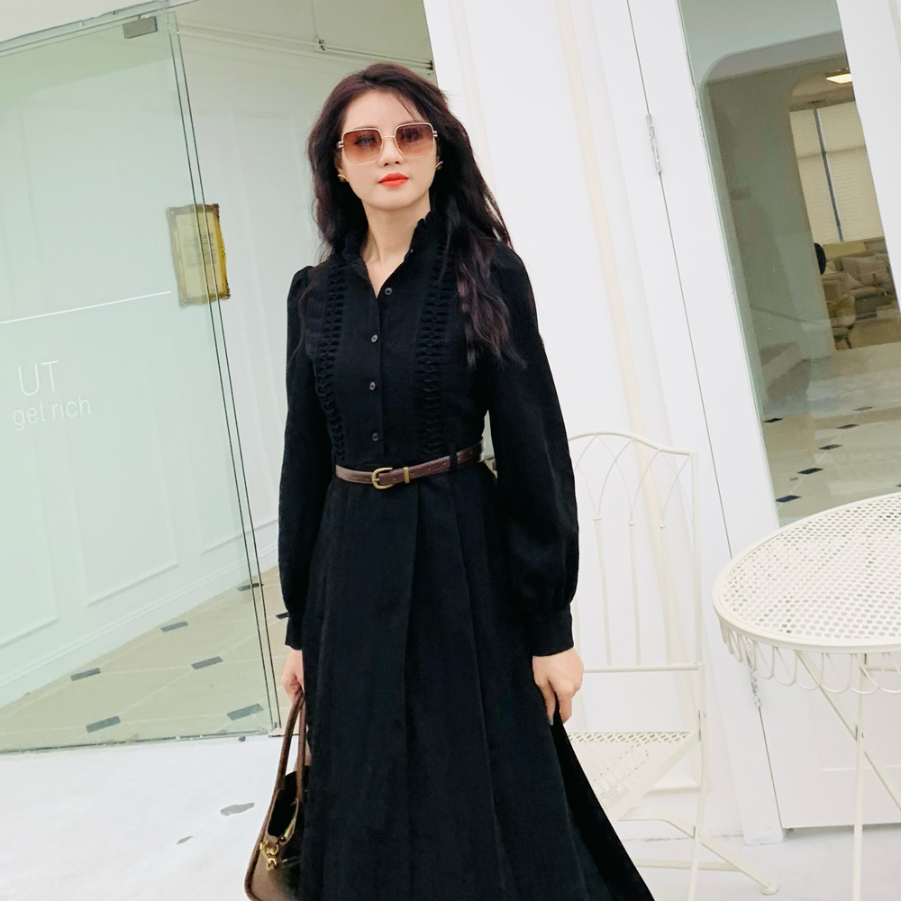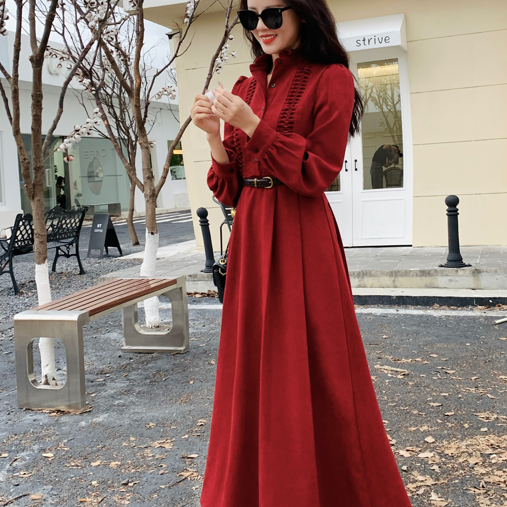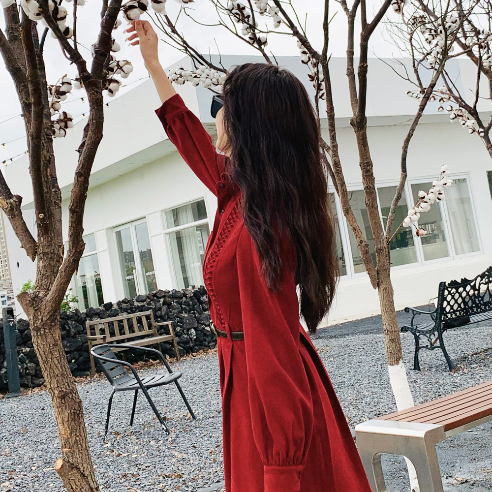 【百图lulu定制】【贵族连衣裙】【赠腰带】宫廷复古风 花边立领 灯芯绒 百褶裙摆 连衣裙