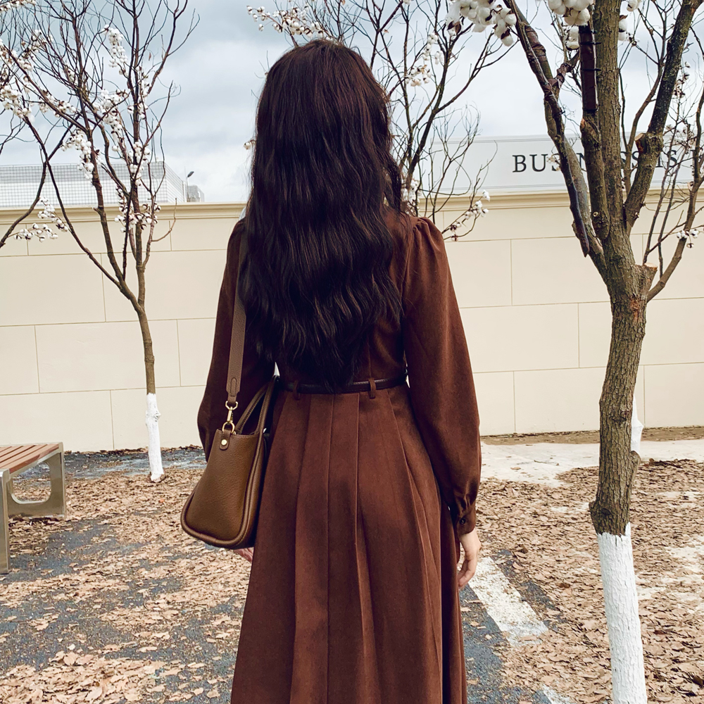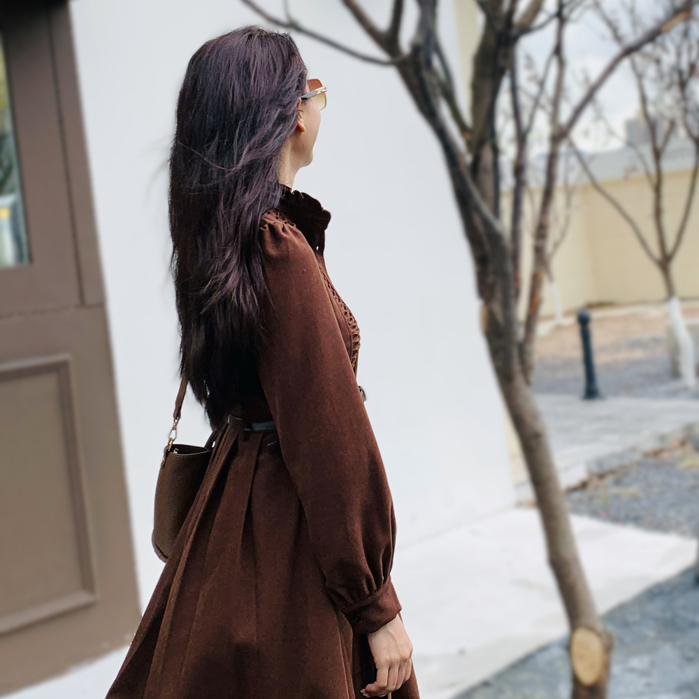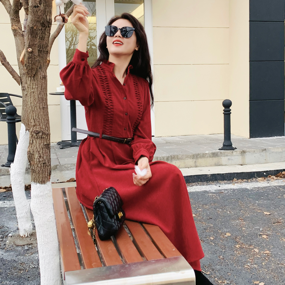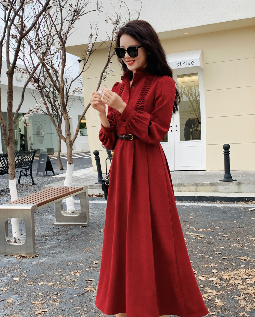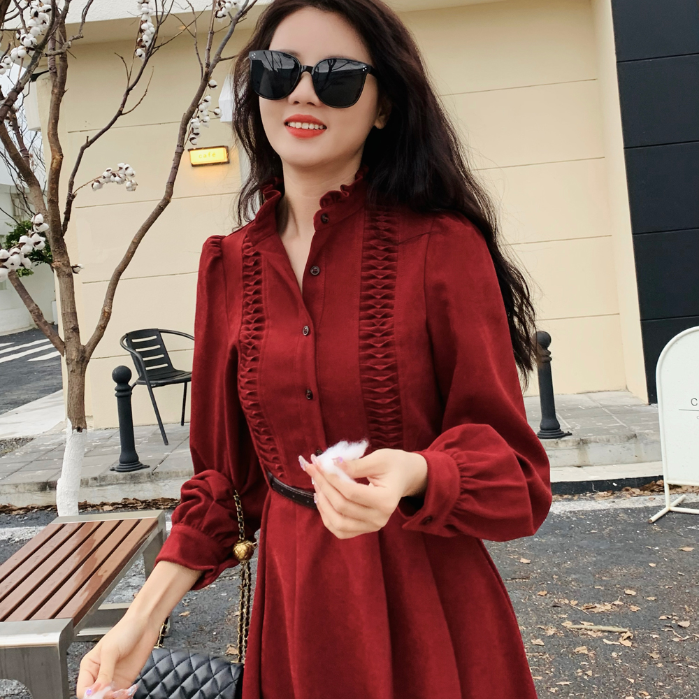 【百图lulu定制】【贵族连衣裙】【赠腰带】宫廷复古风 花边立领 灯芯绒 百褶裙摆 连衣裙