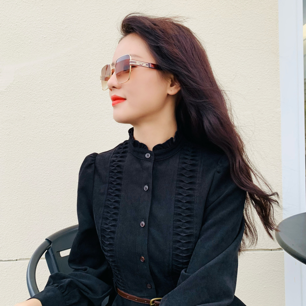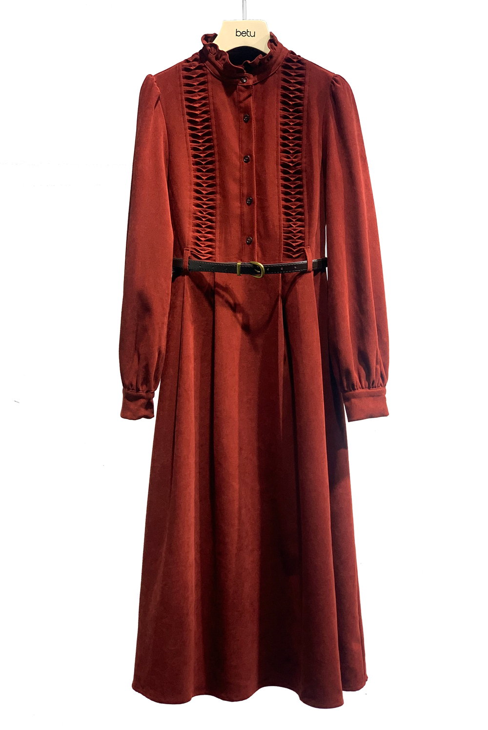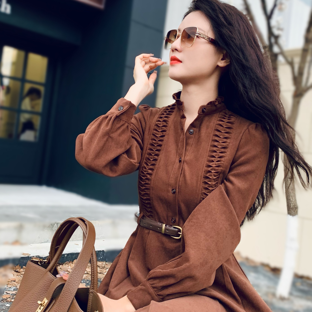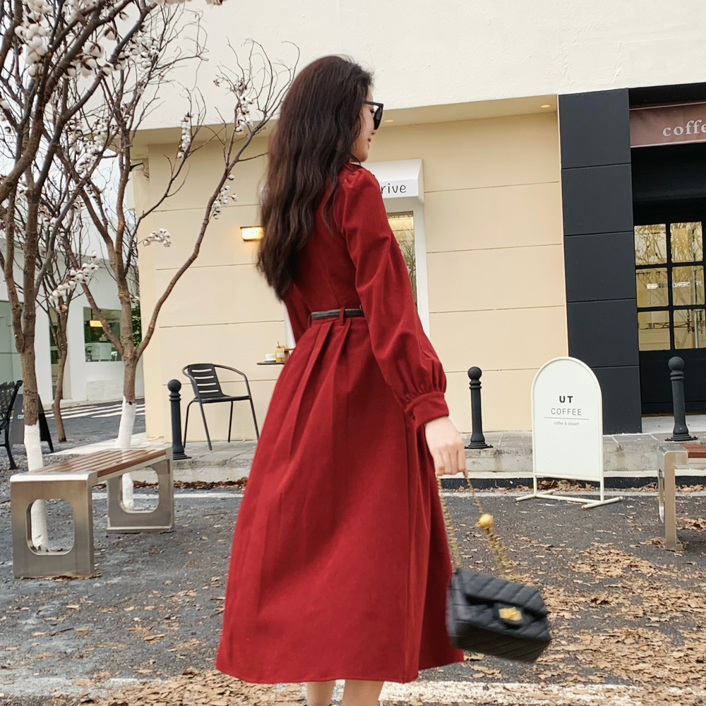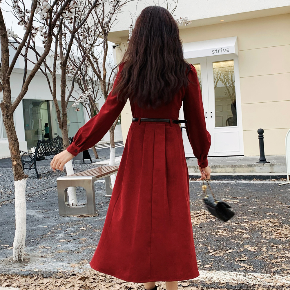 【百图lulu定制】【贵族连衣裙】【赠腰带】宫廷复古风 花边立领 灯芯绒 百褶裙摆 连衣裙