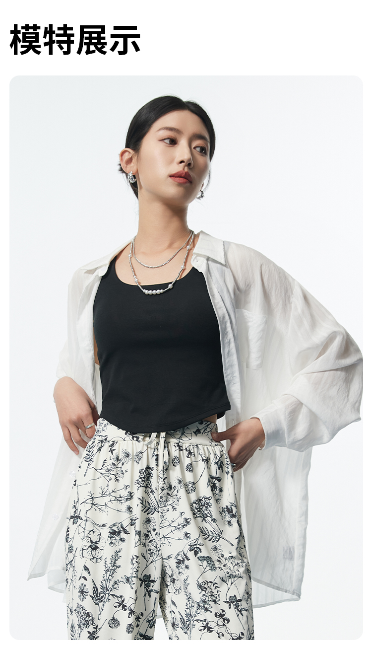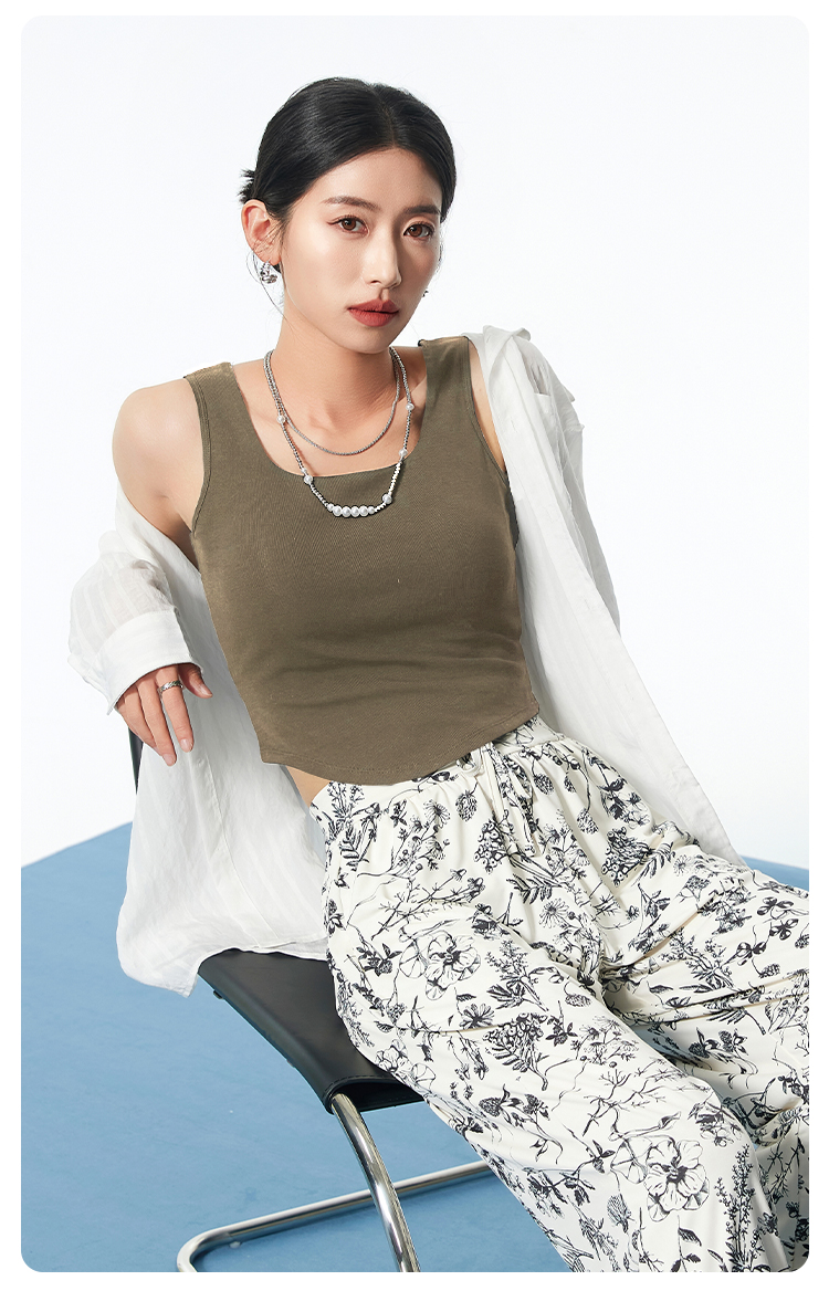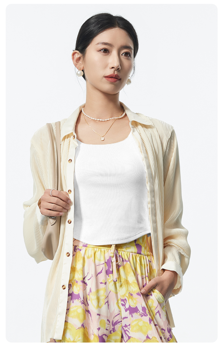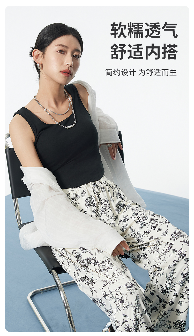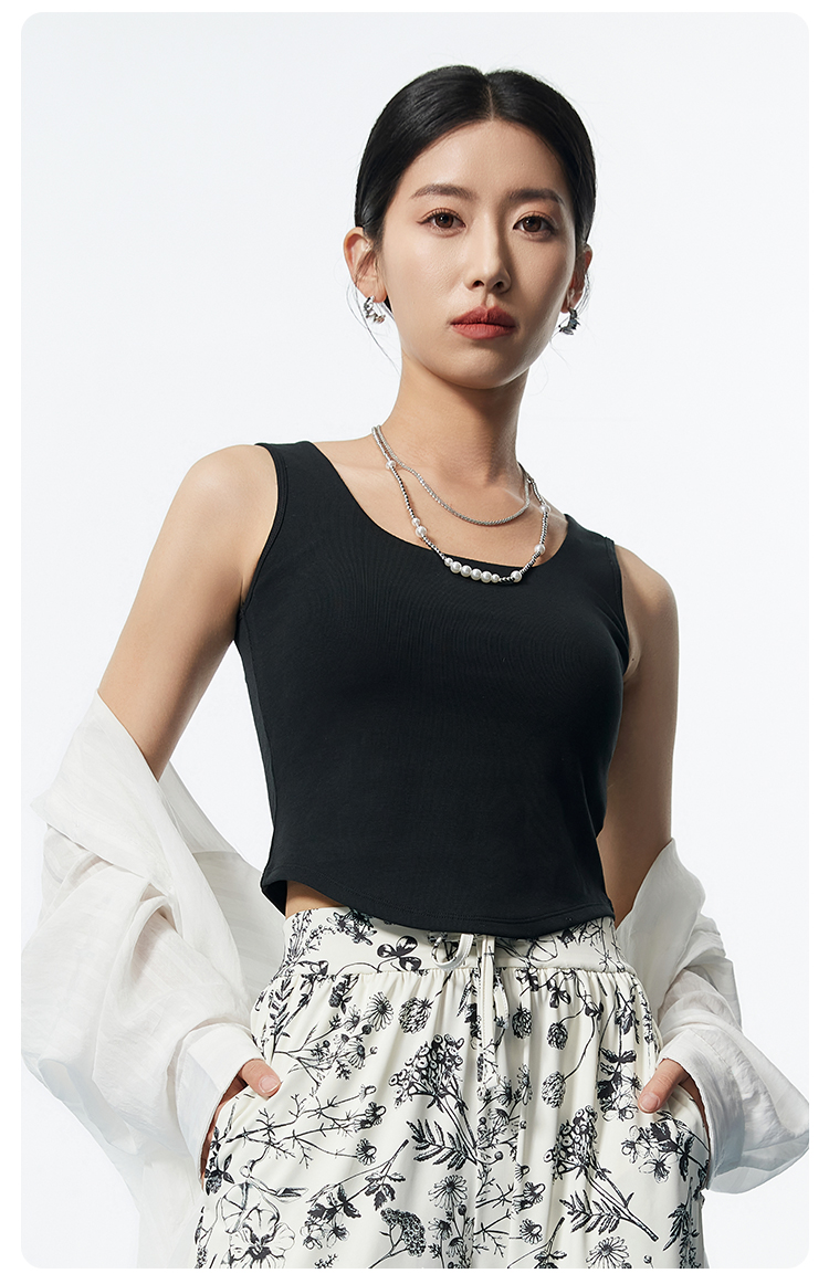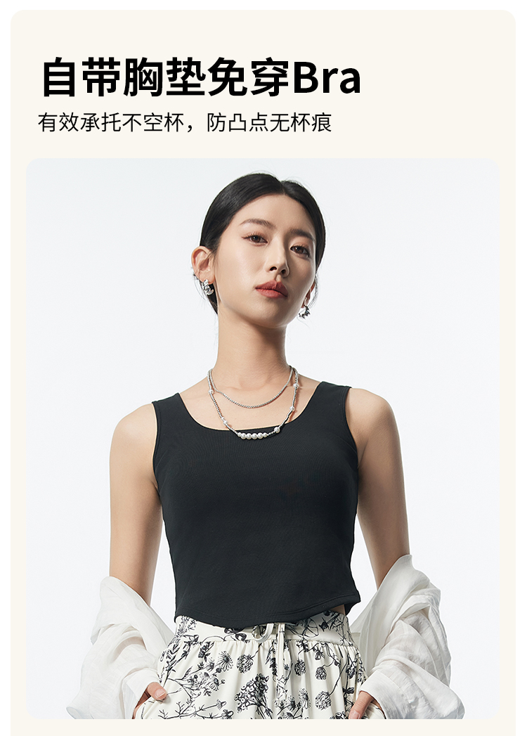 I'd爱帝桑蚕丝弧形下摆短款背心修身显瘦自带胸垫打底背心
