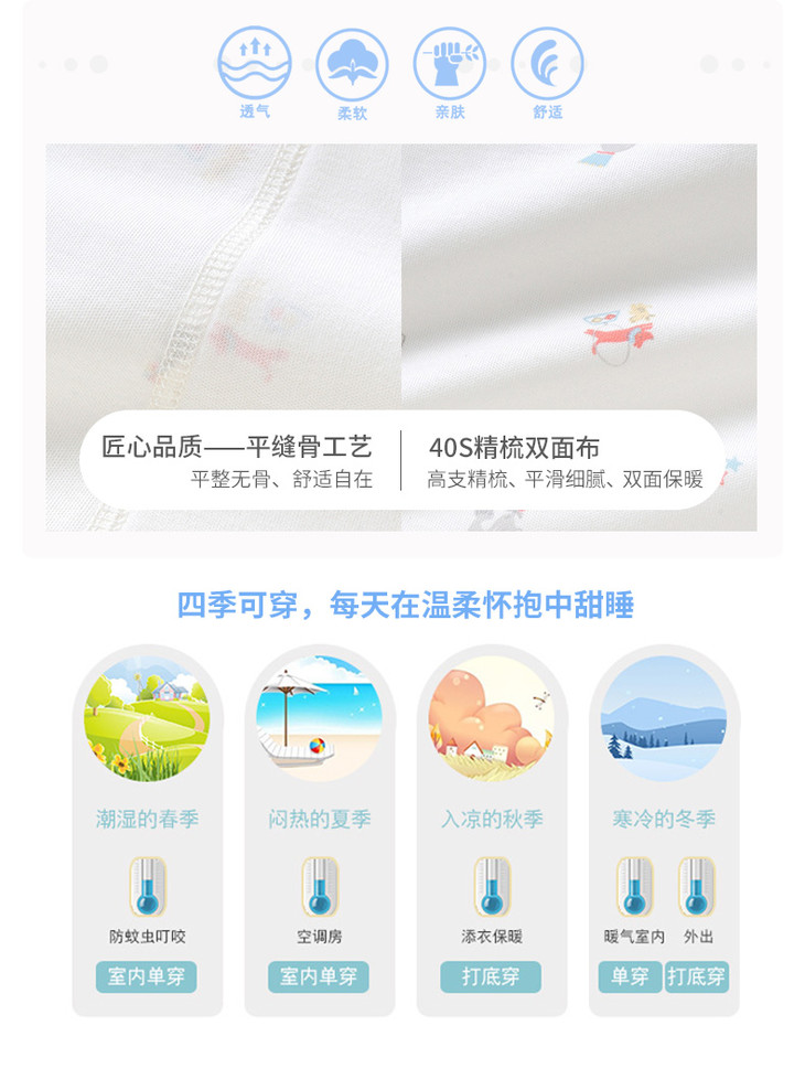 英氏婴儿睡袋男女宝宝分腿可拆袖薄棉双向拉链10096686 10096685
