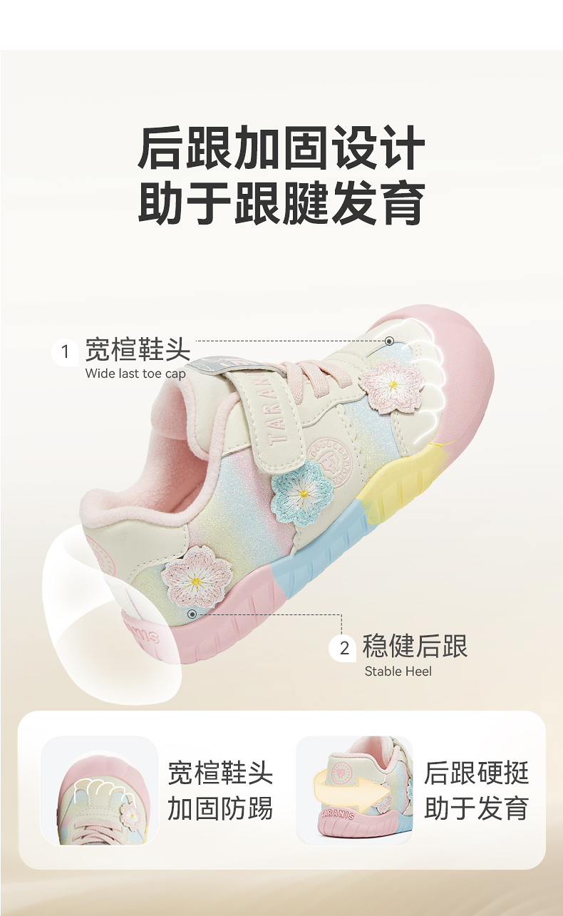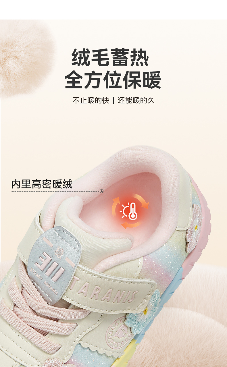 泰兰尼斯童鞋冬季新品311幼儿园鞋室内加绒女童甜美休闲入园板鞋T02X5D6897
