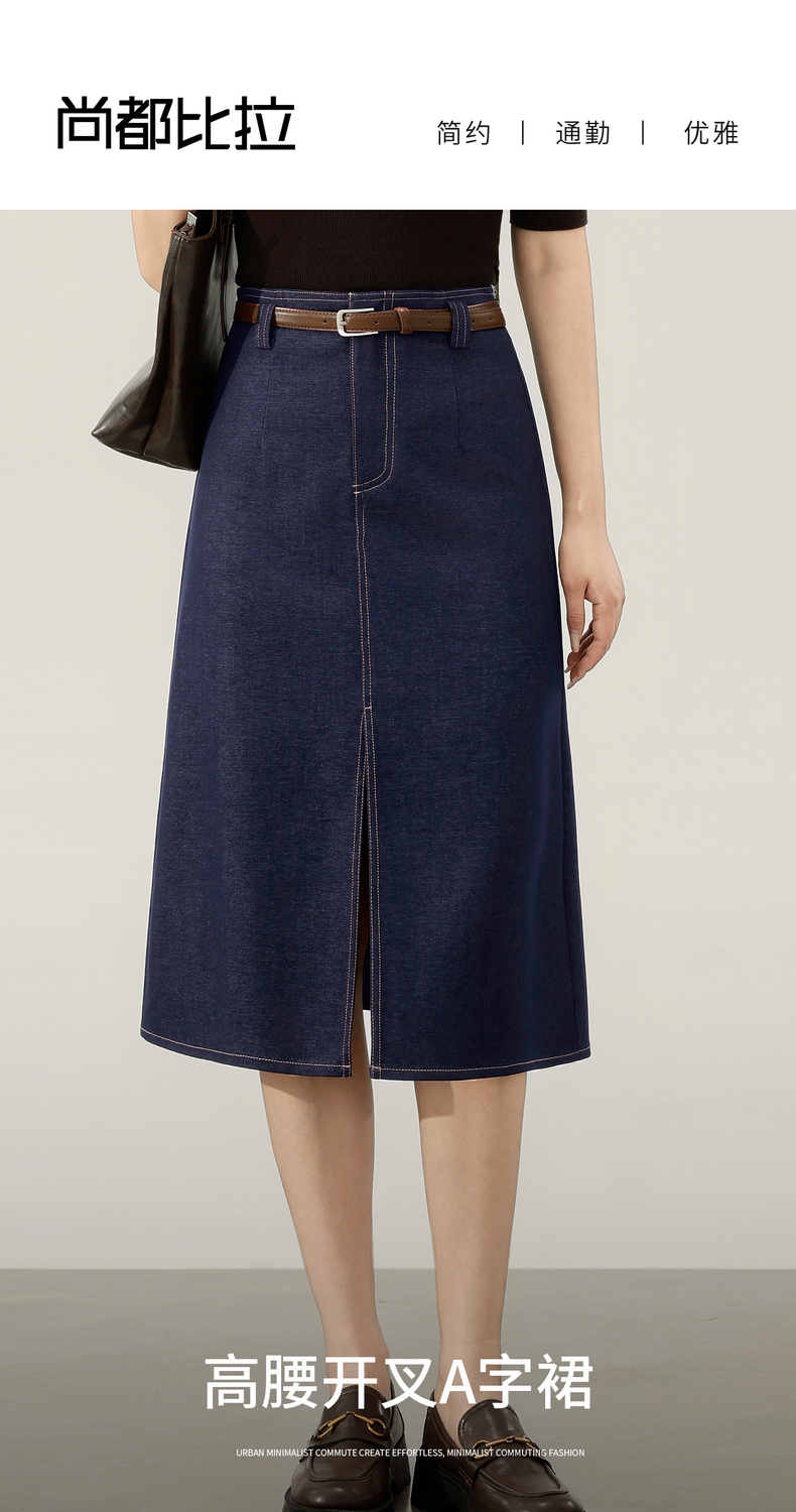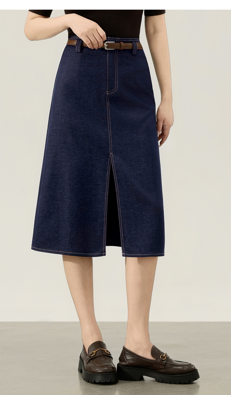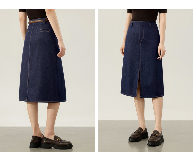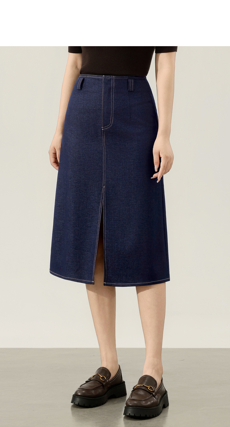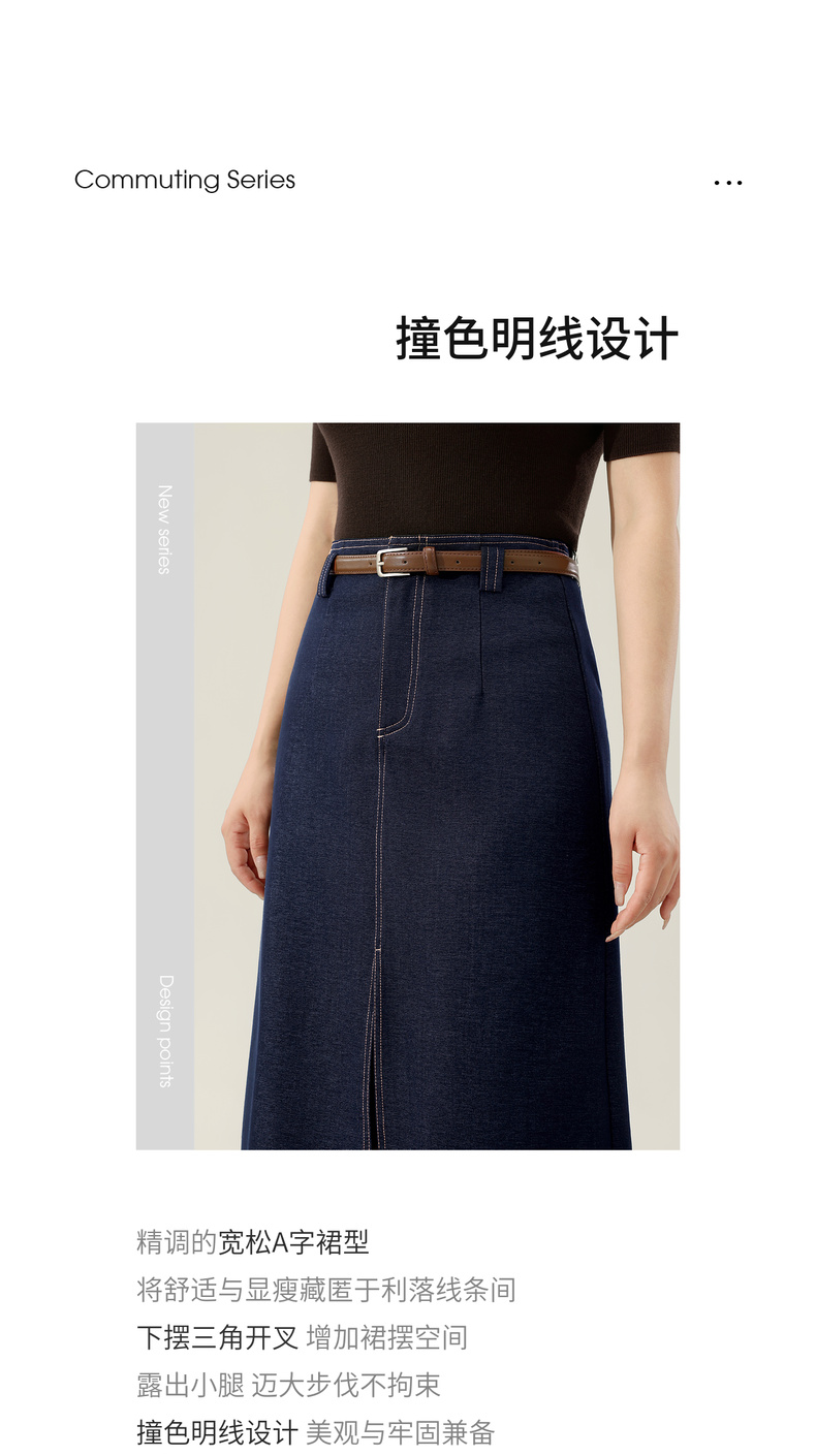 【内购】【易搭配】通勤撞色明线开叉设计高腰宽松藏肉显瘦A字半身裙-153QN2521