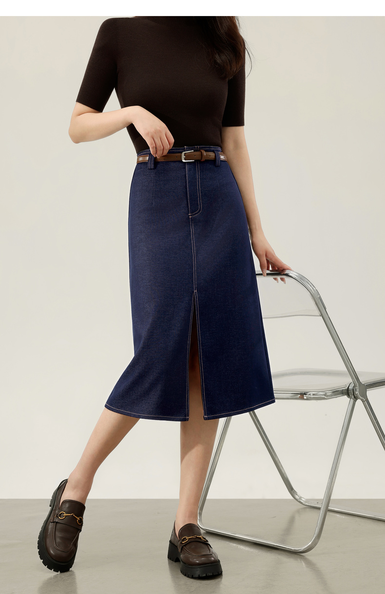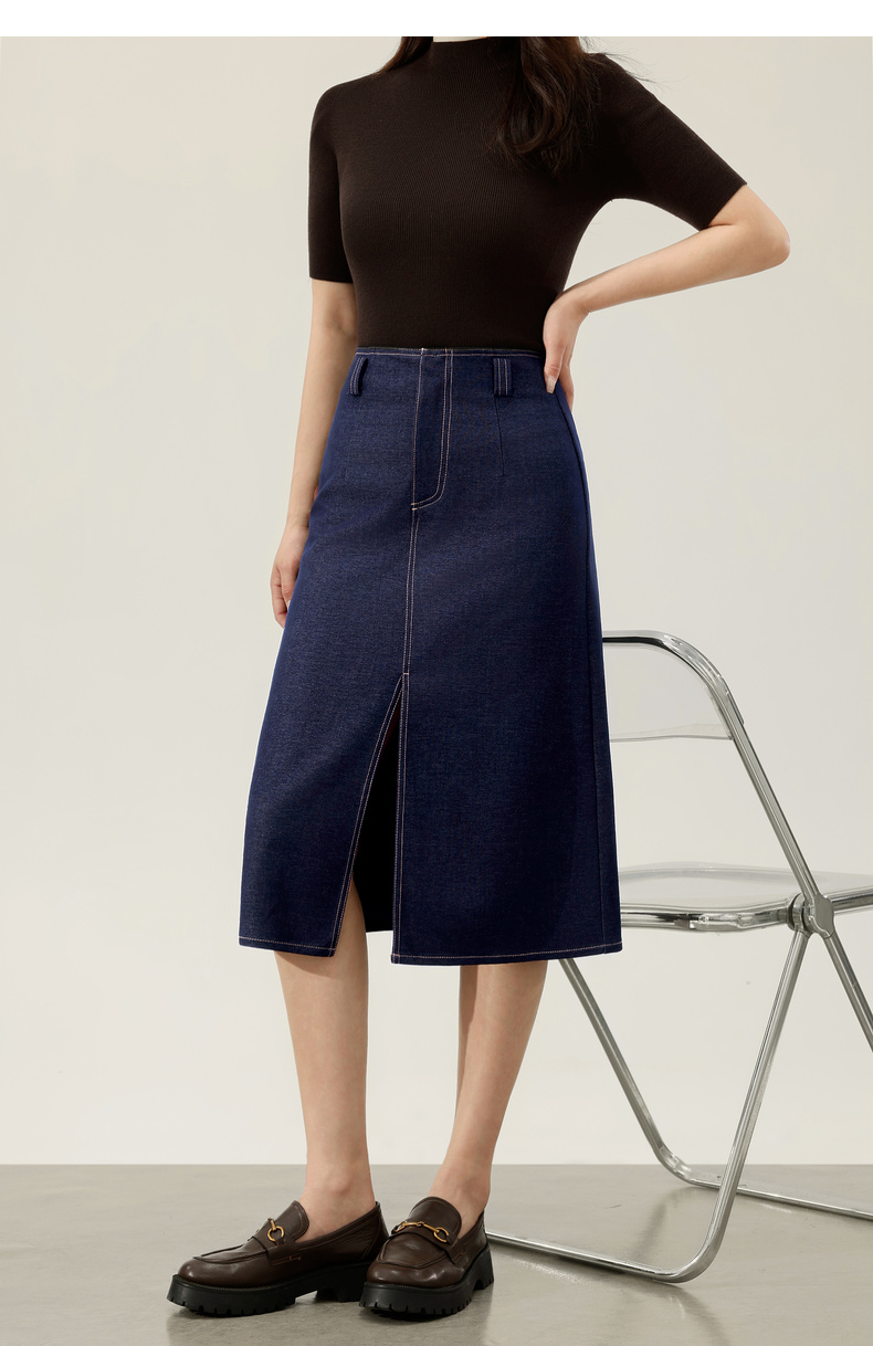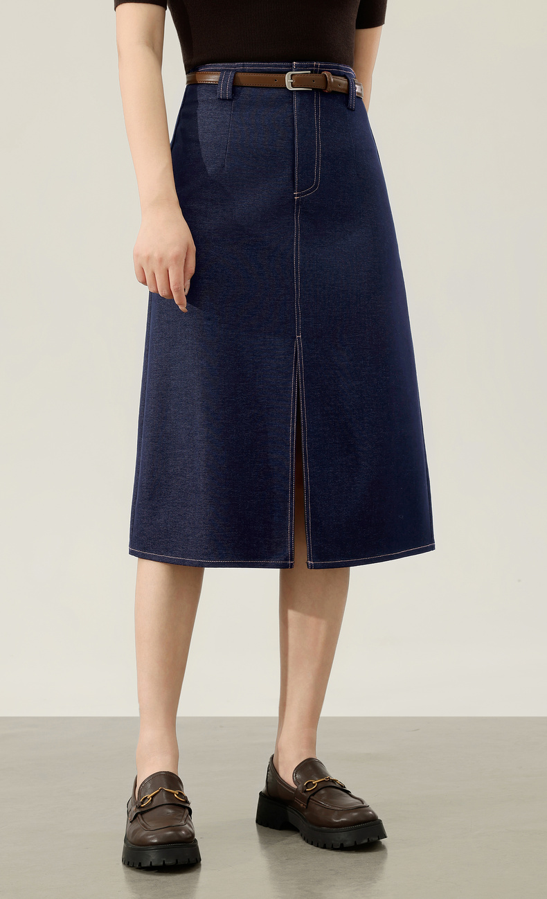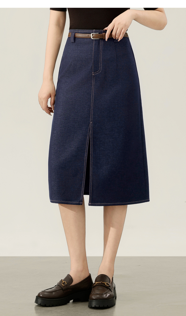 【内购】【易搭配】通勤撞色明线开叉设计高腰宽松藏肉显瘦A字半身裙-153QN2521