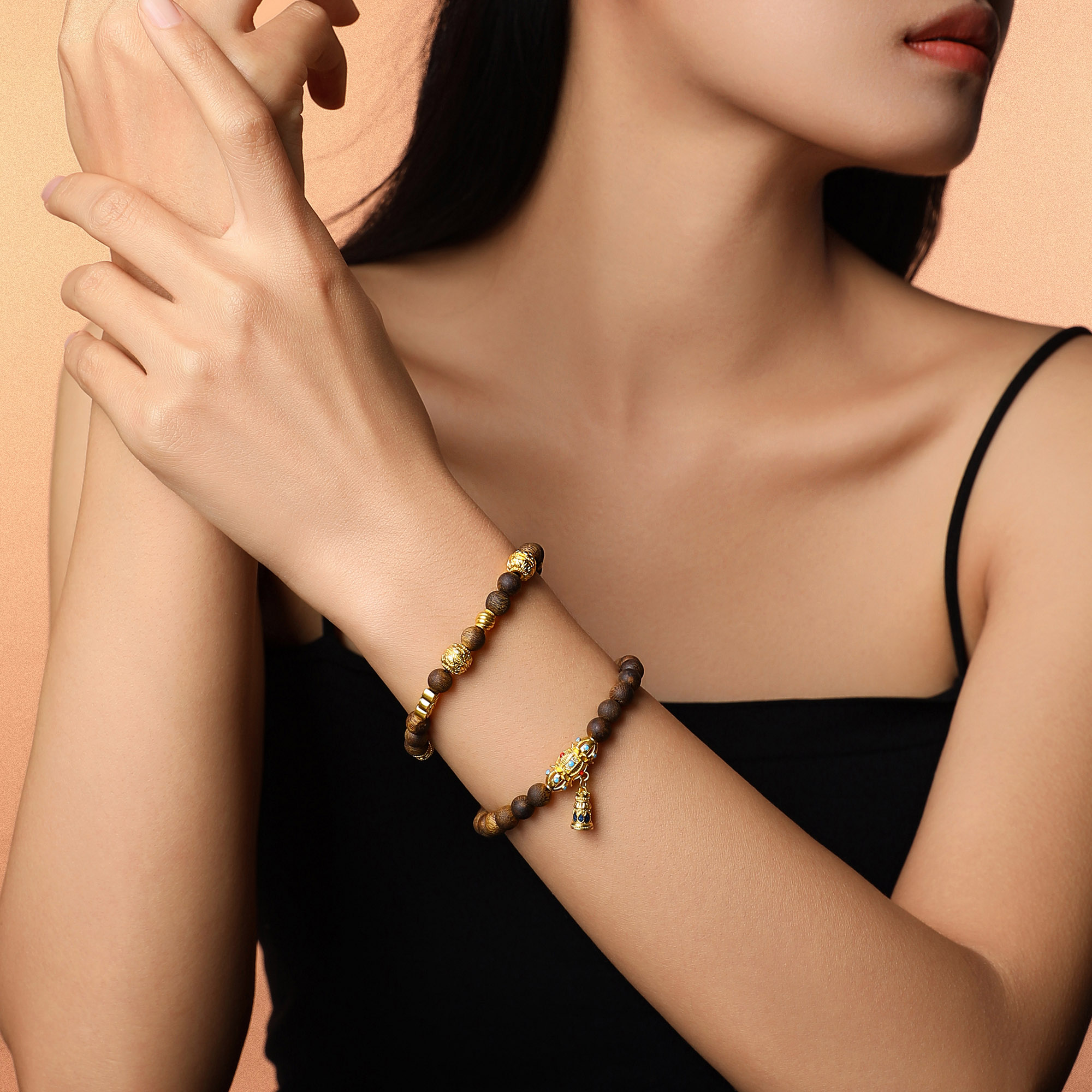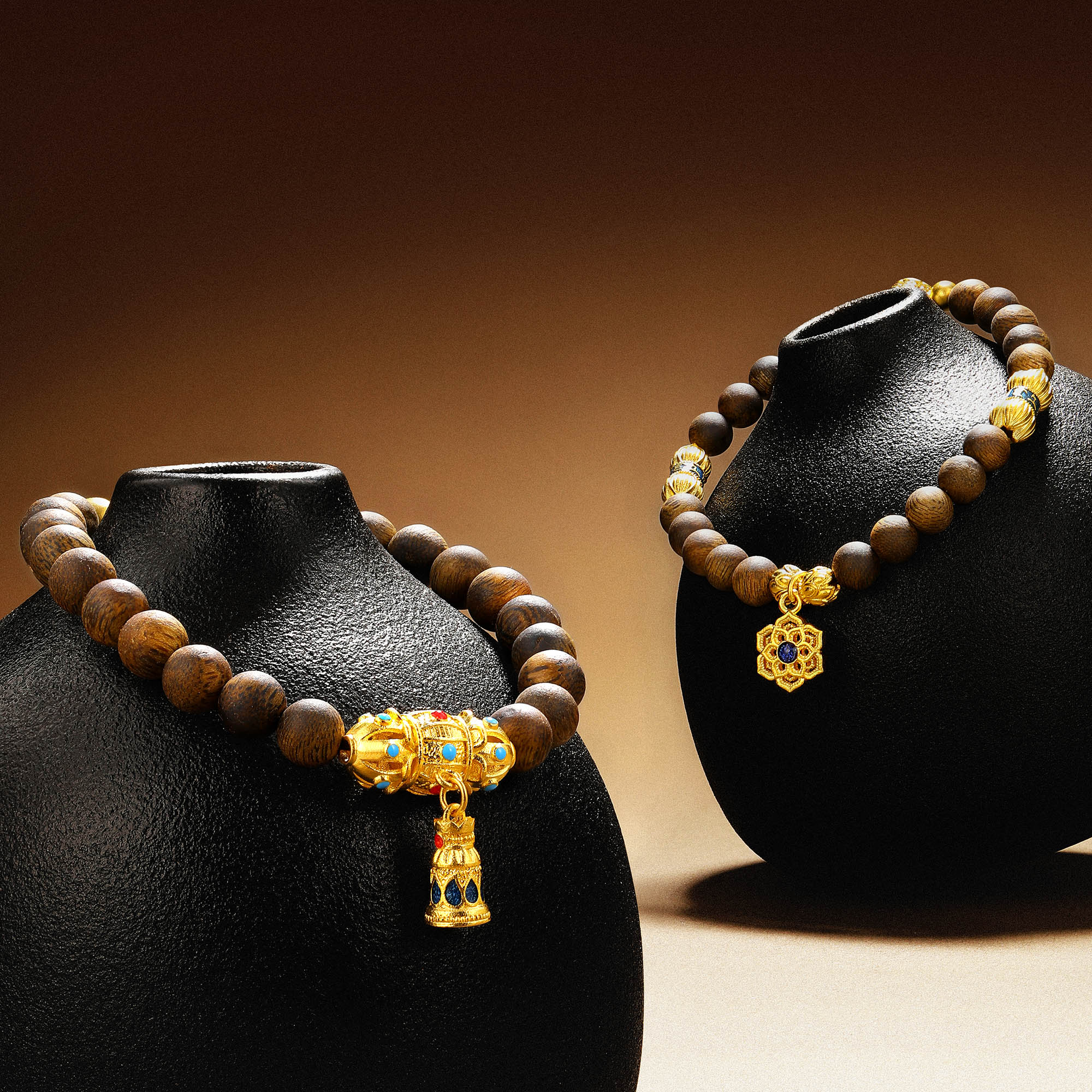 沉香珠子融合寓意祥瑞的黄金配饰