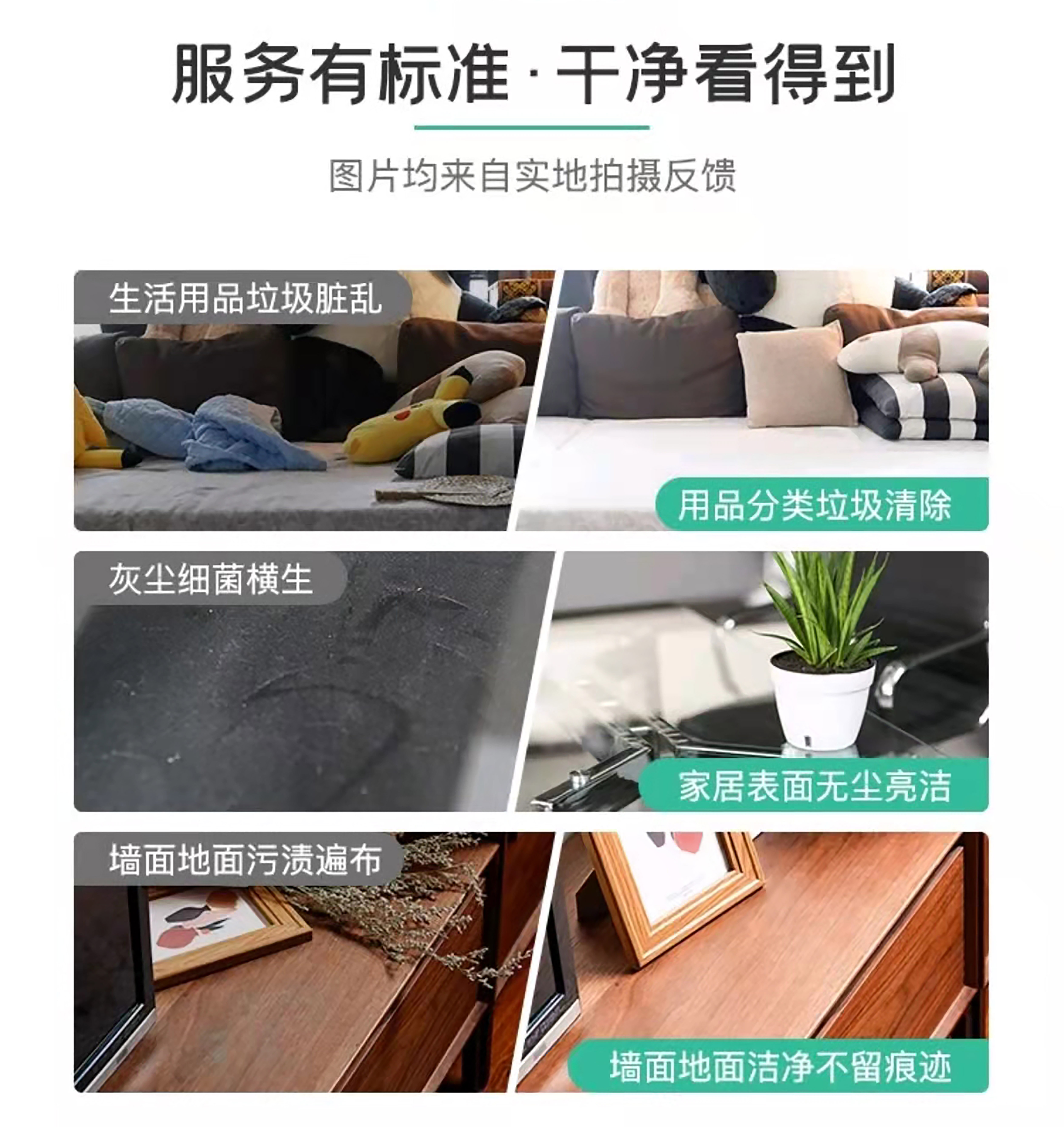 2、本服务不包含油烟机拆卸、地板抛光打蜡、家电清洗、洗衣服做饭等服务内容,不包含家具内部、字画、古董、易损易碎摆件、天花板及附属品(吊灯、吊顶等)。若您有以上保洁需求请咨询管家哟。