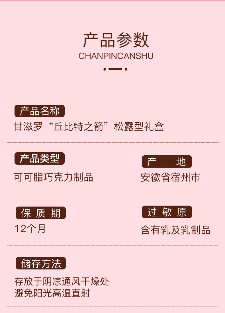 【甘滋罗情人节丘比特之箭可可脂巧克力礼盒】休闲零食情人节礼盒丘比特之箭表白礼物混合味310g