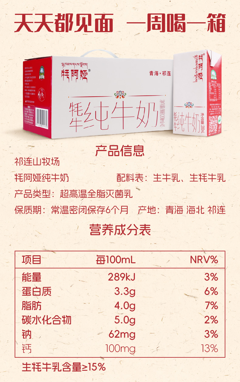 天境雪域青海祁连天境雪域牧场 牦牛奶含量≥15%