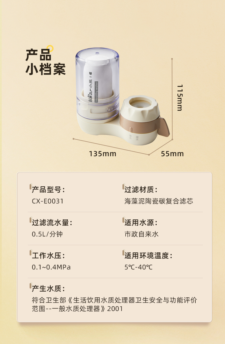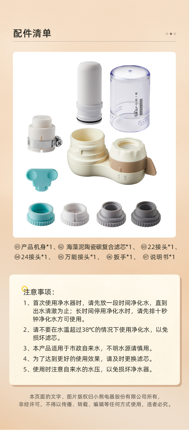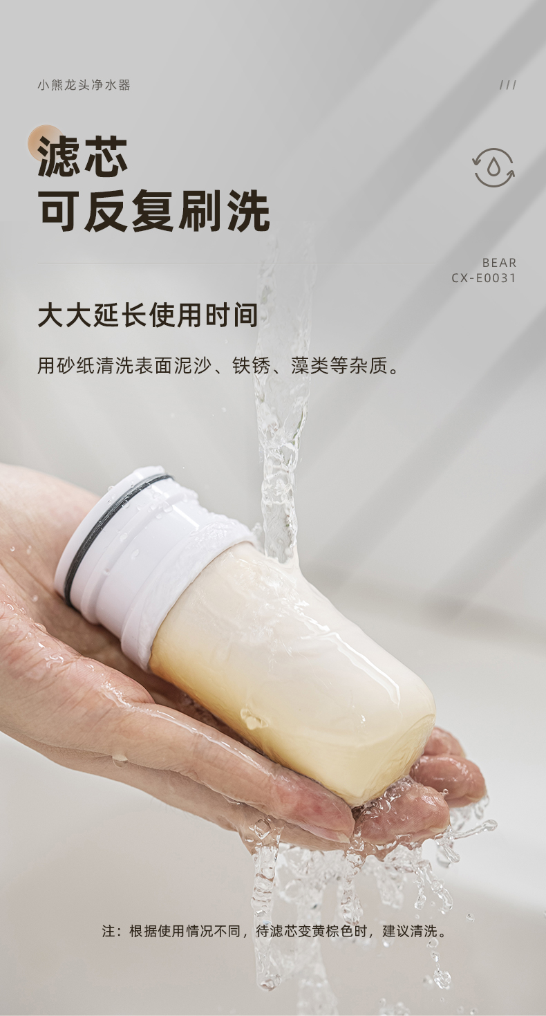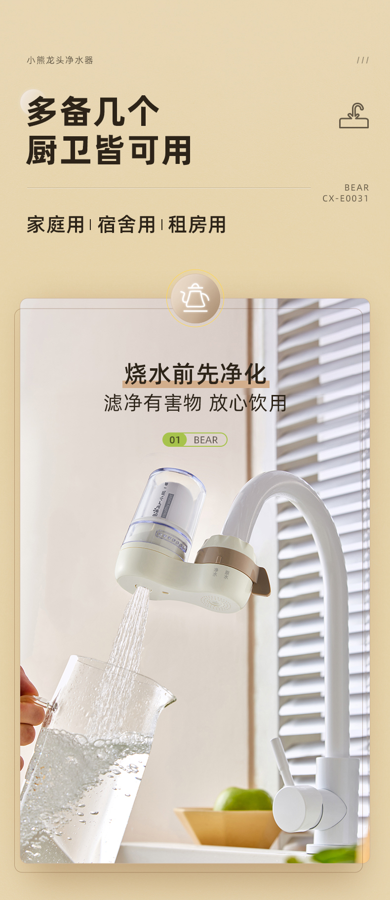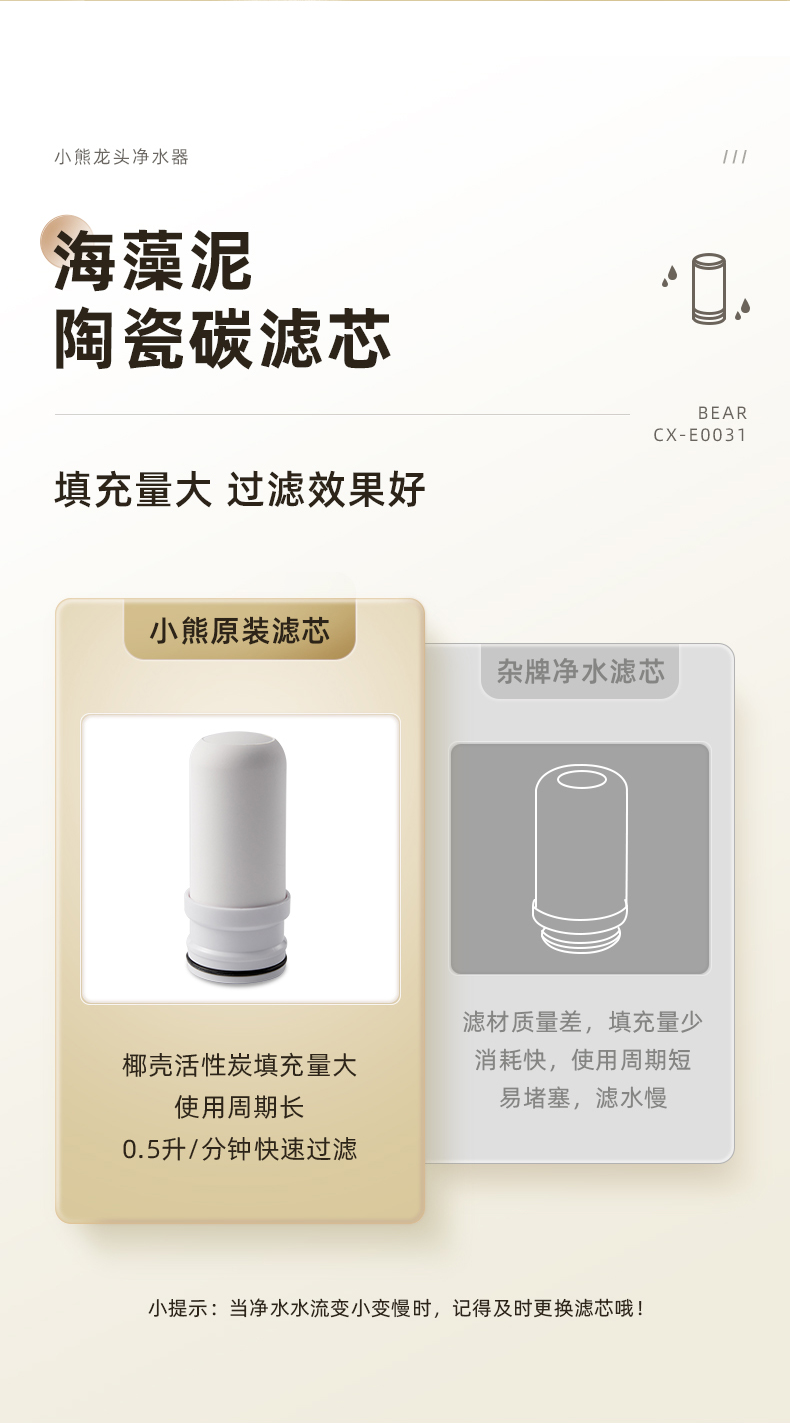 【小程序】小熊龙头净水器 CX-E0031 白色 透明盖 陶瓷+活性炭 1芯装