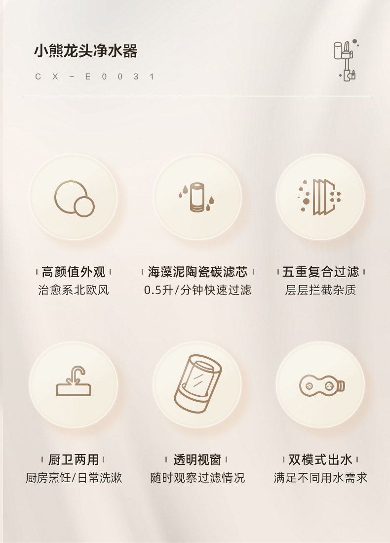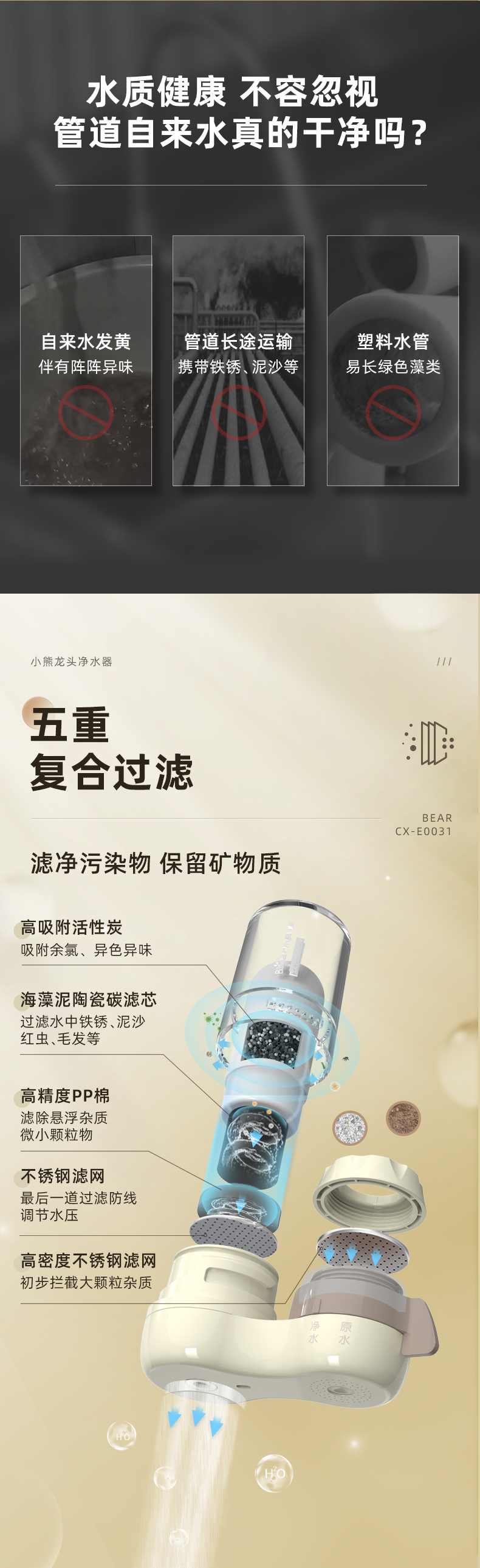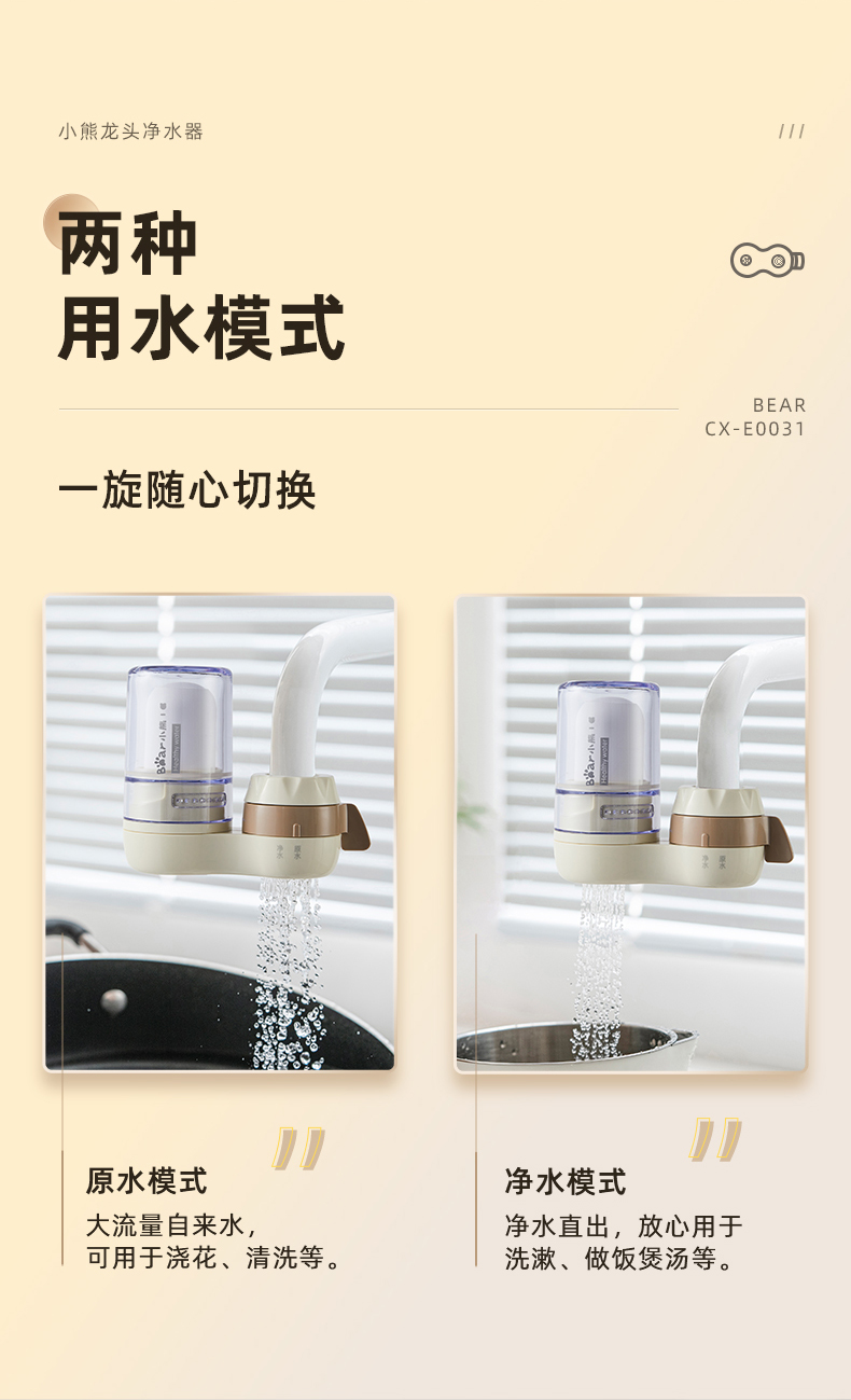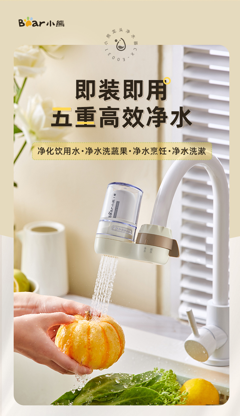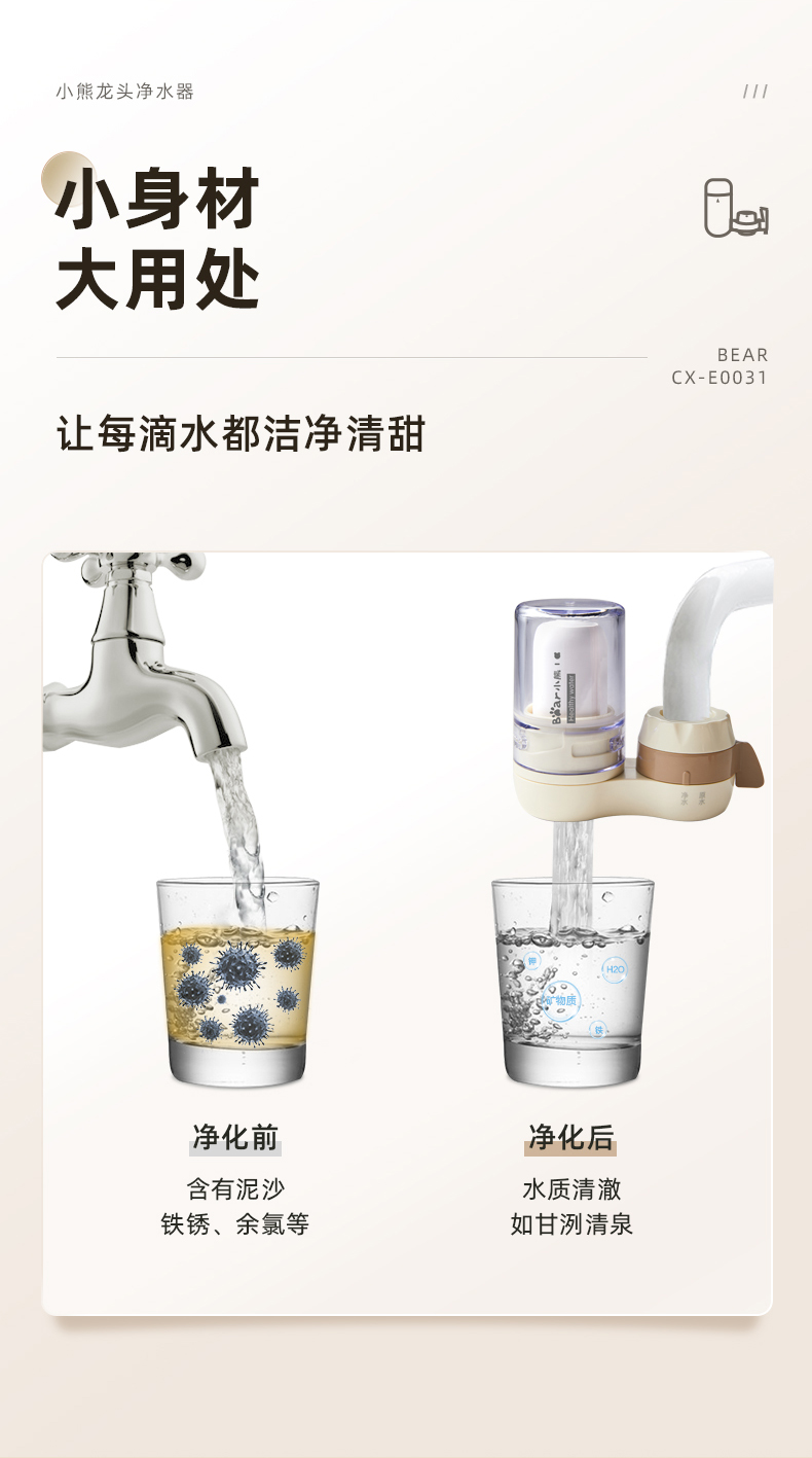 【小程序】小熊龙头净水器 CX-E0031 白色 透明盖 陶瓷+活性炭 1芯装