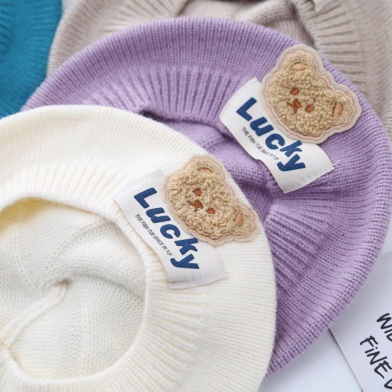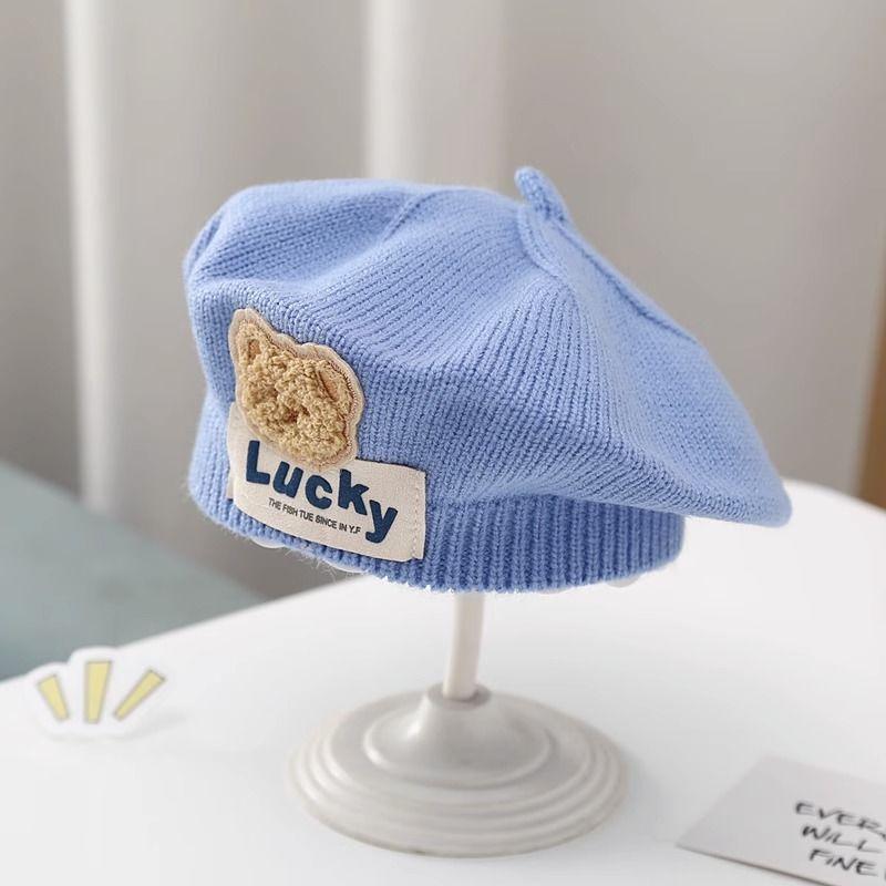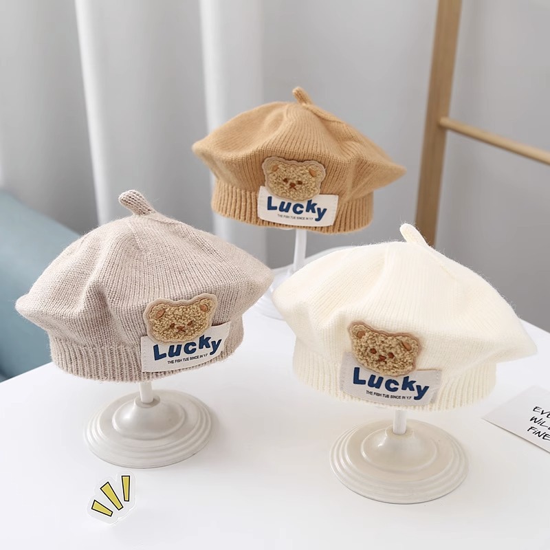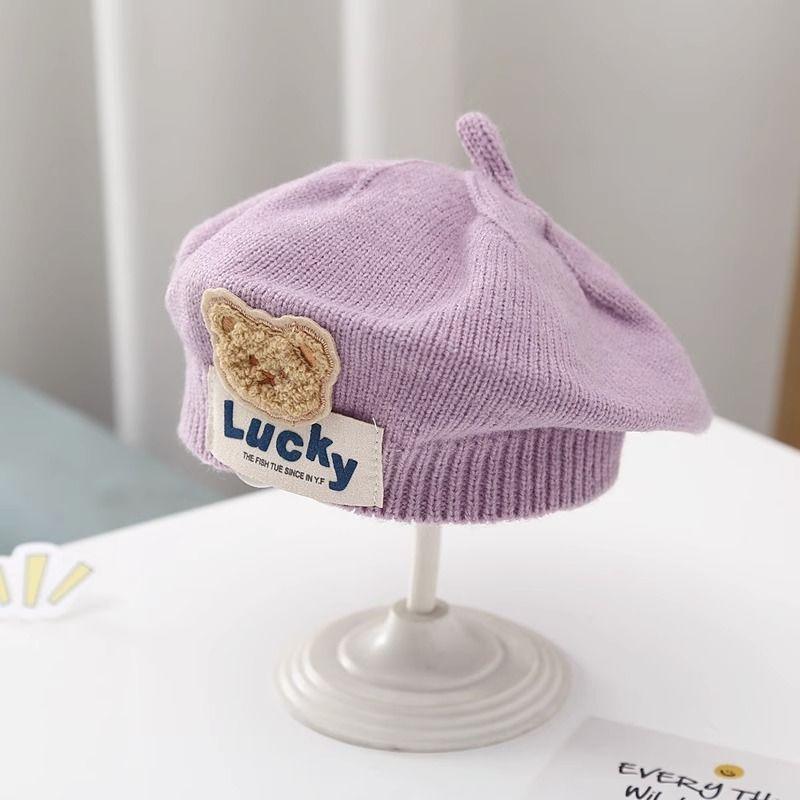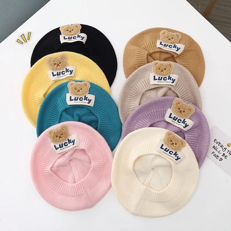 儿童帽子秋冬款婴幼儿针织贝雷帽可爱小熊男女童宝宝画家毛线帽潮