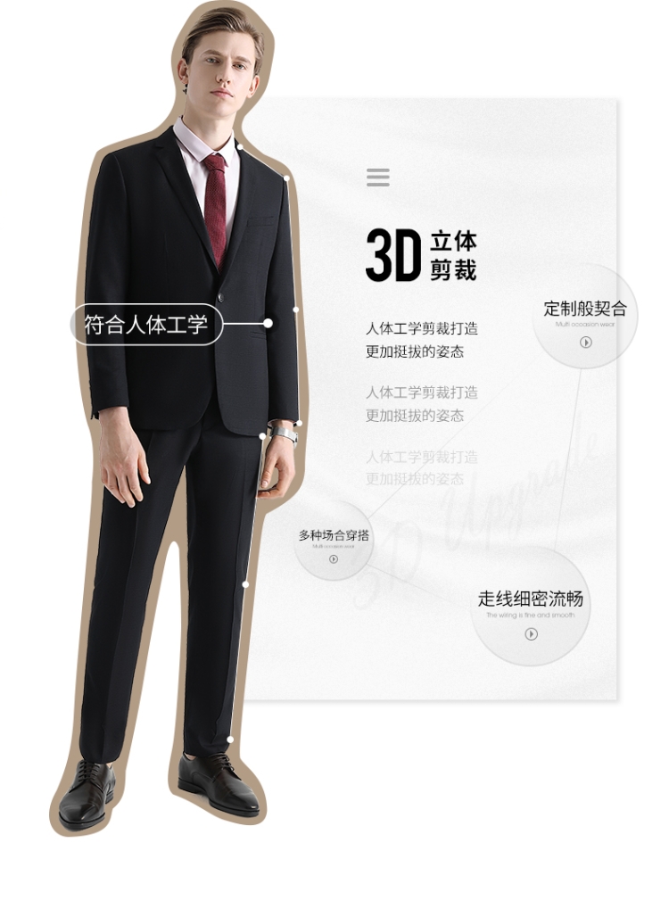 【特价】柒牌男装男士西服套装潮流商务正装职业上班修身结婚婚礼套西新w 119C7304W