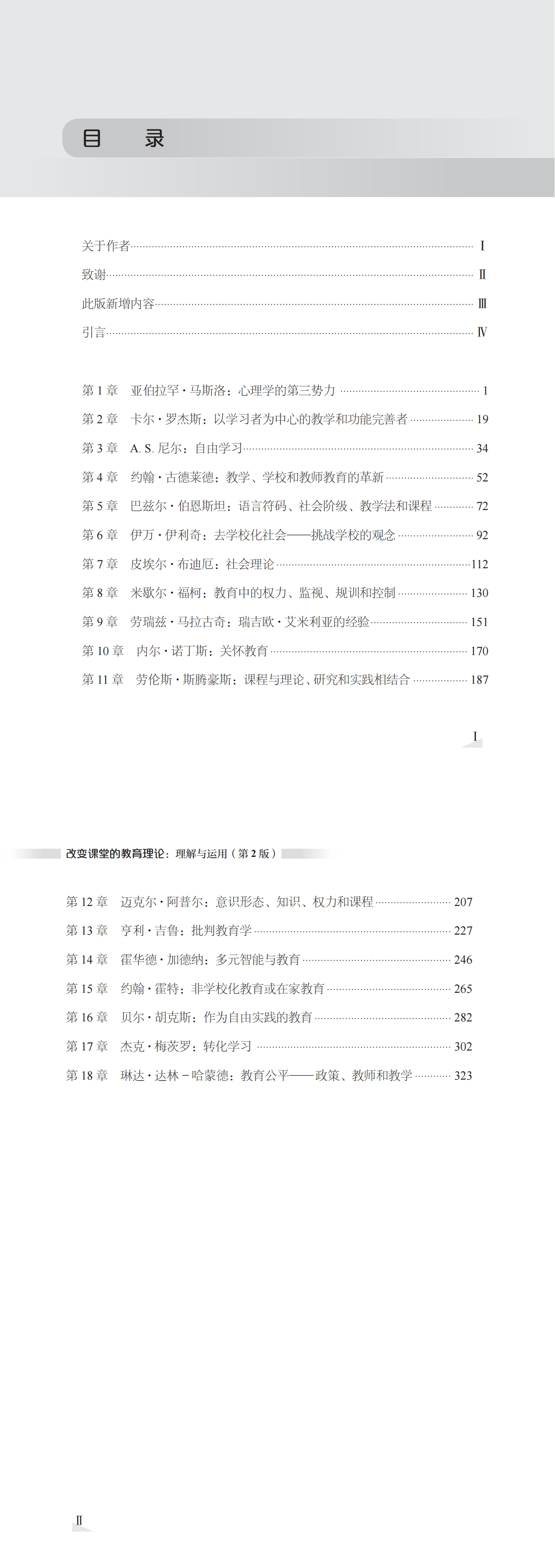 《改变课堂的教育理论:理解与运用(第2版)》一书系统梳理了教育学、心理学等人文社科领域具有重要影响力的思想家及其观点,包括具有影响力的社会学家、质疑学校教育正统观念的学者等,如马斯洛、A.S.尼尔、伯恩斯坦、布迪厄、福柯、诺丁斯、加德纳。这些思想家的观点具有以下特点: