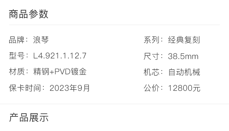 浪琴L4.921.1.12.7 商品图1