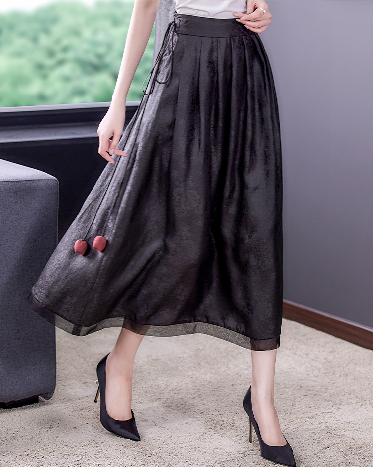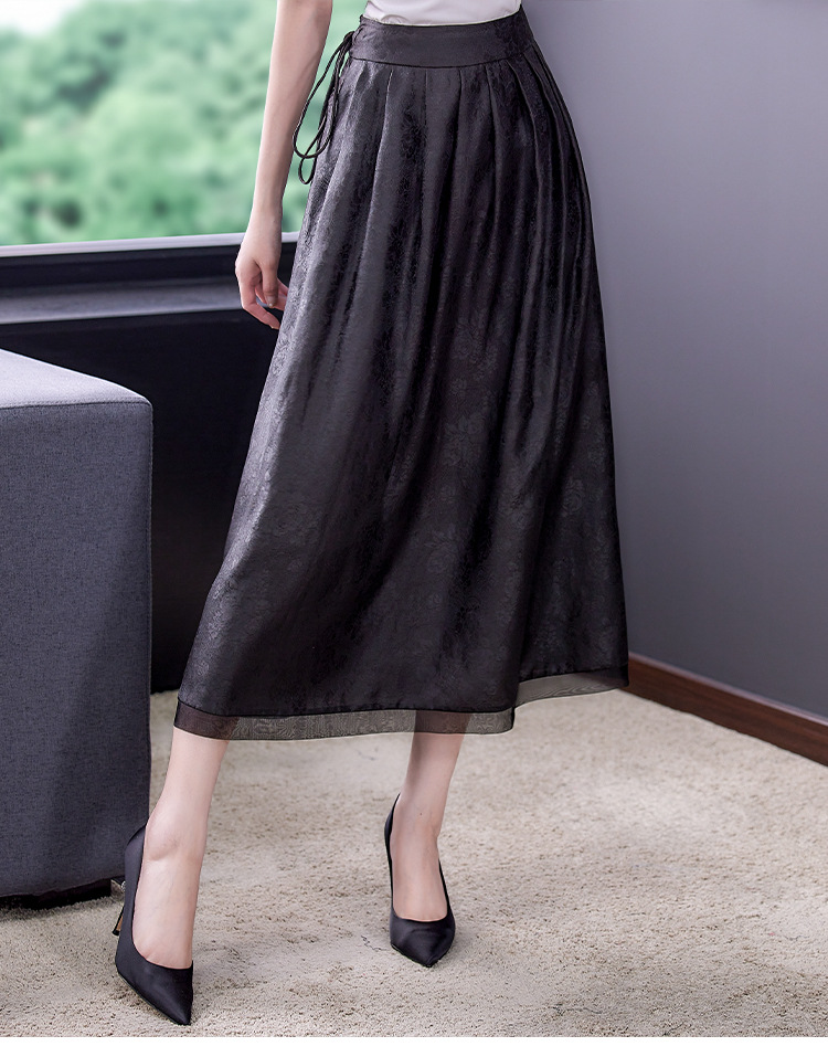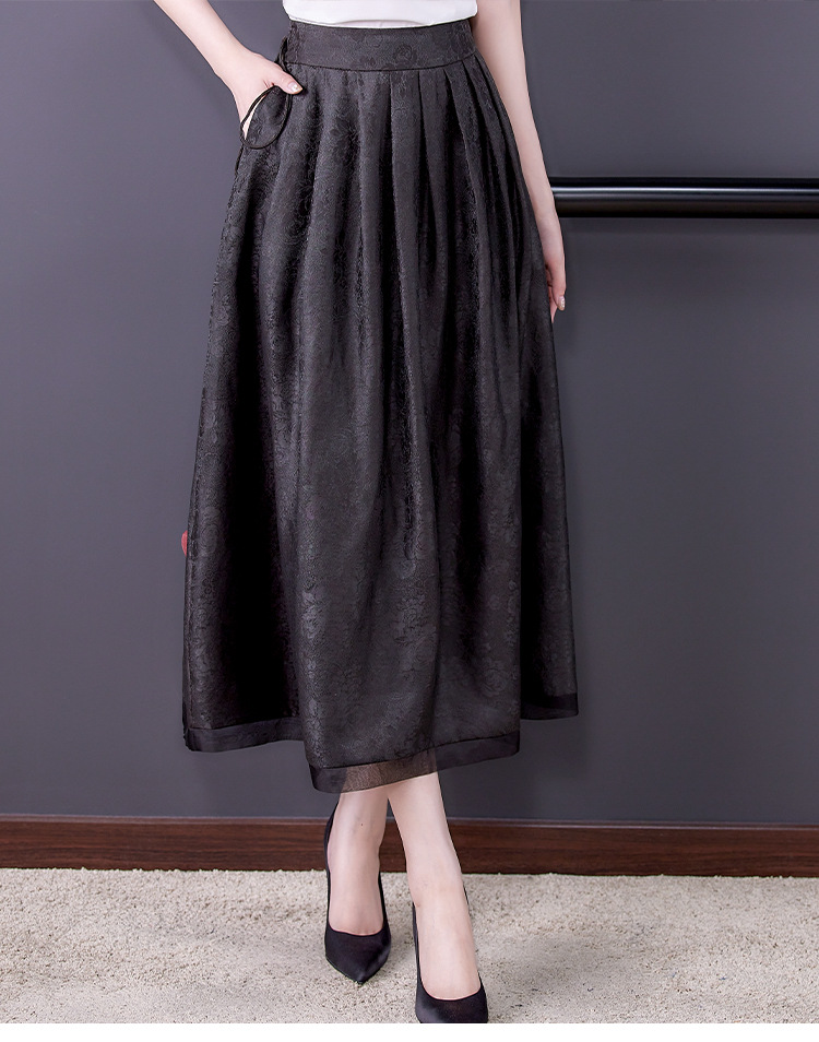 提花半身裙女春秋季新款2022a字百褶裙 KQL9133