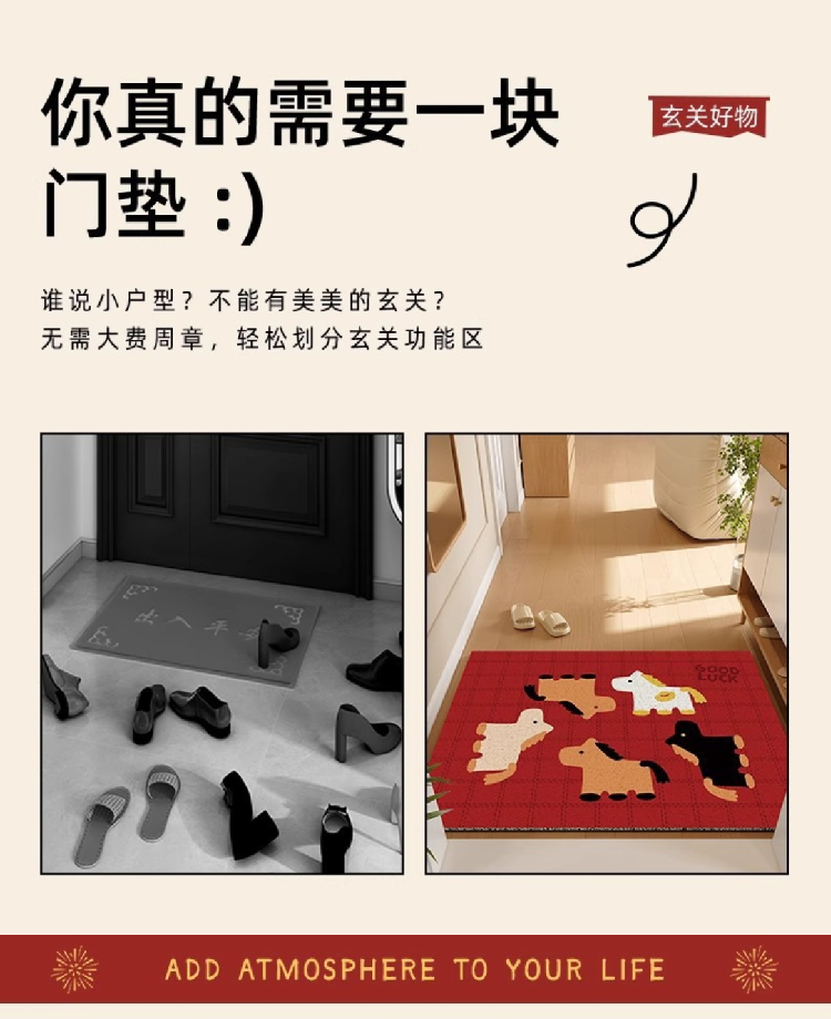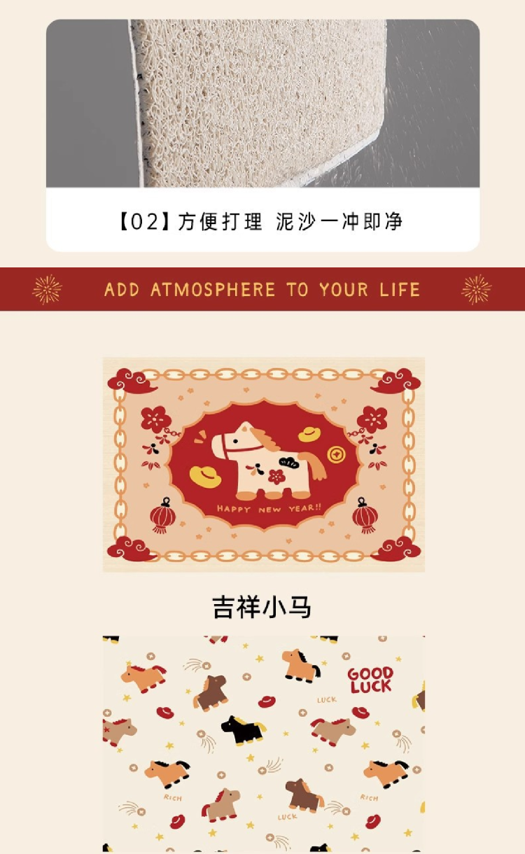 【马年新年地毯】入户门地垫2026新年进门脚垫 玄关防滑垫家用门口耐脏丝圈地垫