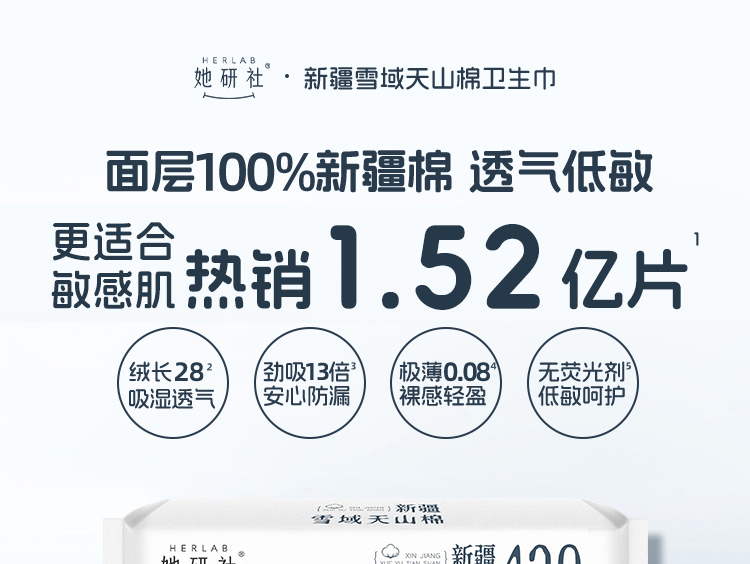 华西20251119-Herlab 她妍社雪域天山棉卫生巾夜用420mm 4片装/一包