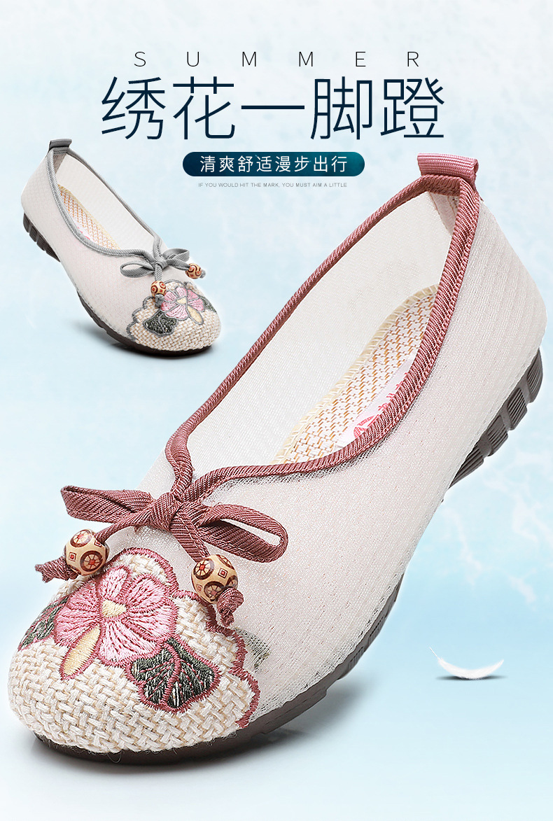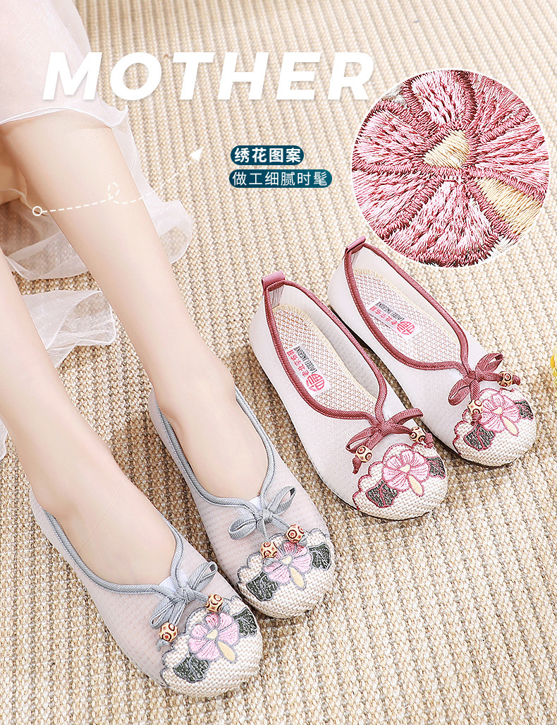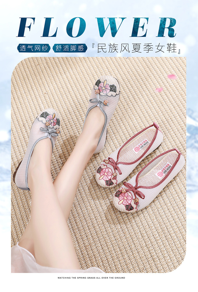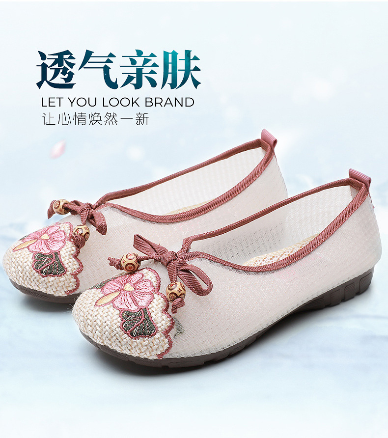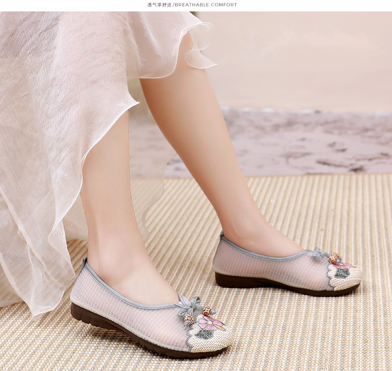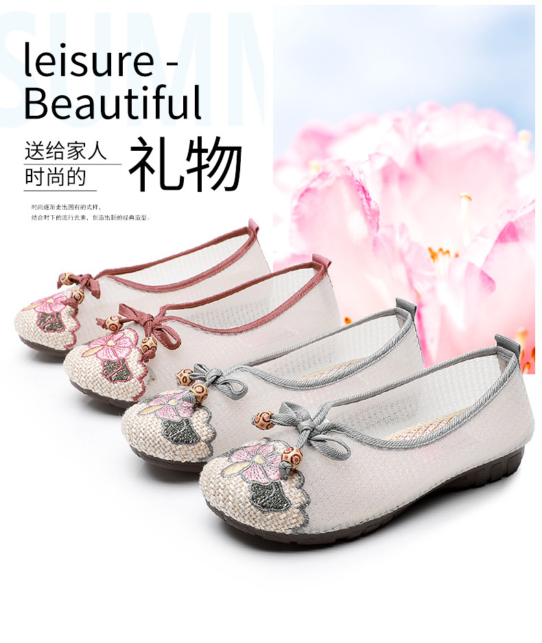 平底古风网纱凉鞋,透气网面绣花鞋民族风汉服鞋MY-S2