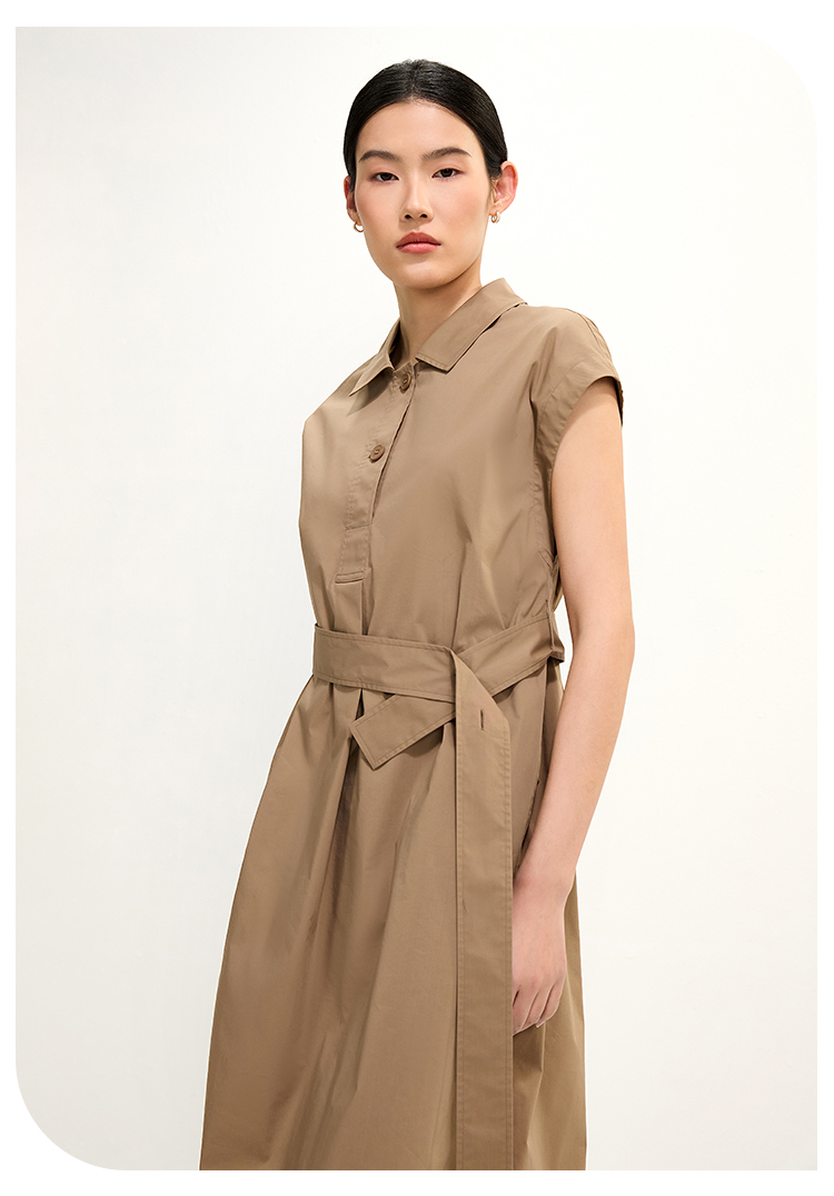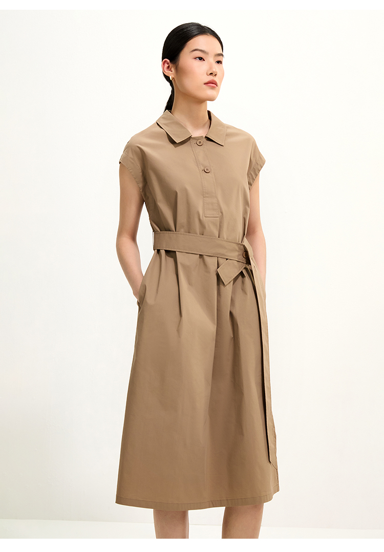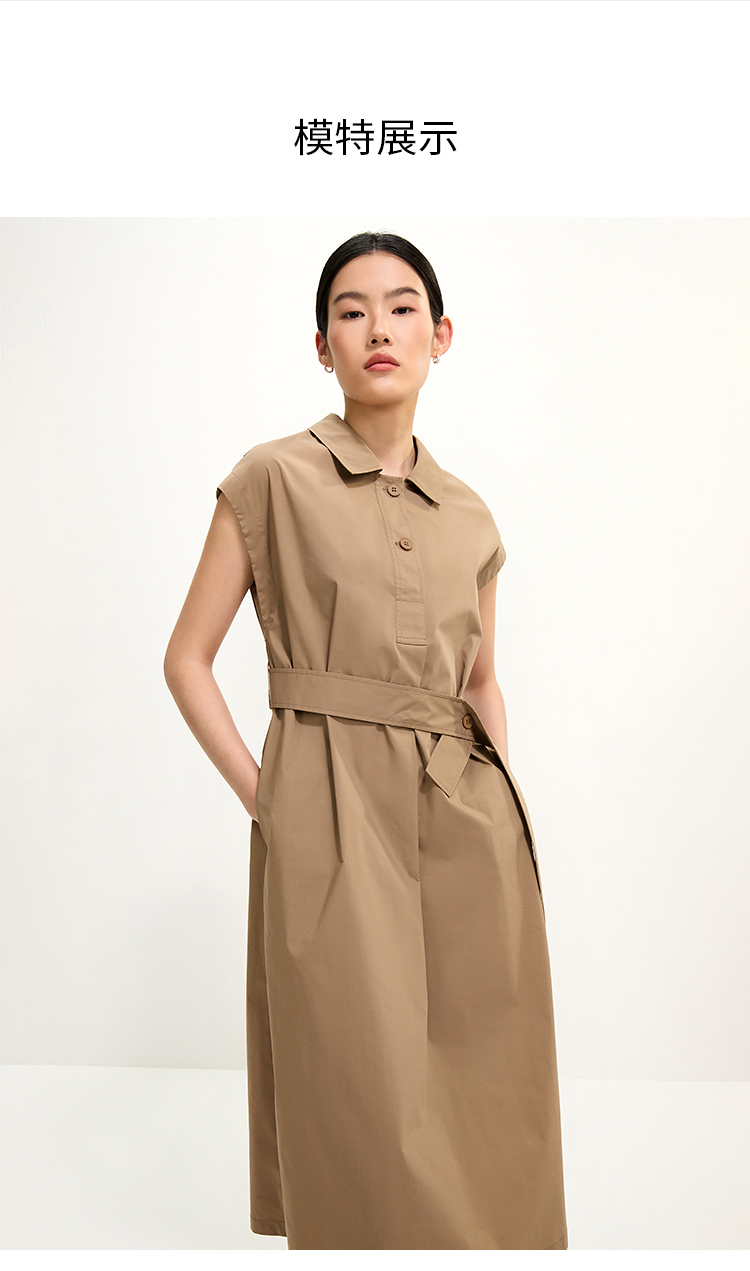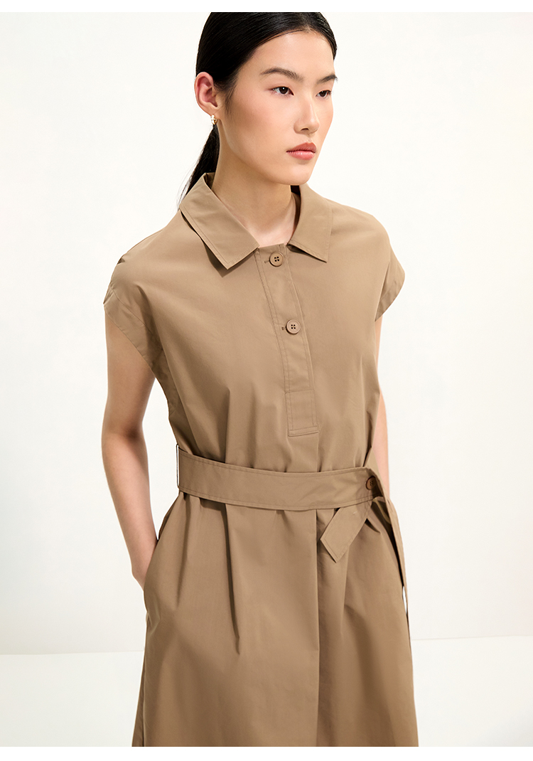 PURE TOUCH卡其色无袖翻领系带衬衫式连衣裙 1349242106
