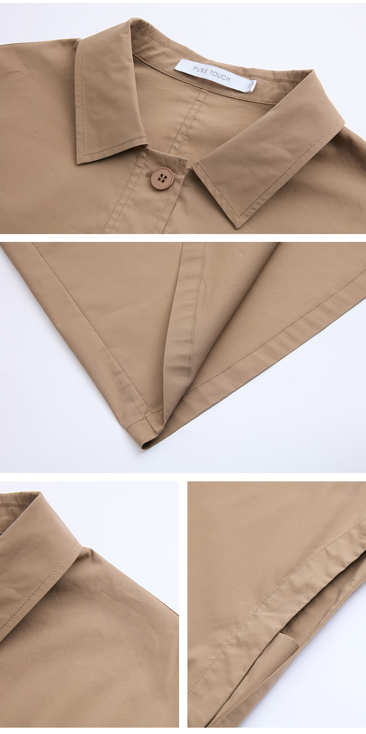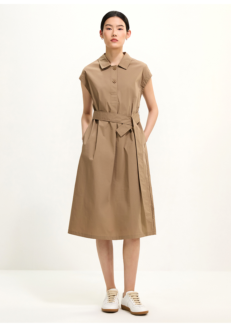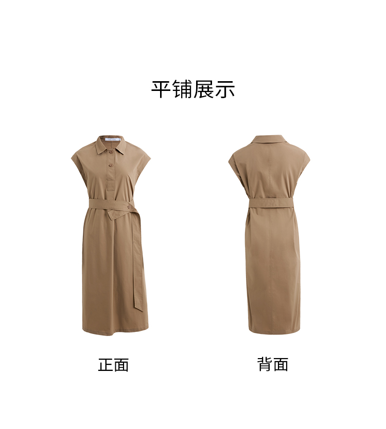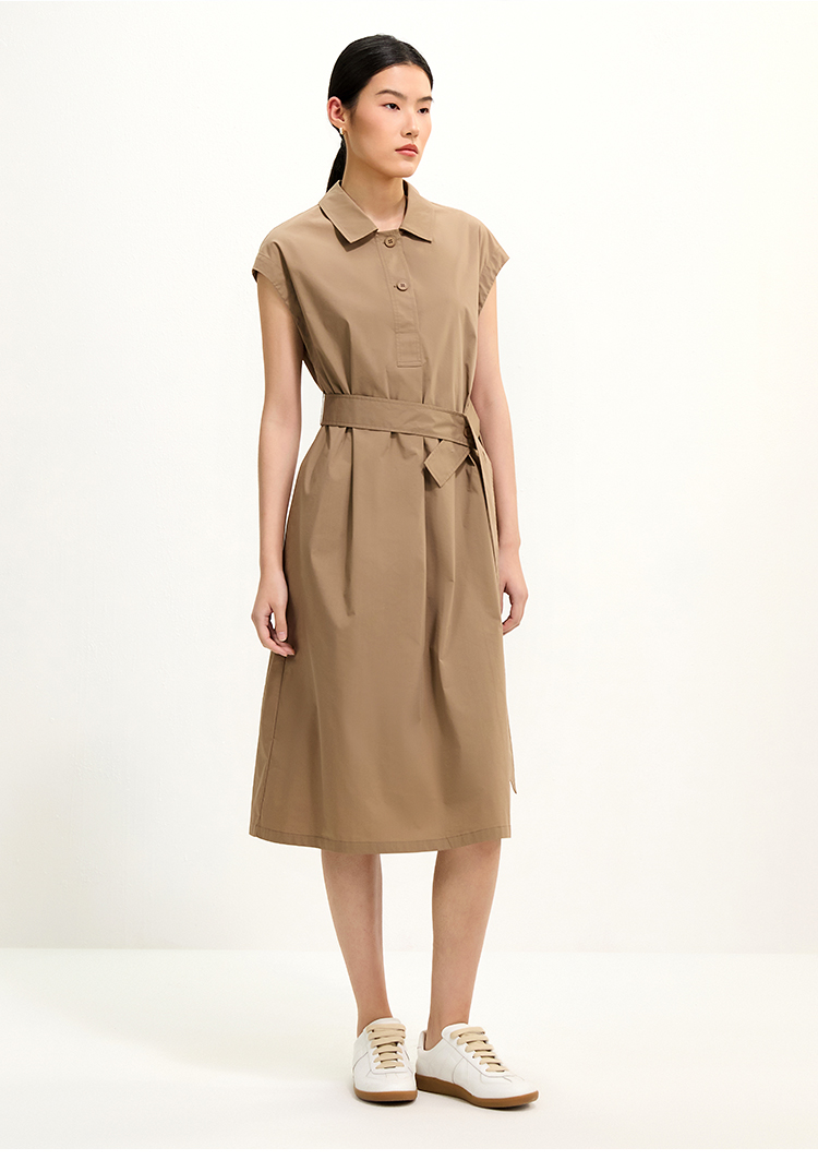 PURE TOUCH卡其色无袖翻领系带衬衫式连衣裙 1349242106