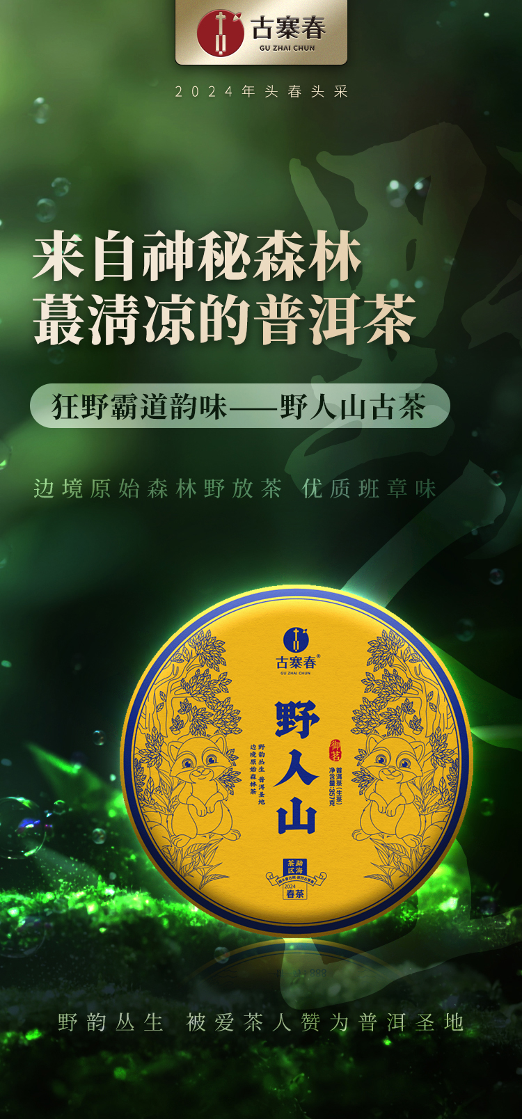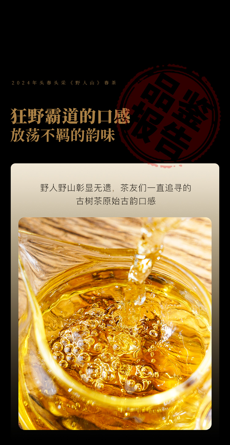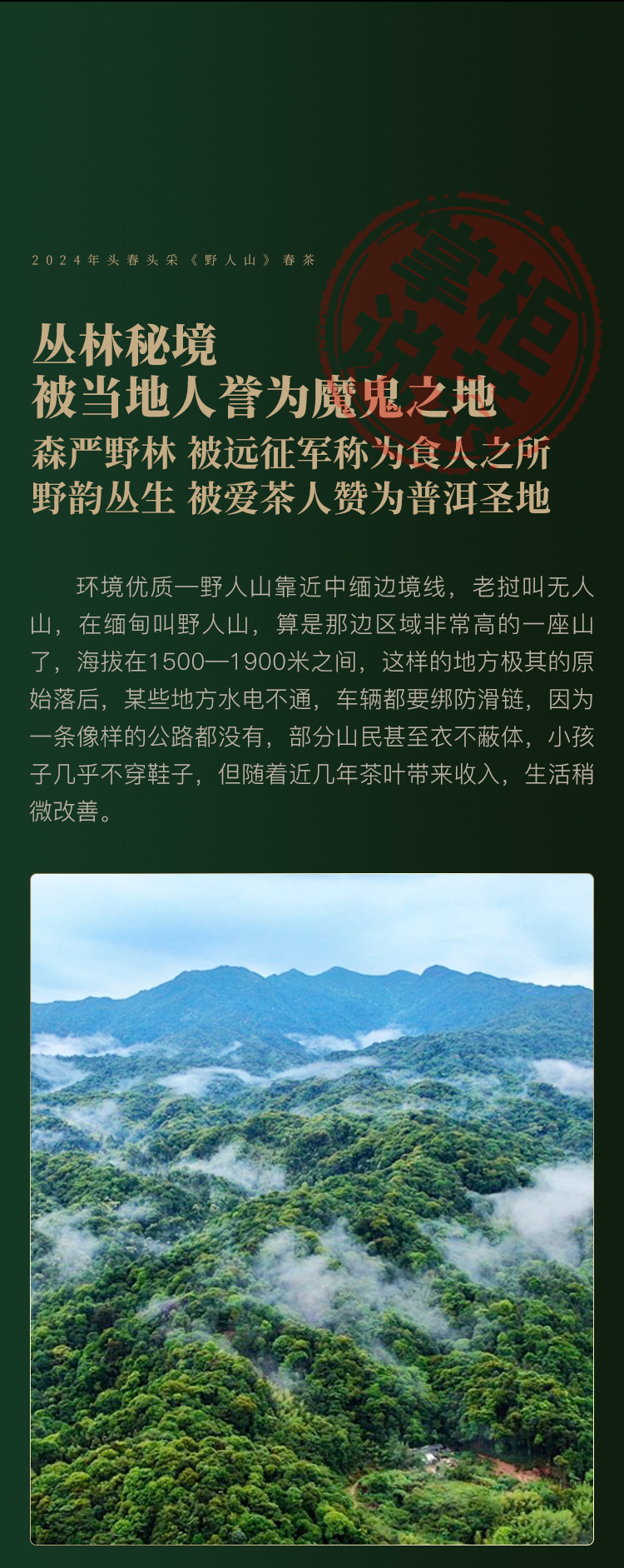 【野人山】2024年头春头采勐海班章茶区,狂野霸道森林野放茶 优质班章味 普洱茶生茶357克/饼 拍5发6拍20发25
