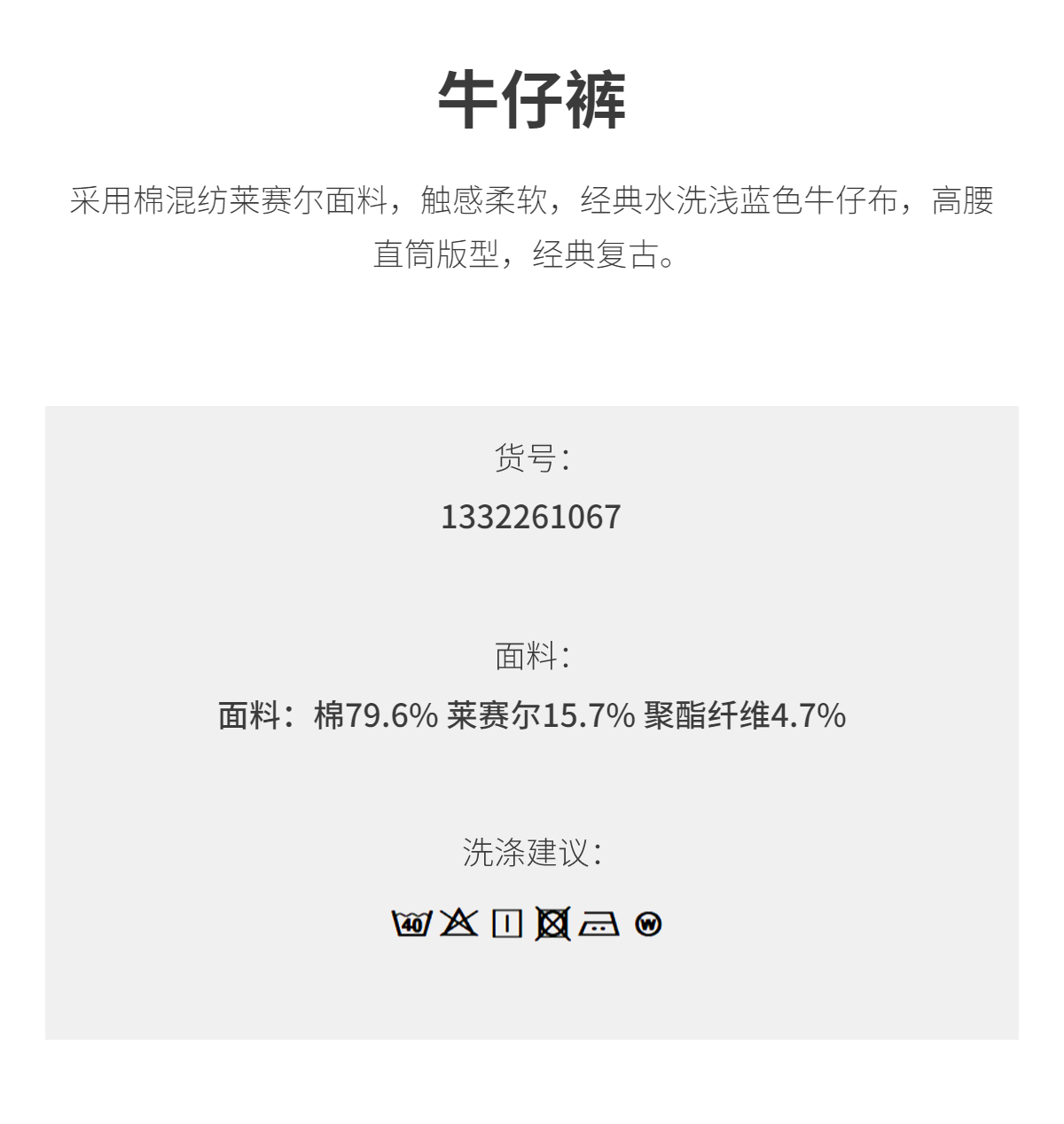 商场同款PURE TOUCH女装26春夏新款棉混纺牛仔裤高腰直筒复古长裤