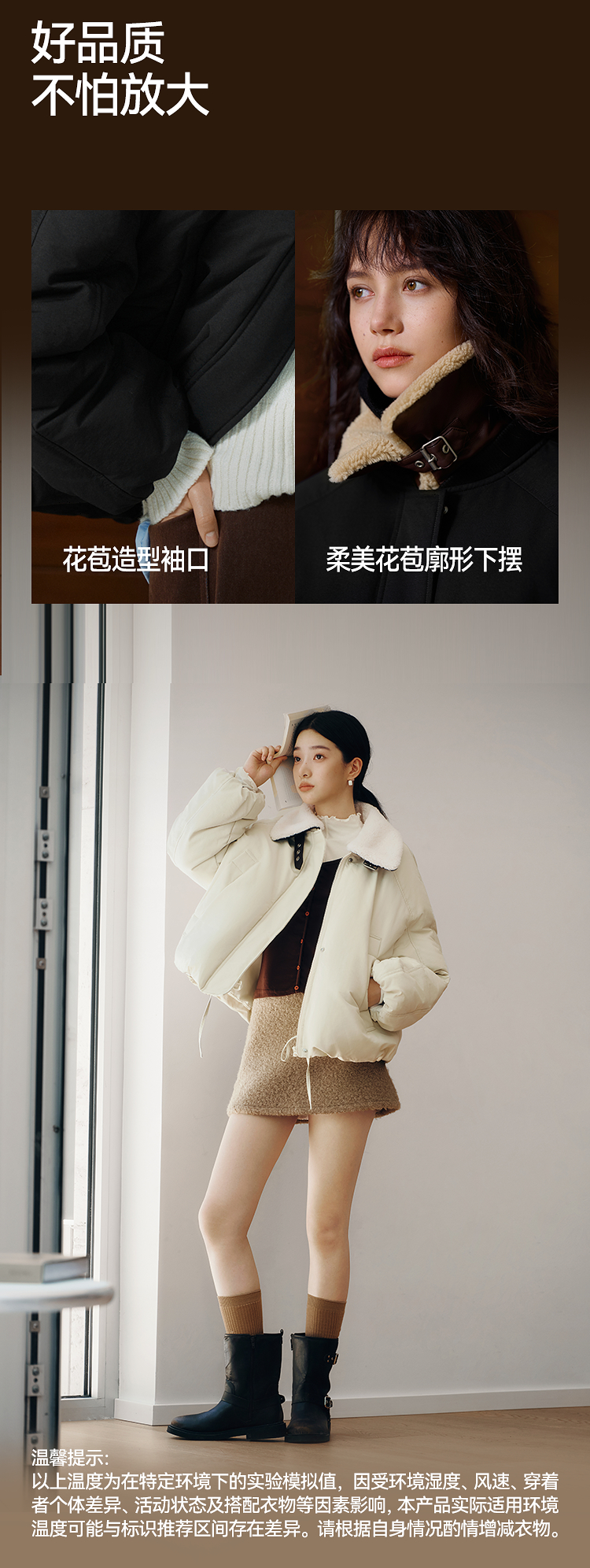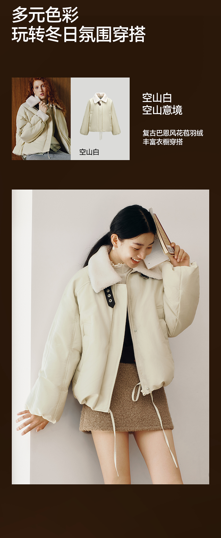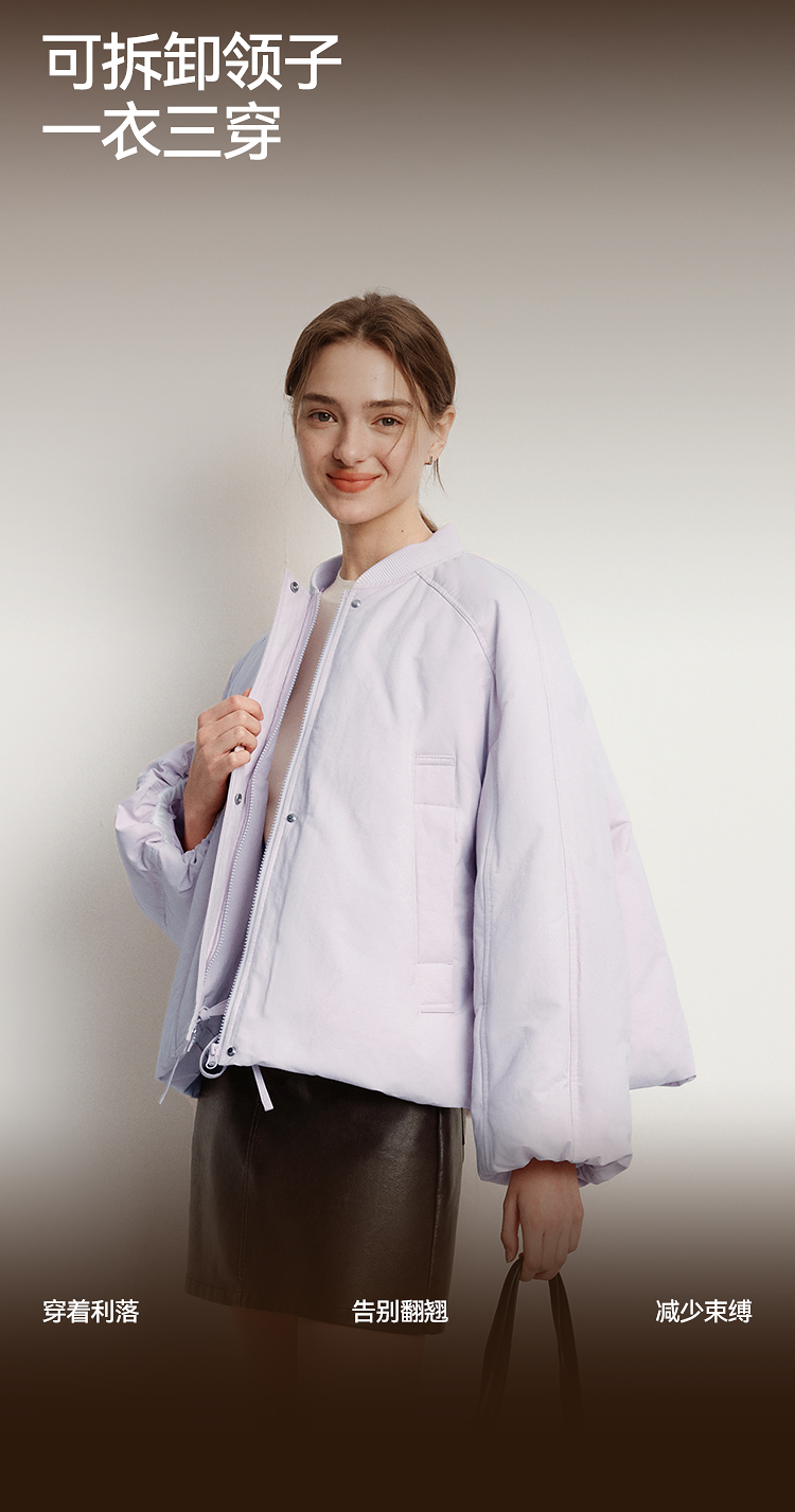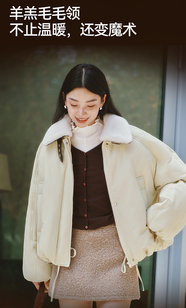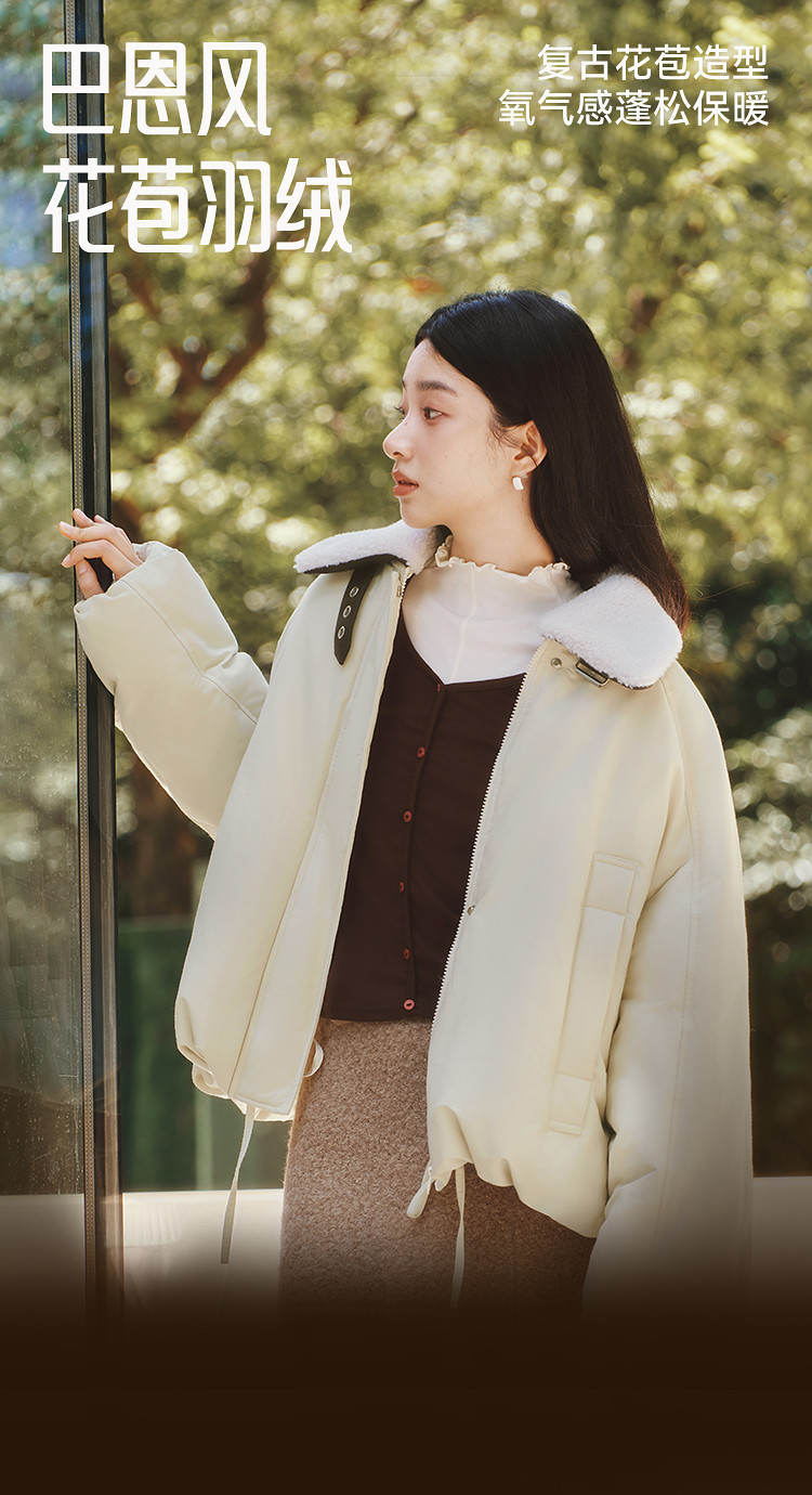 森马羽绒服女插肩袖可脱卸毛领2025新款冬季oversize花苞外套复古