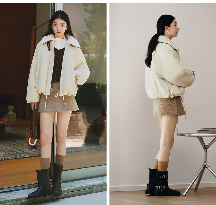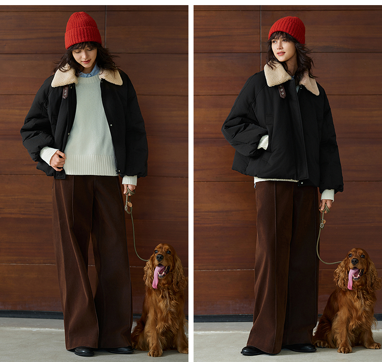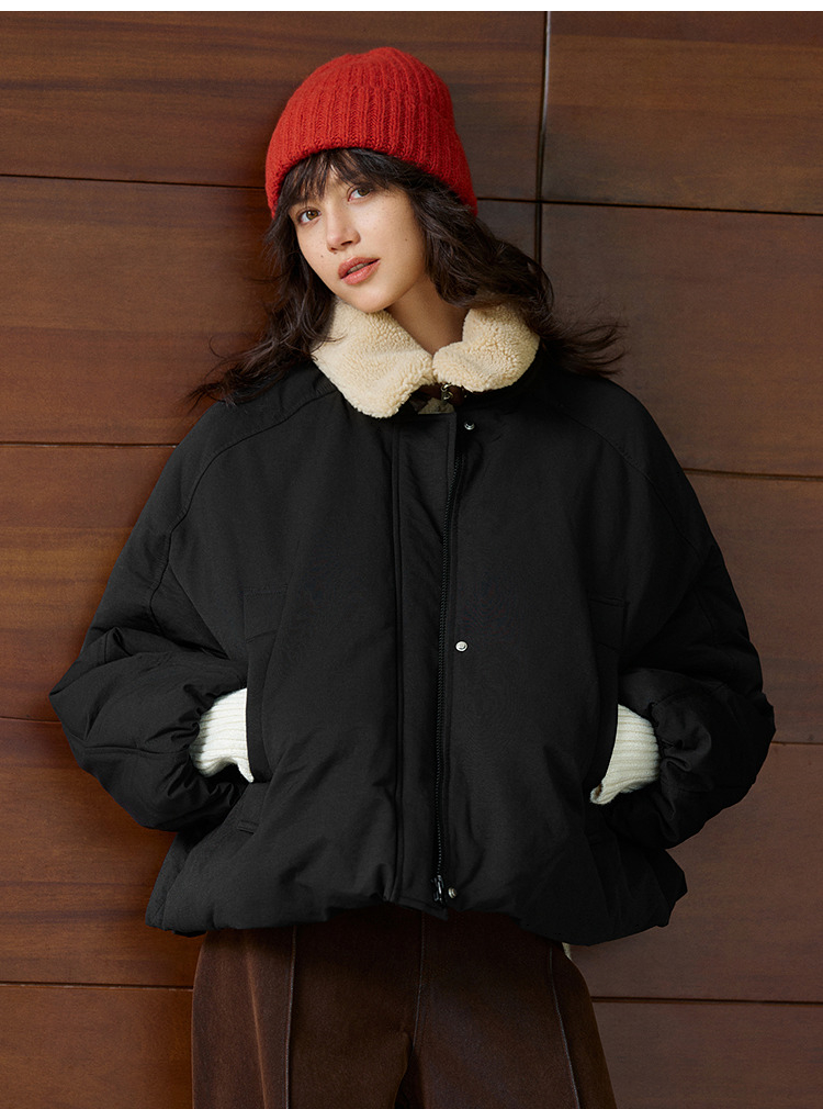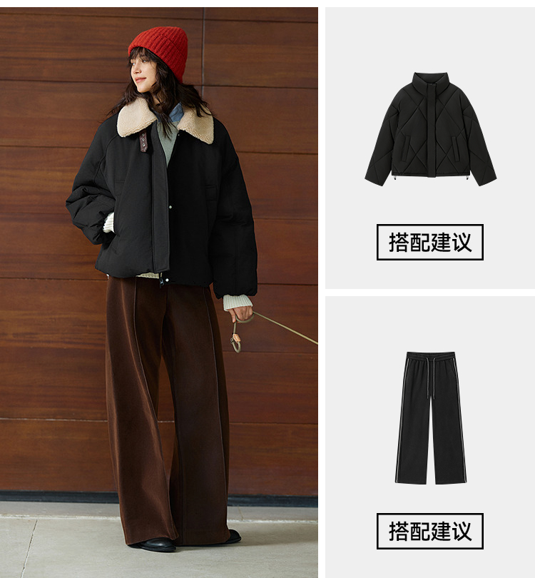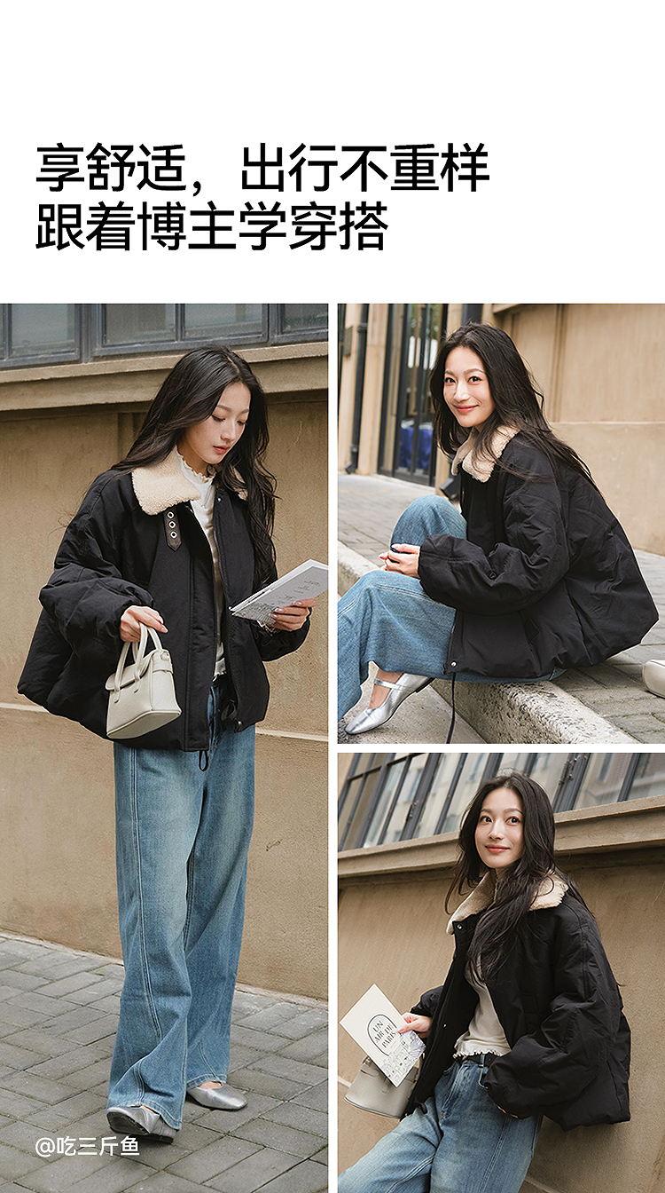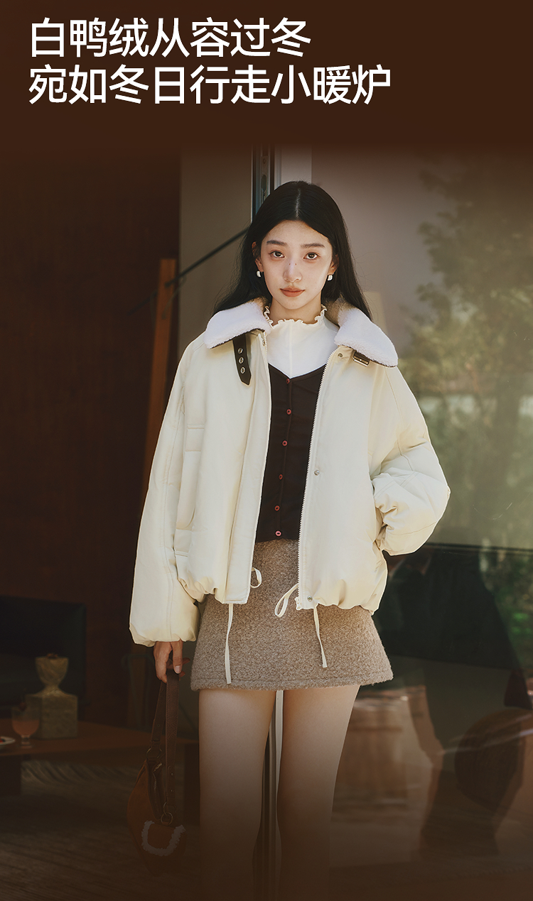 森马羽绒服女插肩袖可脱卸毛领2025新款冬季oversize花苞外套复古