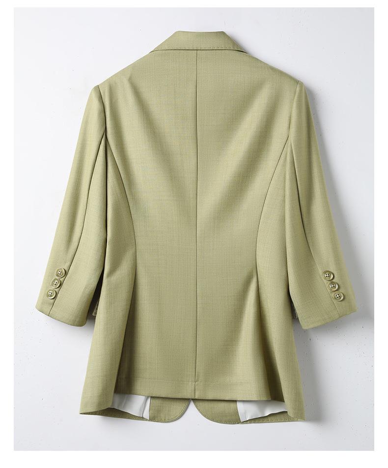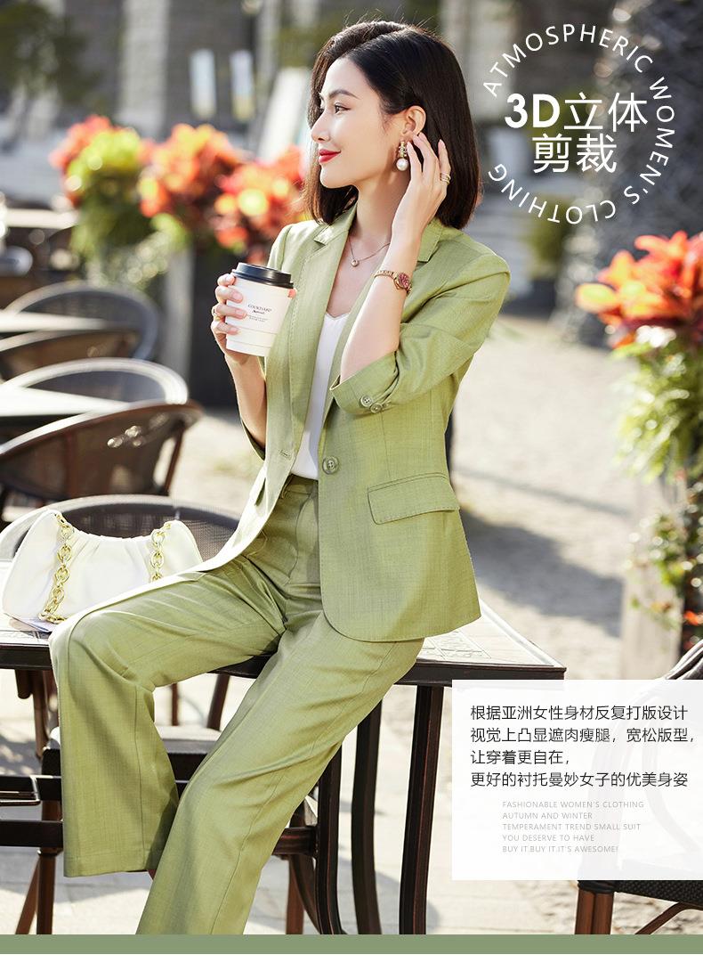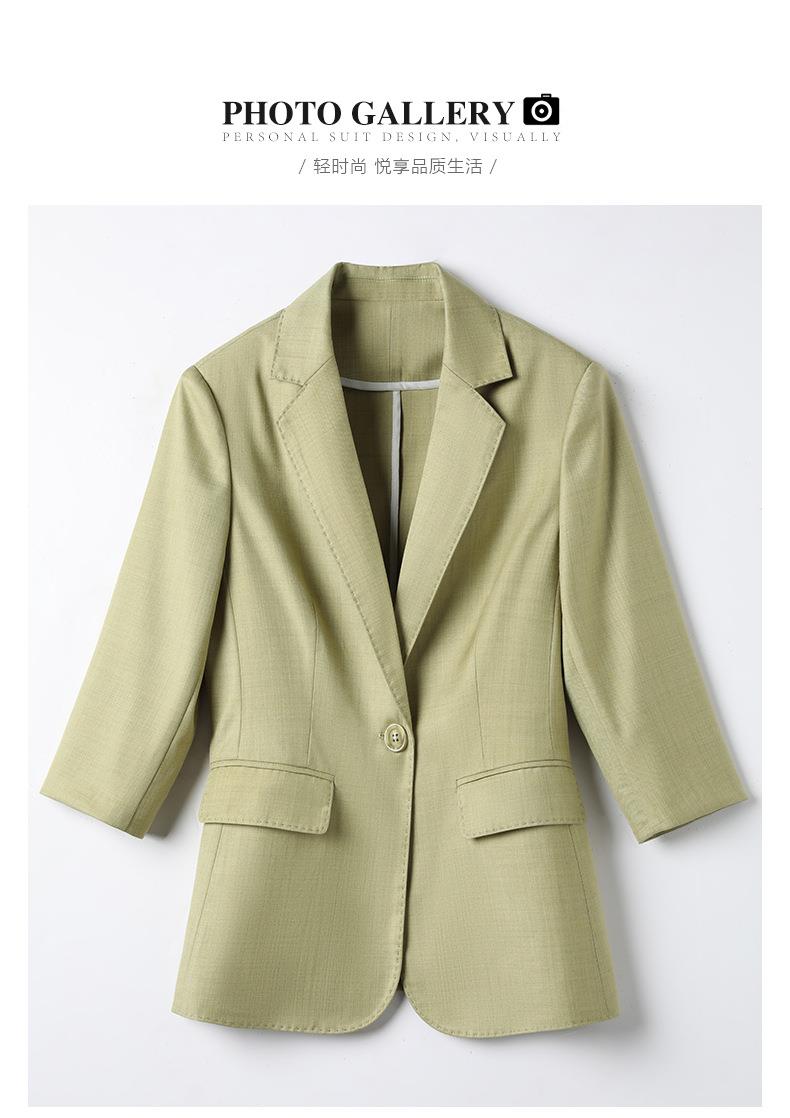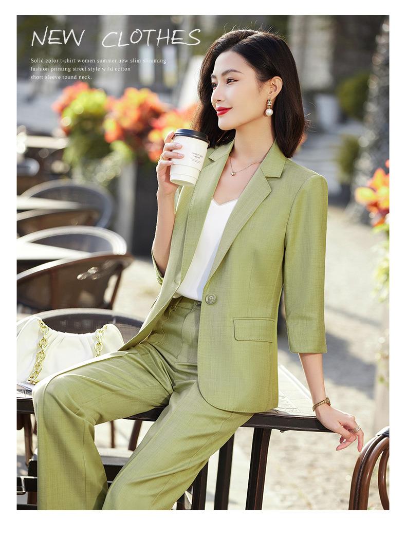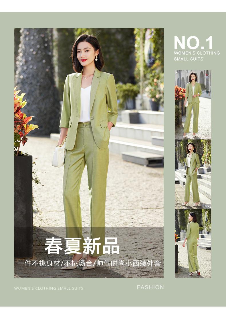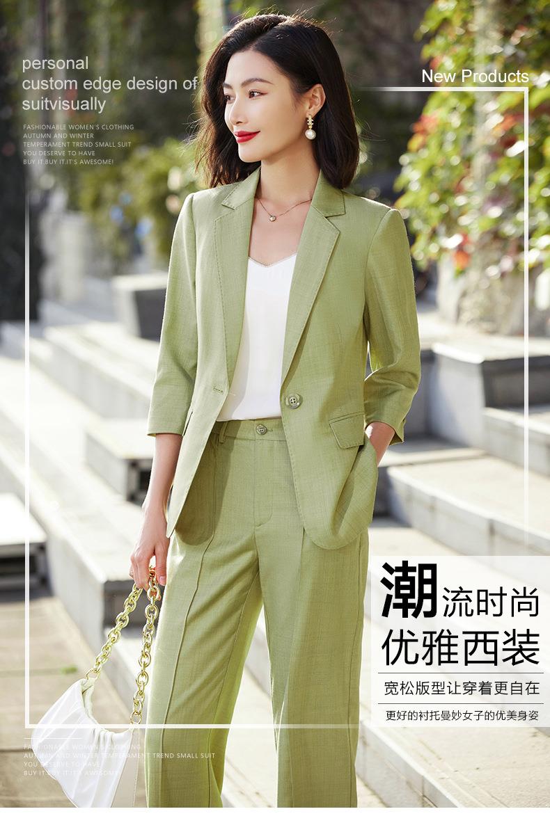 娜璐多 绿色阔腿裤西装套装女夏薄款2023高级感新款气质休闲七分袖小西服
