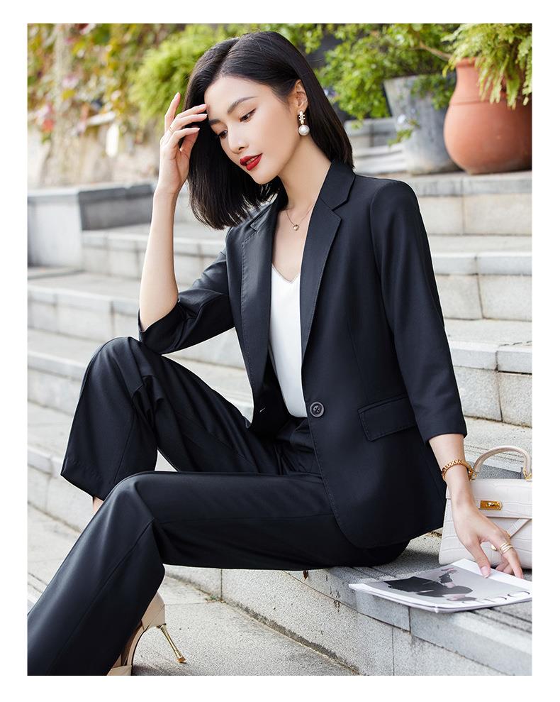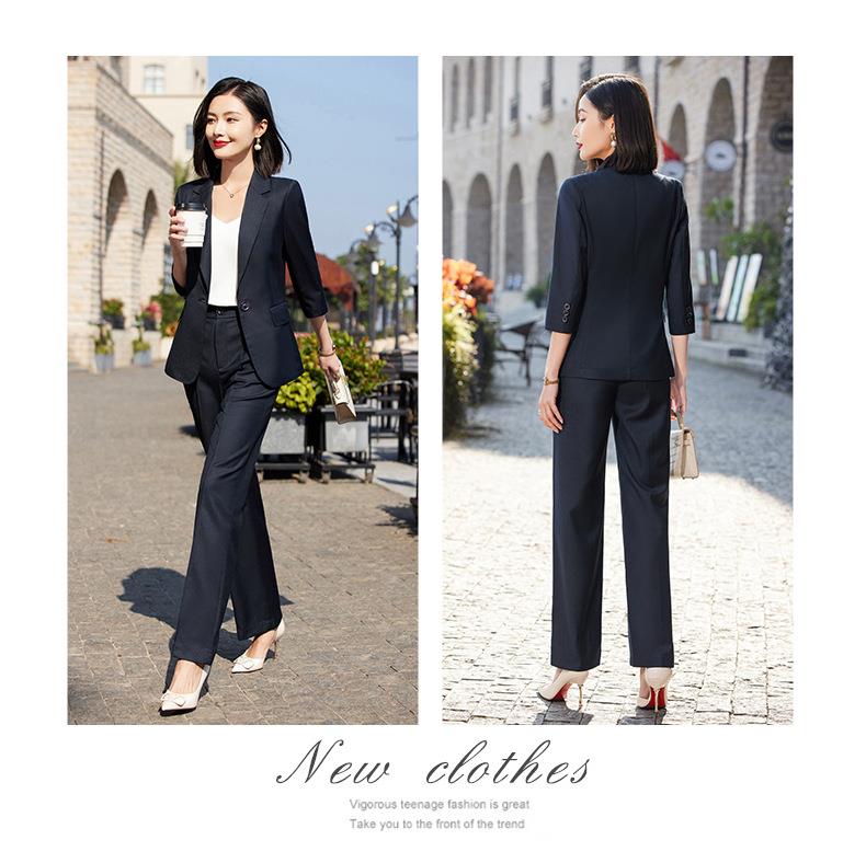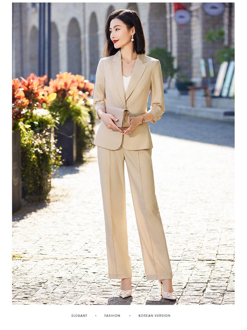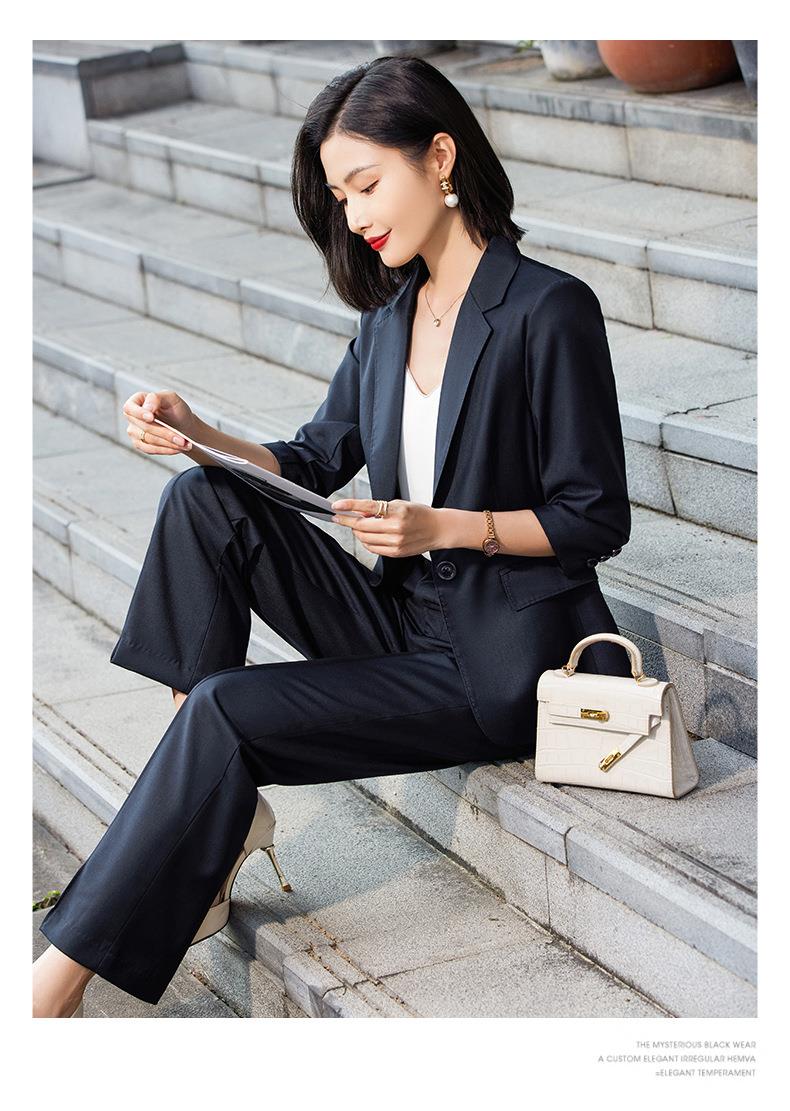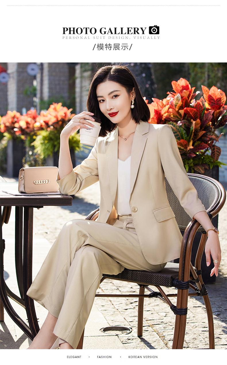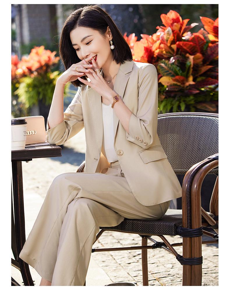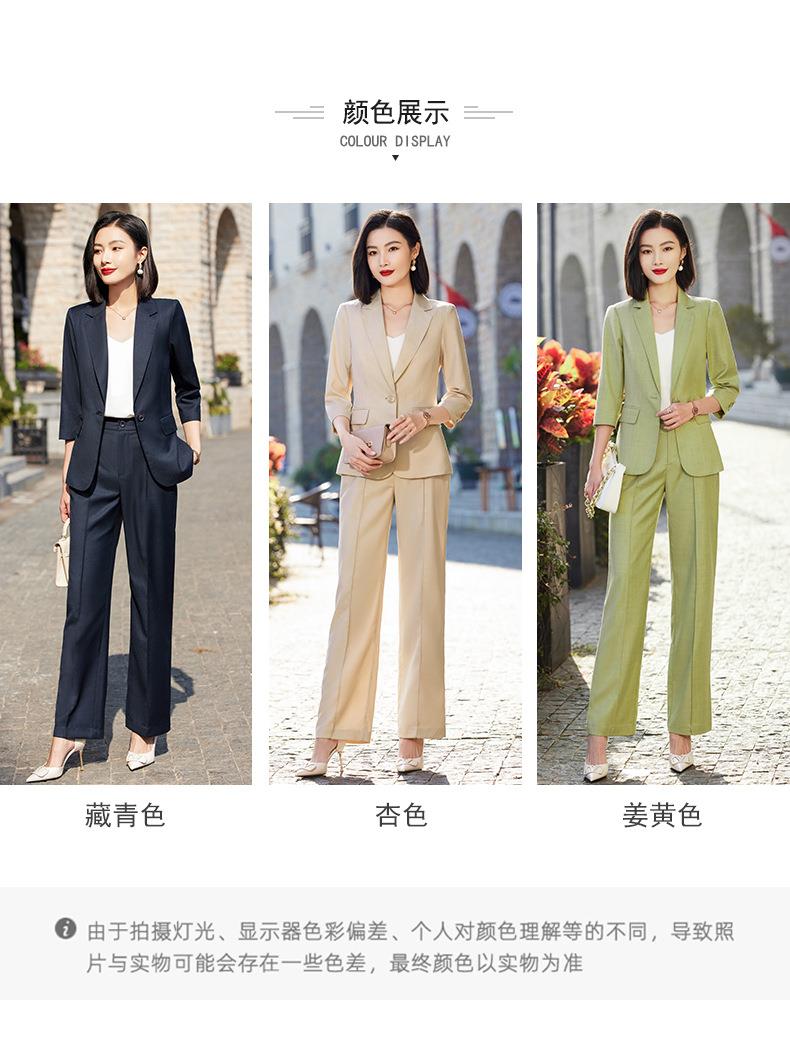 娜璐多 绿色阔腿裤西装套装女夏薄款2023高级感新款气质休闲七分袖小西服