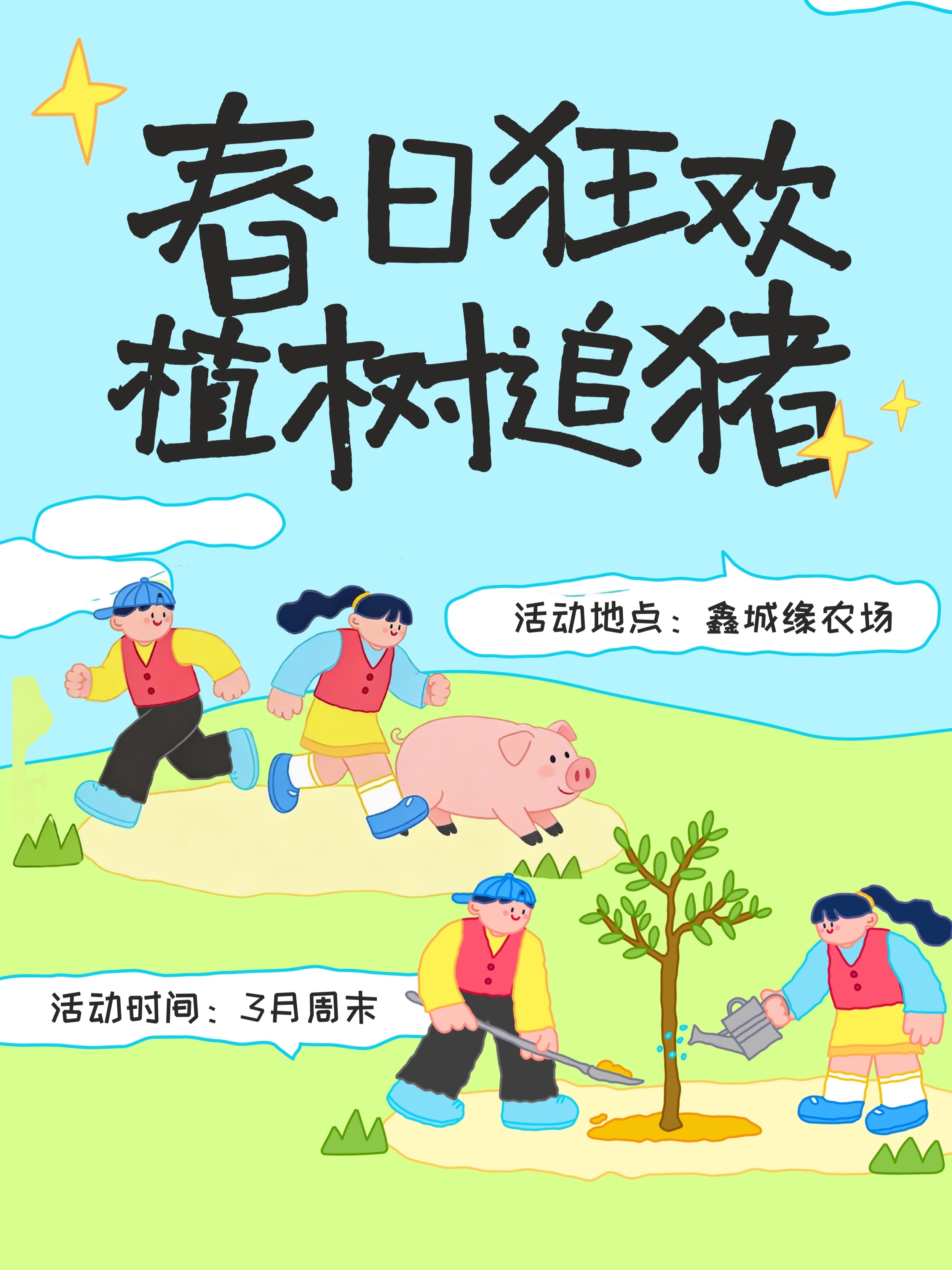 植树体验,抓猪体验,自由喂小动物,参观多肉大棚