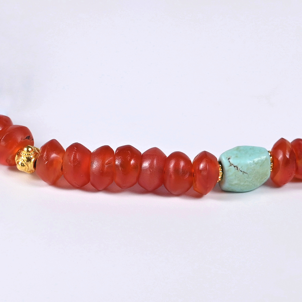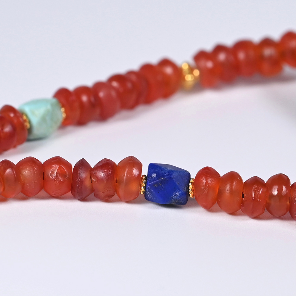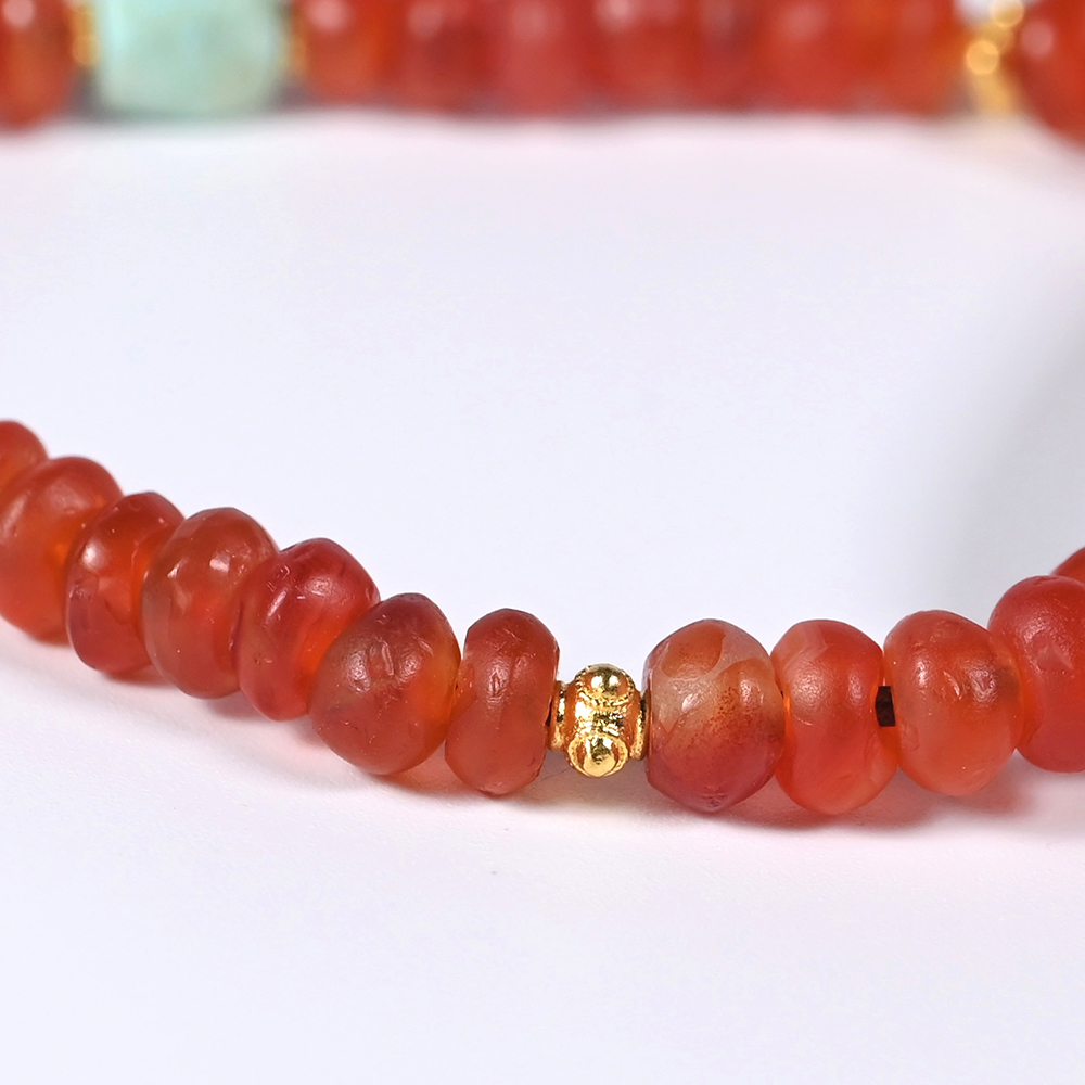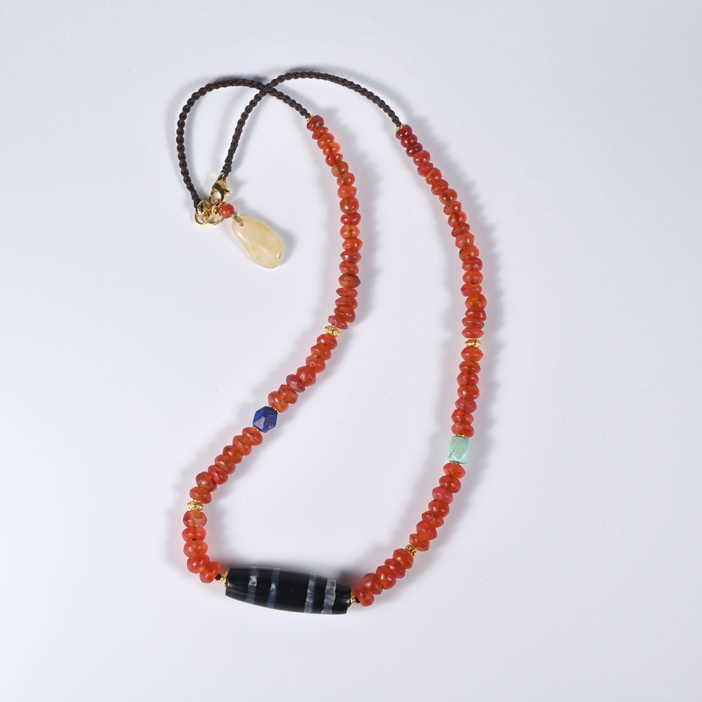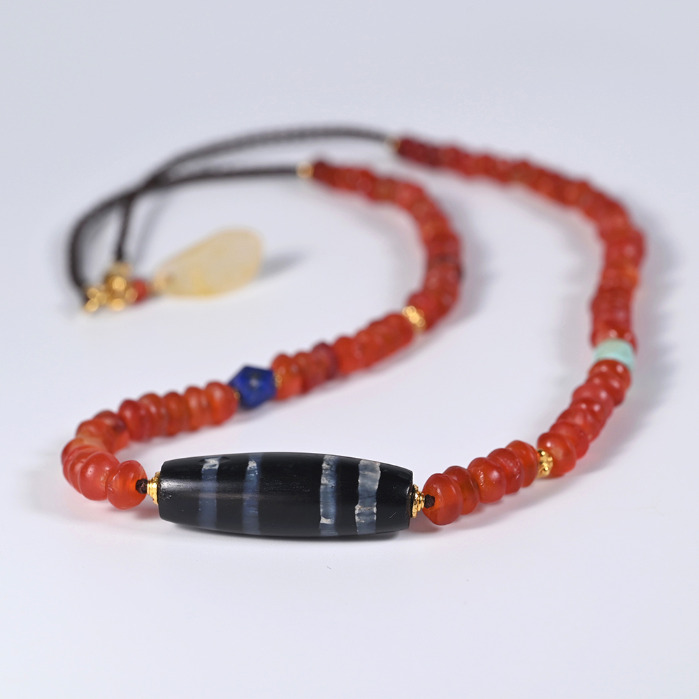 为适合21世纪人群佩戴,设计成了一条项链,搭配西亚高古红玛瑙珠。
