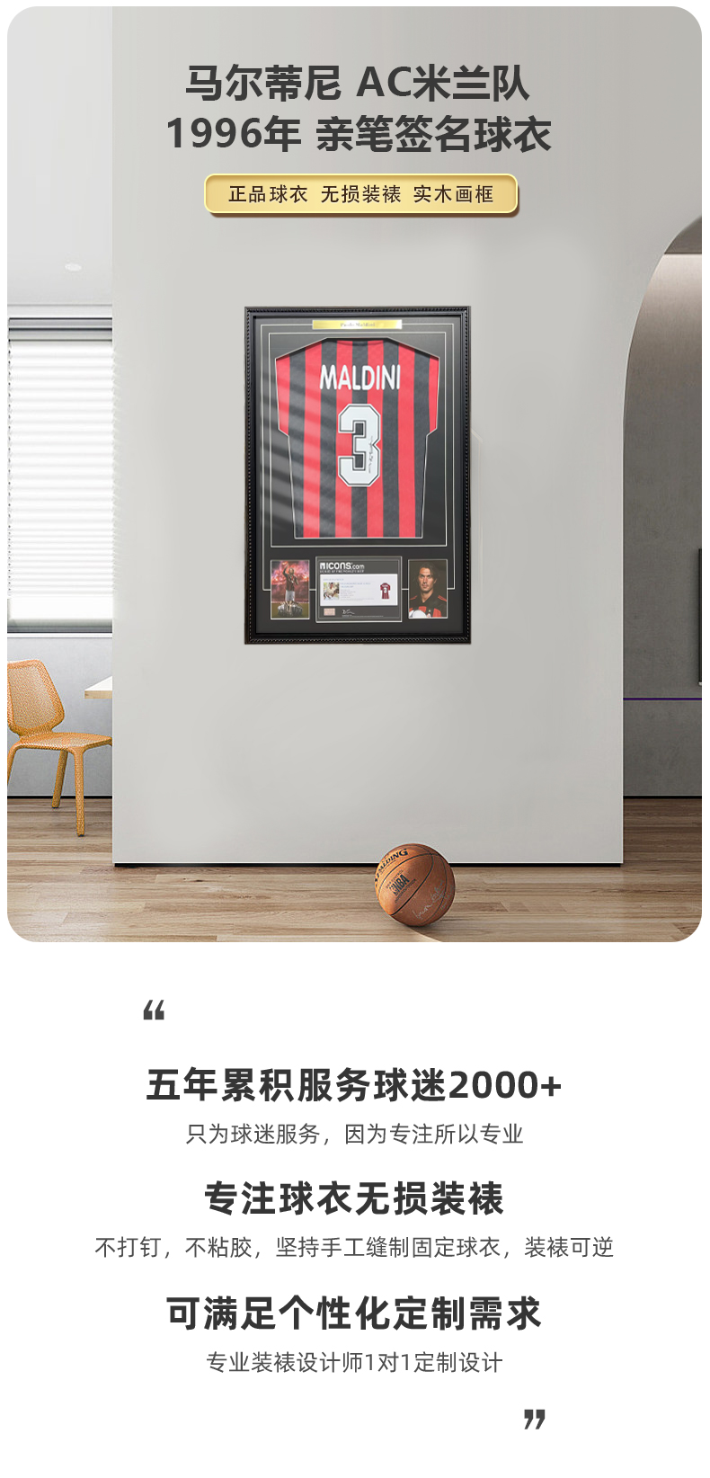 收藏系列 马尔蒂尼 AC米兰队 1996年 亲笔签名球衣