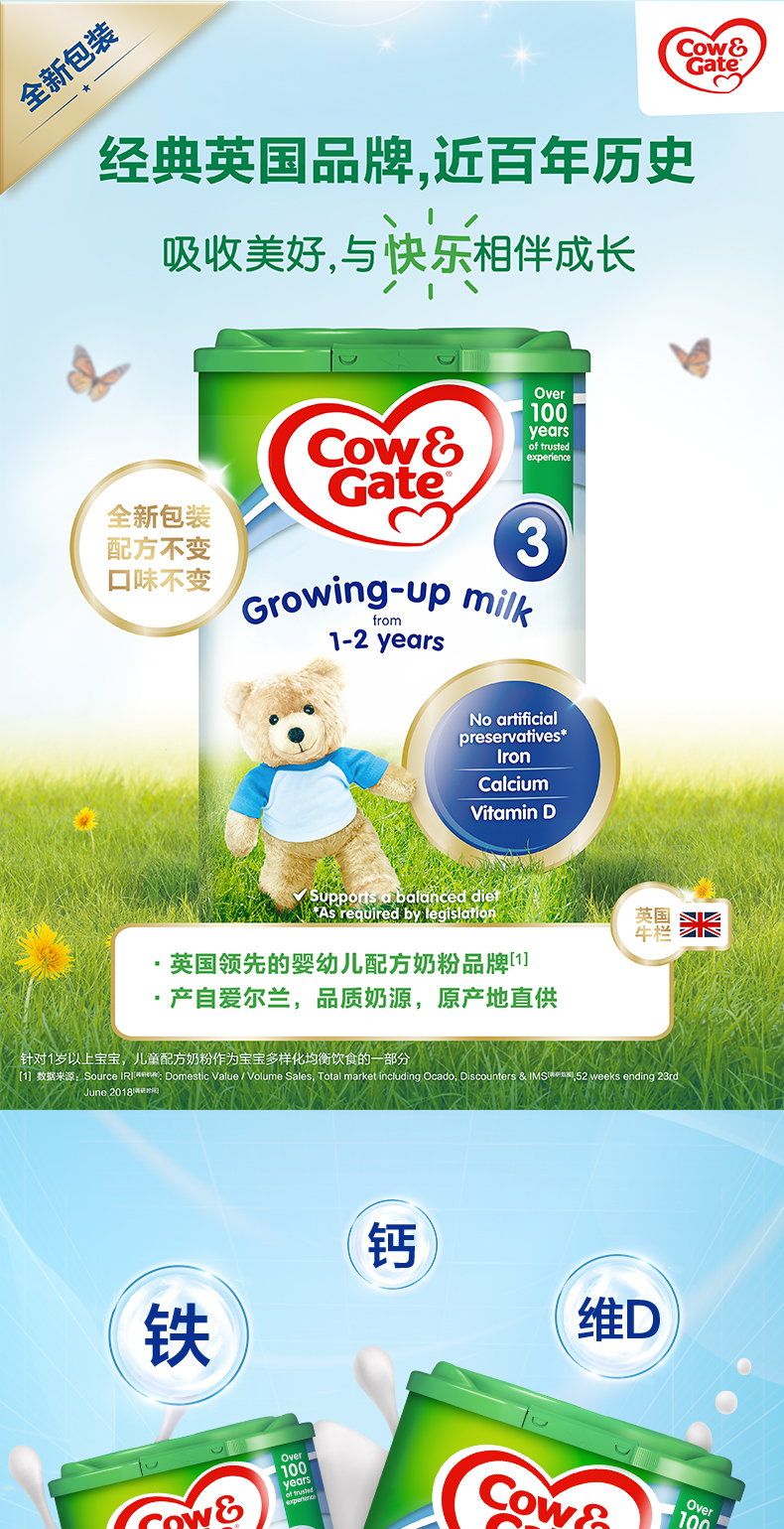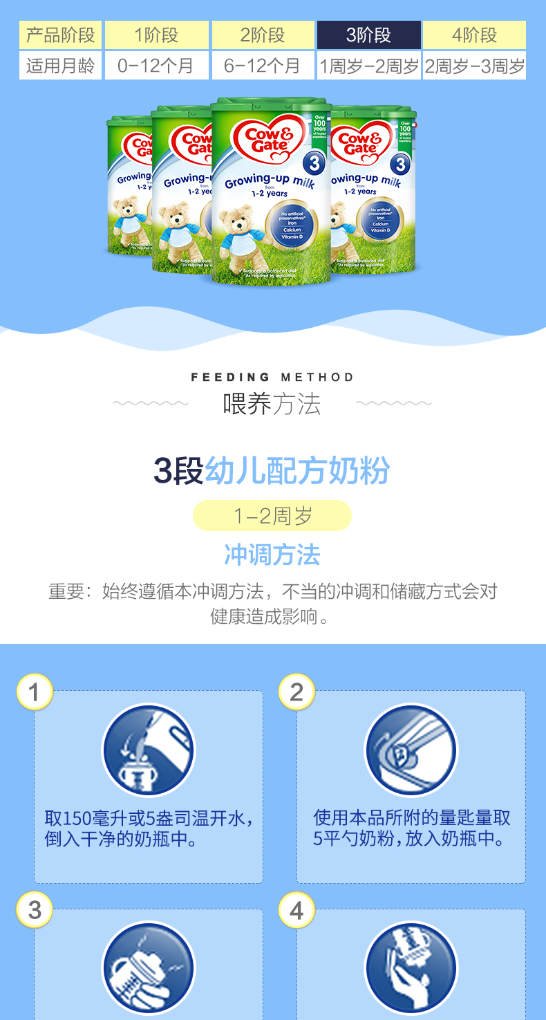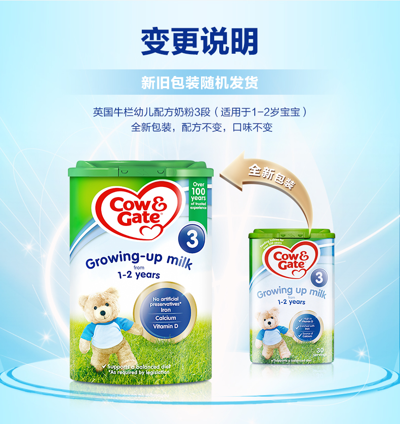HNMG (英国直邮)英国牛栏Cow&Gate恩贝儿奶粉 3段 (1-2岁)800g*4罐