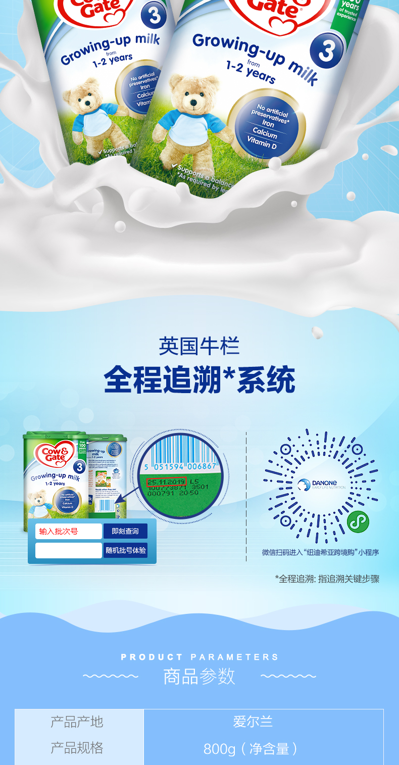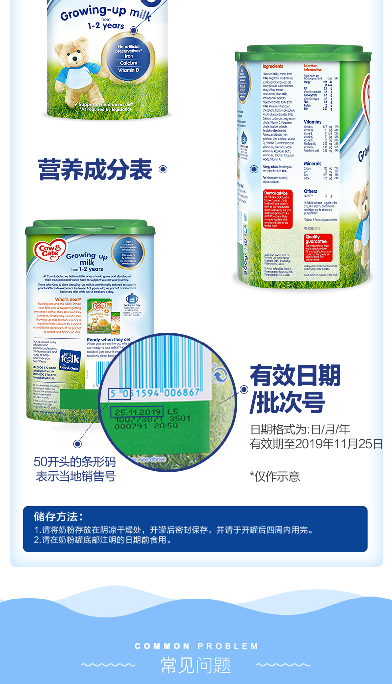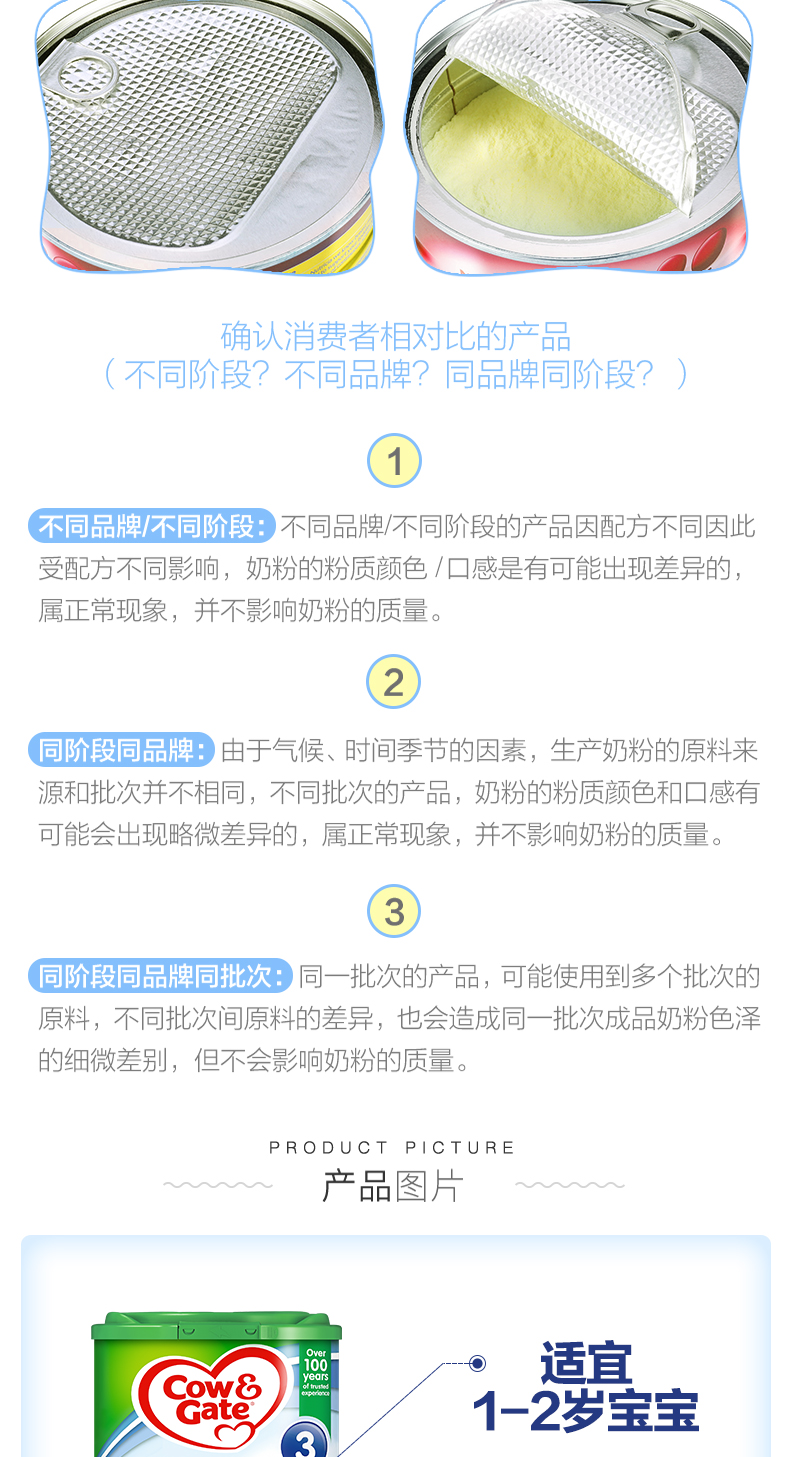 HNMG (英国直邮)英国牛栏Cow&Gate恩贝儿奶粉 3段 (1-2岁)800g*4罐