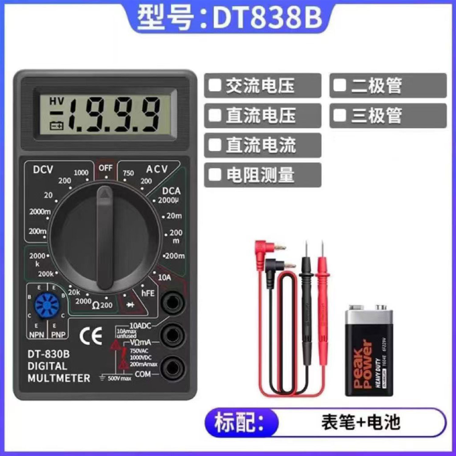 【货号07385】便携式小型万用表数字显示高精度维修电工电器电流表傻瓜式防烧测试表