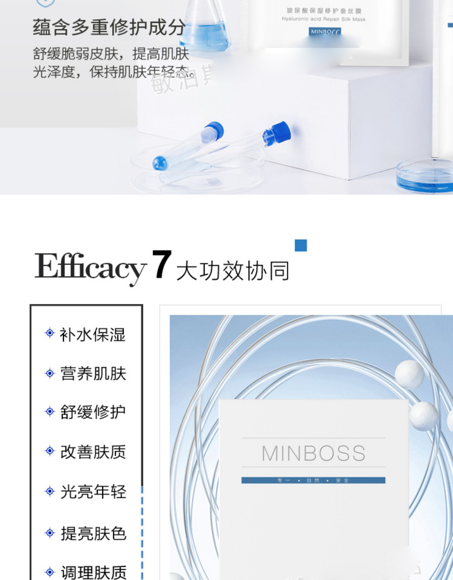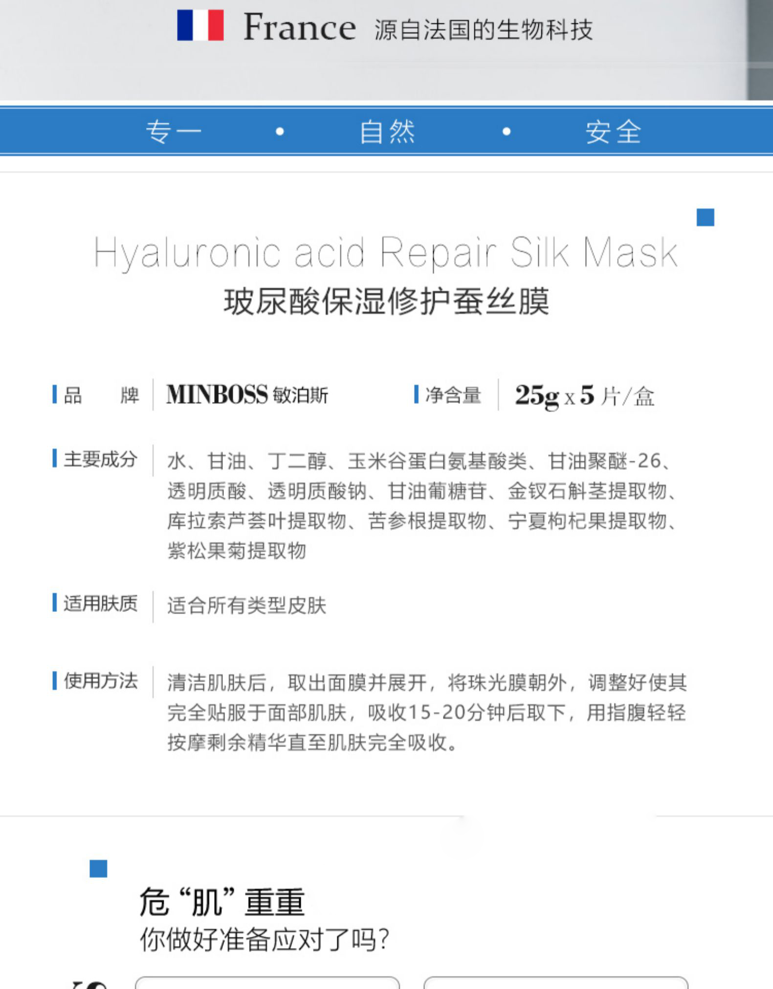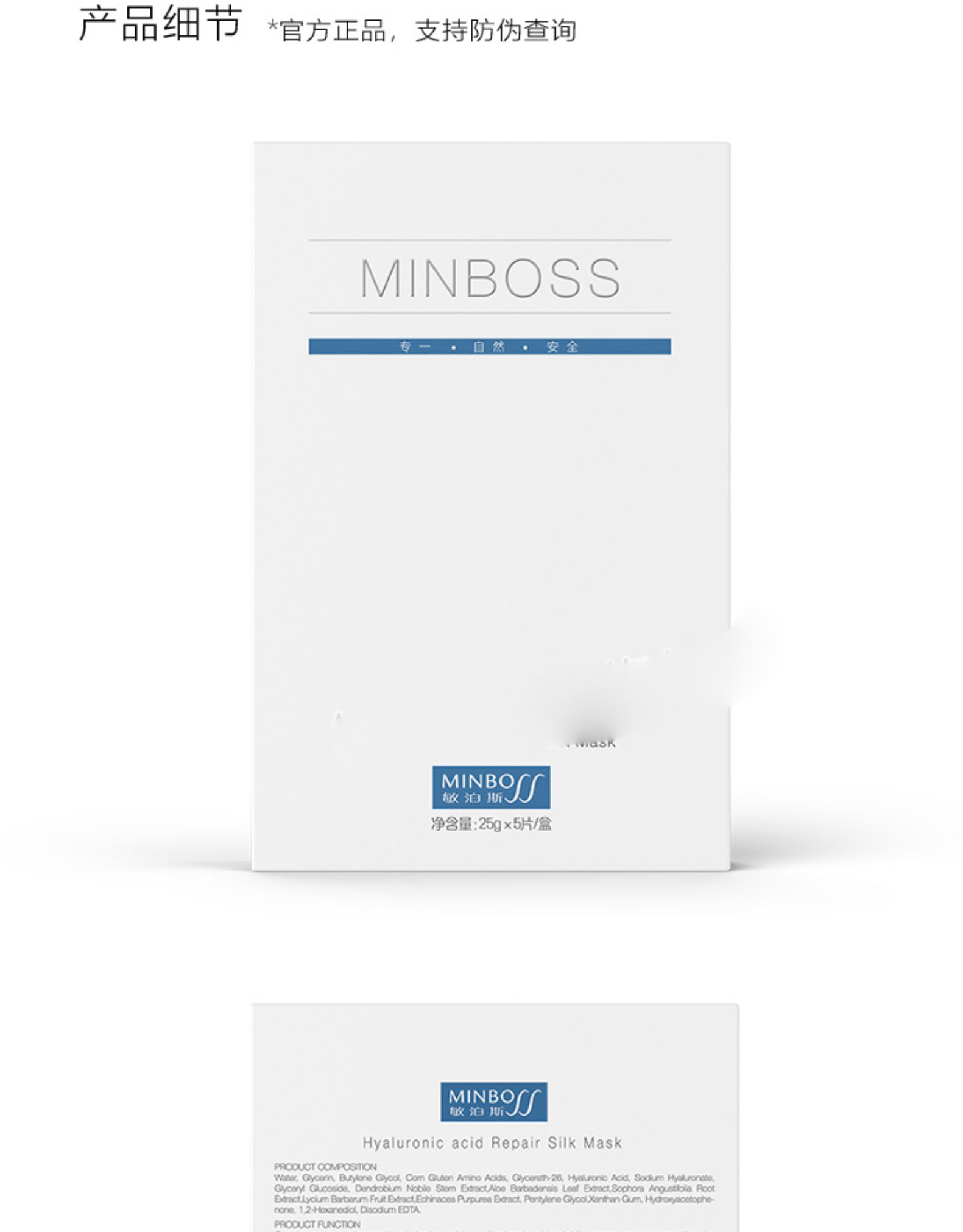 敏泊斯 | 玻尿酸保湿修护蚕丝膜 5片/盒 | 长效深层补水 莹润角质层 改善肤质