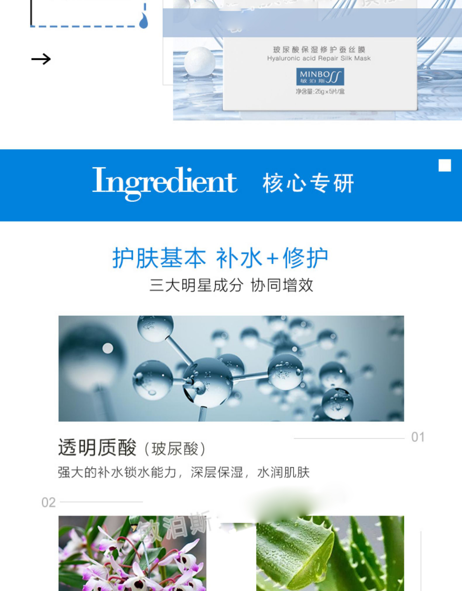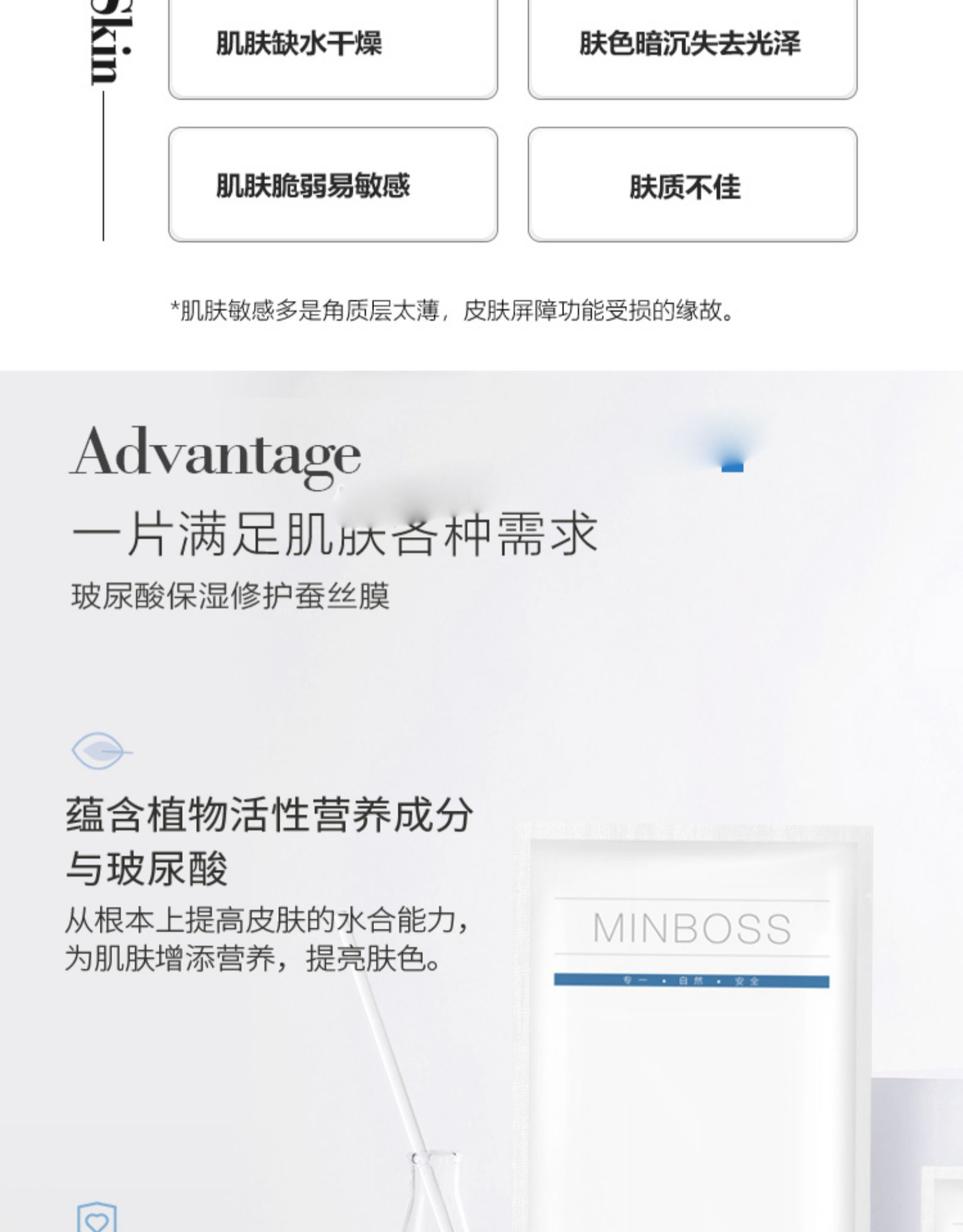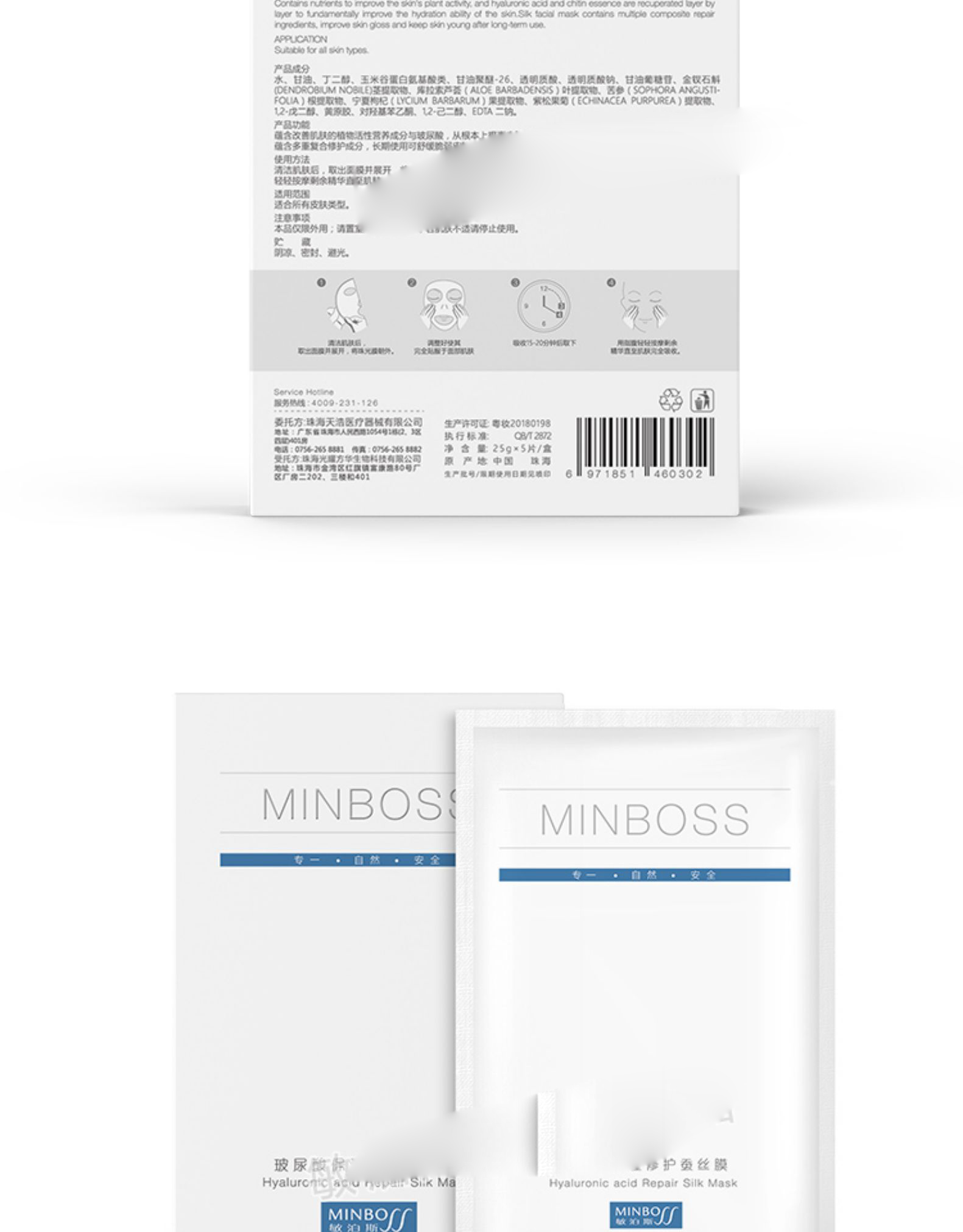 敏泊斯 | 玻尿酸保湿修护蚕丝膜 5片/盒 | 长效深层补水 莹润角质层 改善肤质