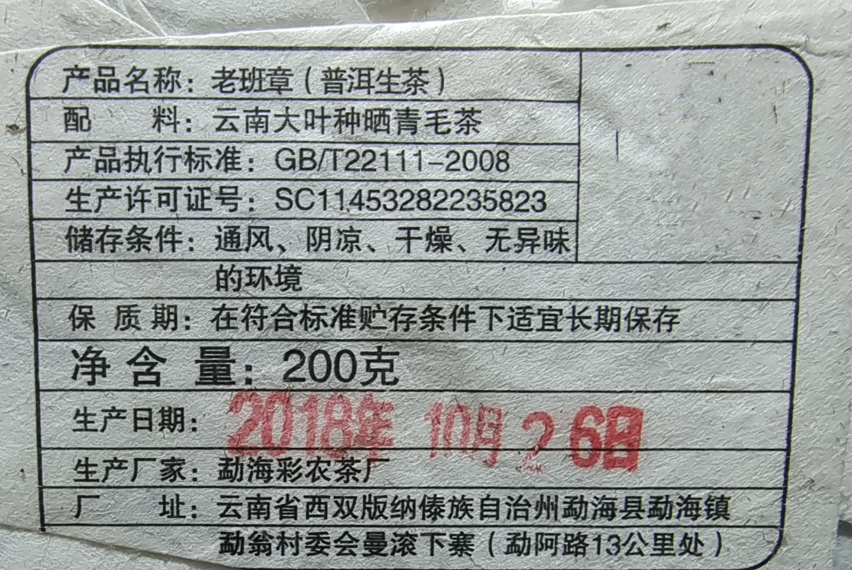 彩农茶|老班章2018秋古树纯料青饼