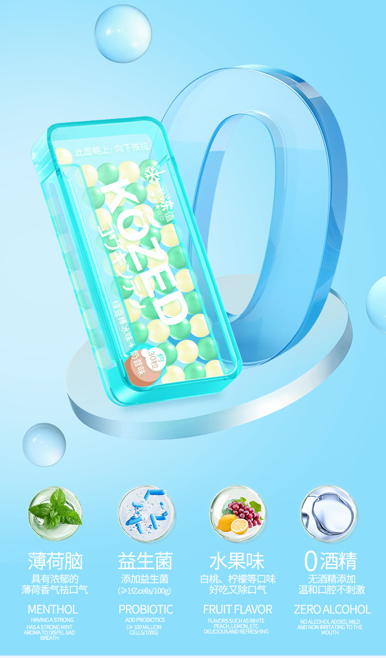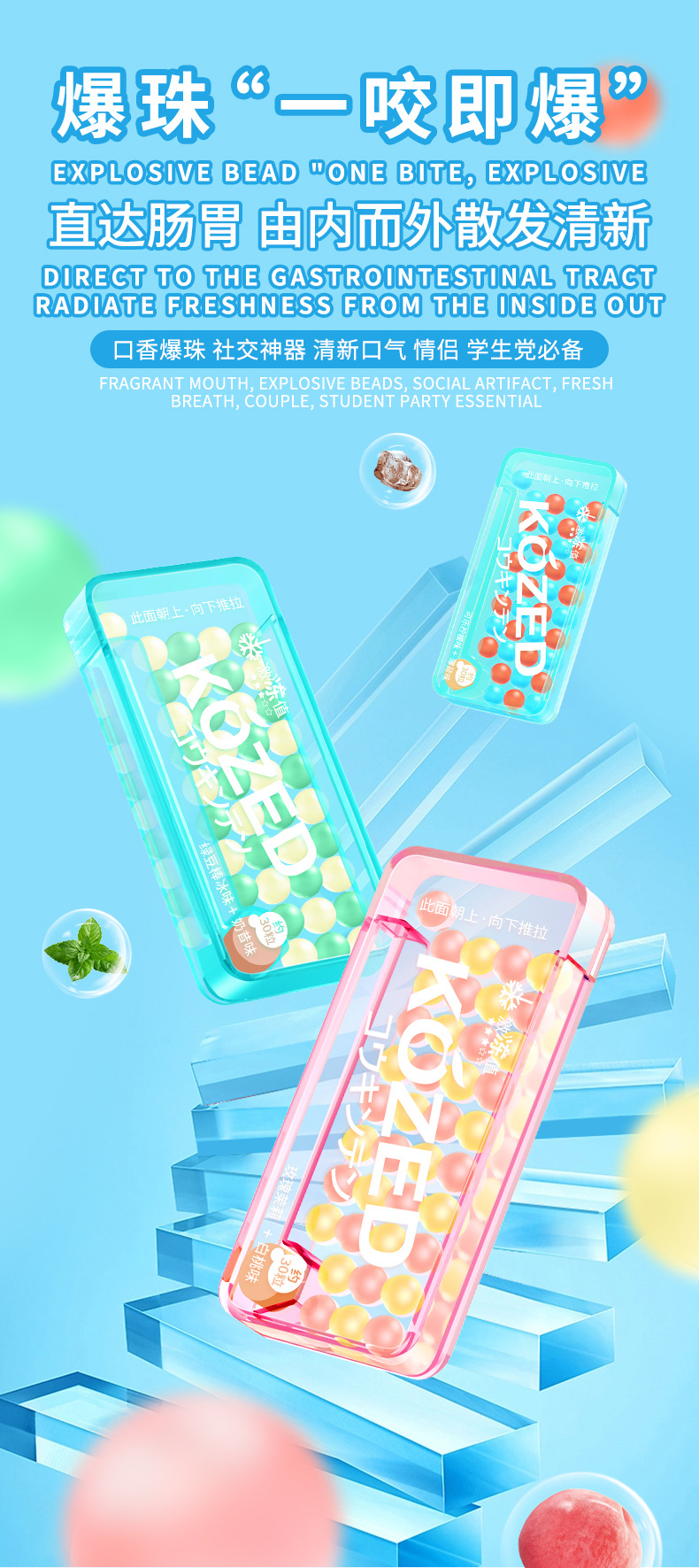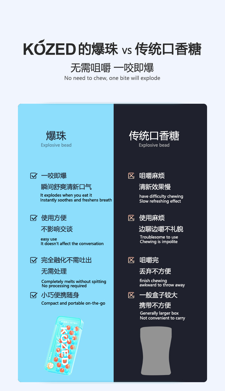 【一咬即“爆”❗️KOZED口香爆珠糖】爆珠设计入口即融,冰爽薄荷味/可乐柠檬味/绿豆棒冰/奶昔味/茉莉玫瑰白桃味可选,爆珠口感冰爽刺激,随时清新口气,益生菌口香糖薄荷糖男生女生亲嘴神器L