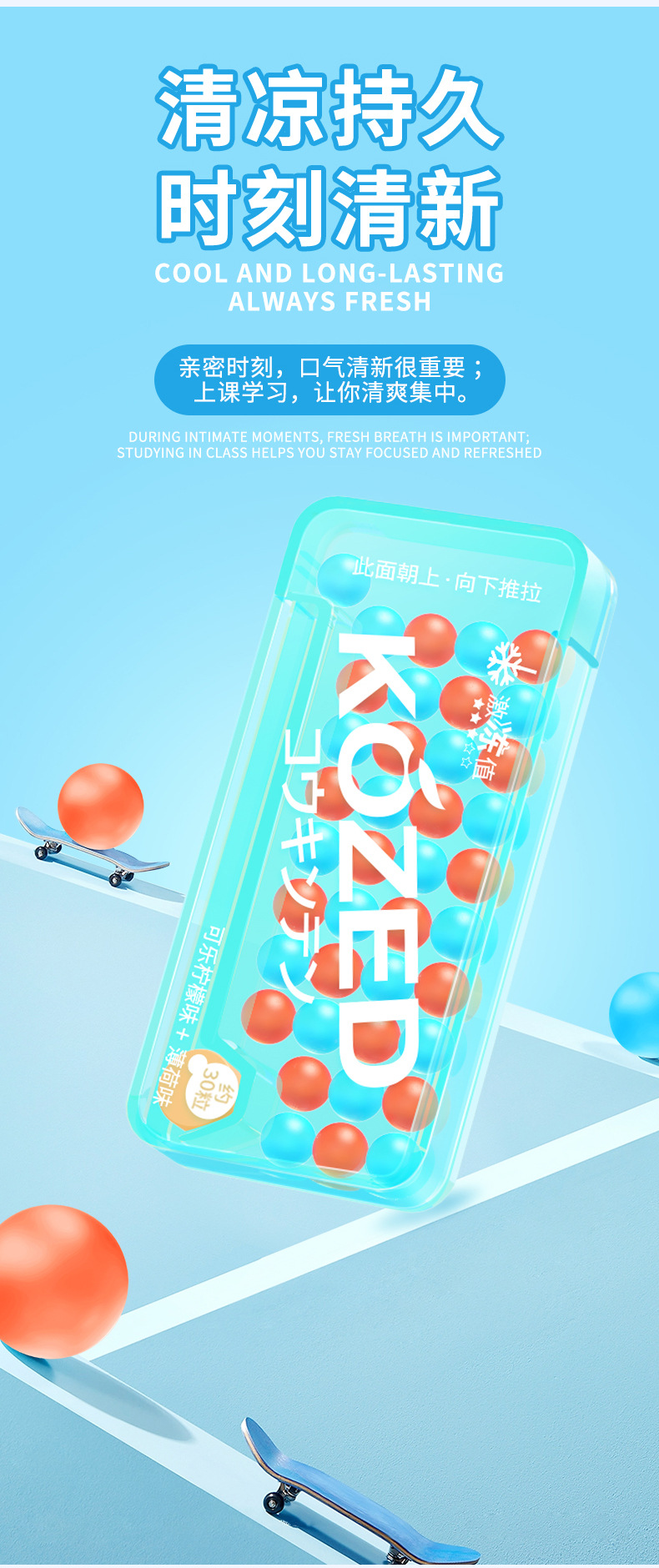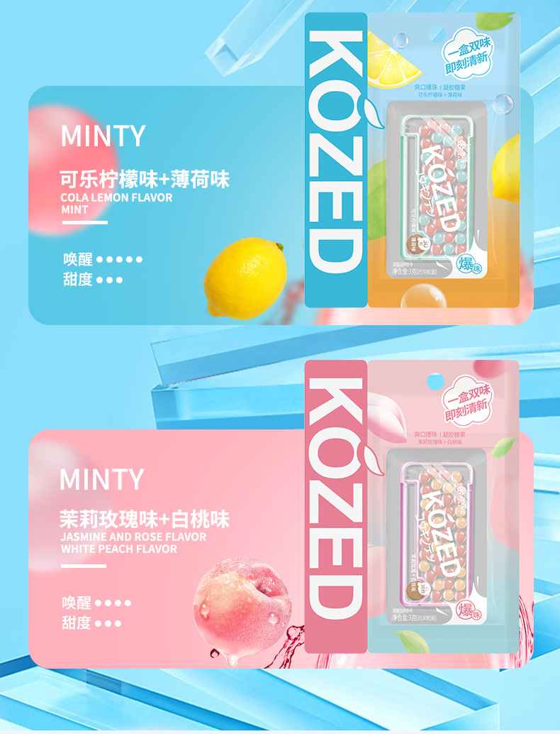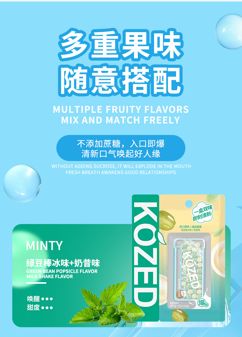 【一咬即“爆”❗️KOZED口香爆珠糖】爆珠设计入口即融,冰爽薄荷味/可乐柠檬味/绿豆棒冰/奶昔味/茉莉玫瑰白桃味可选,爆珠口感冰爽刺激,随时清新口气,益生菌口香糖薄荷糖男生女生亲嘴神器L