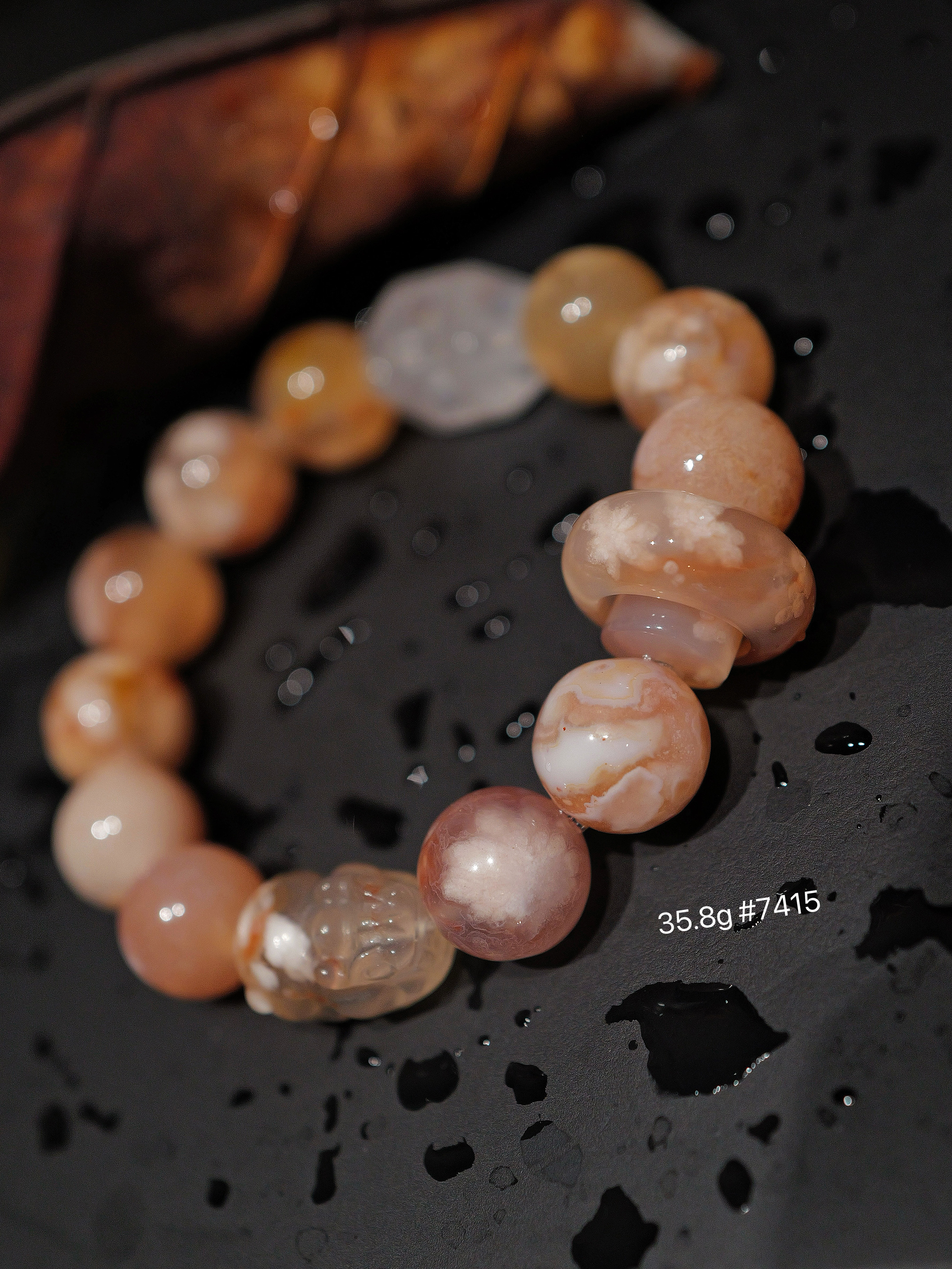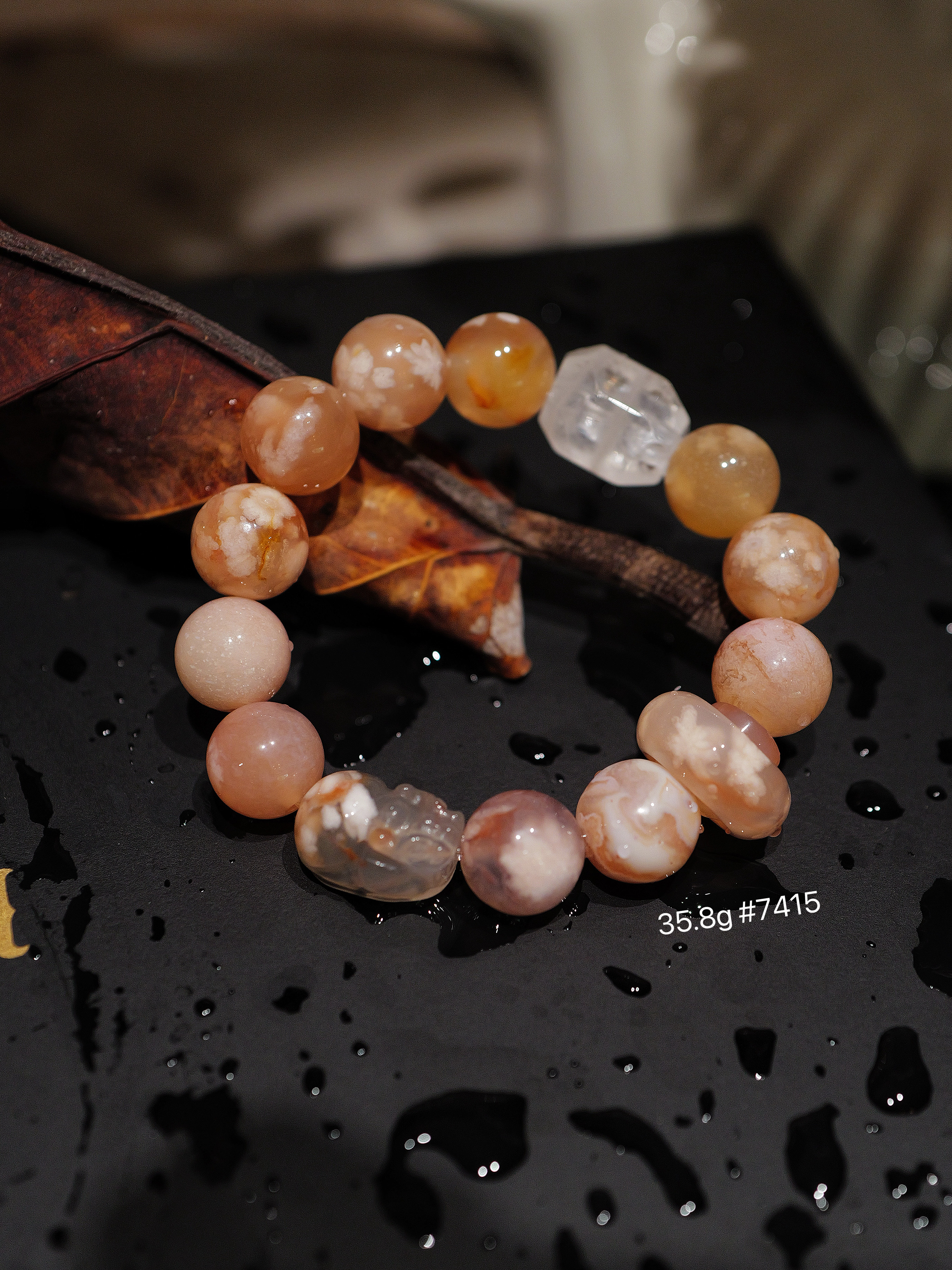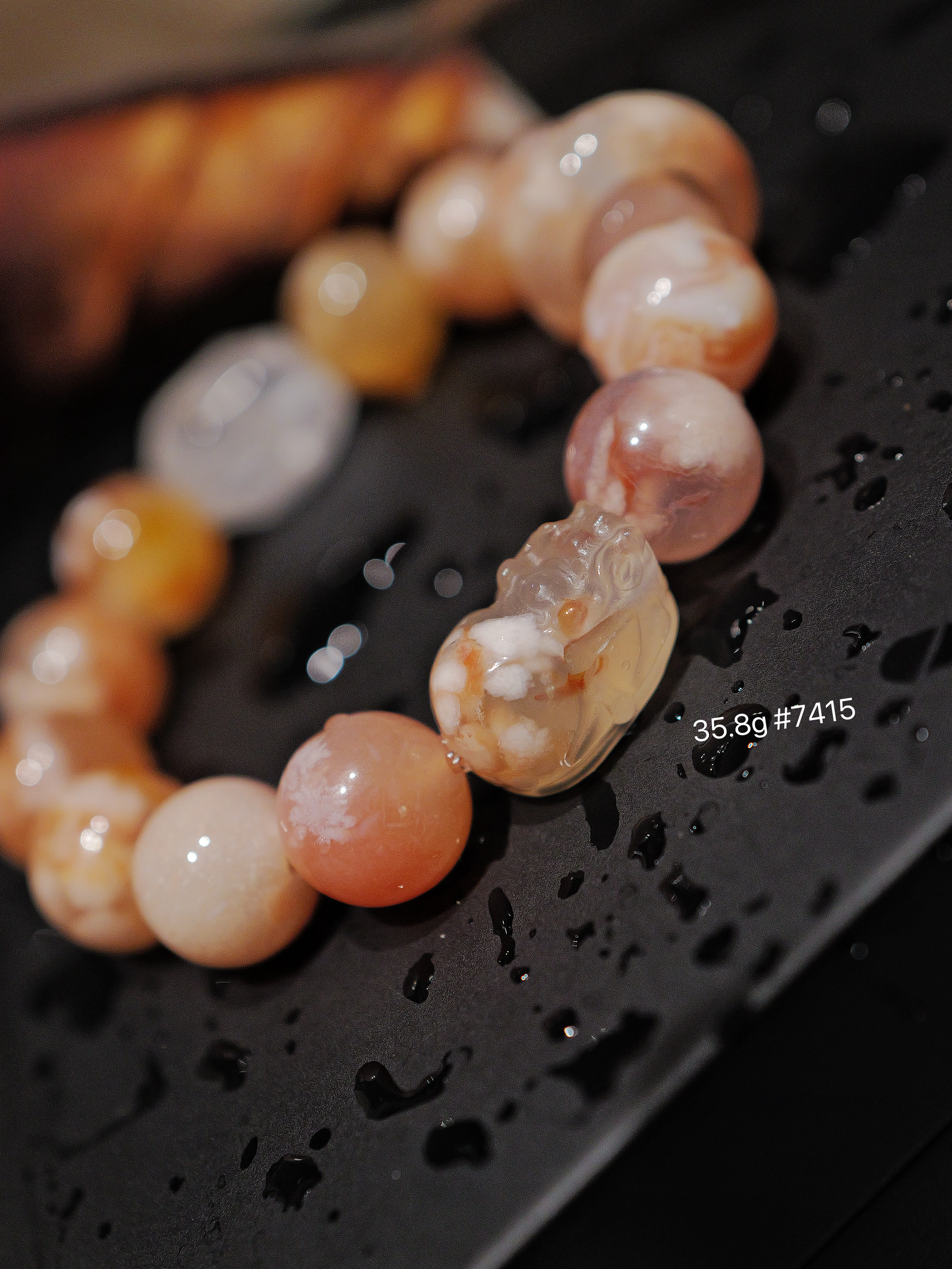 13MM樱花玛瑙+马达加斯加樱花玛瑙貔貅