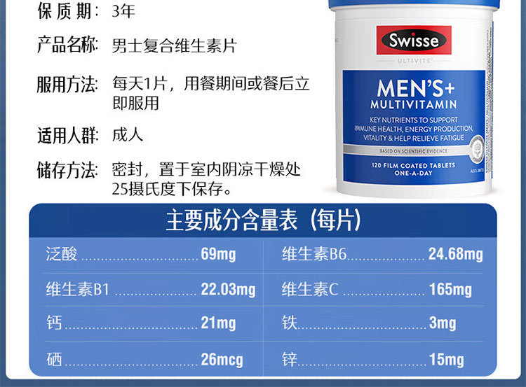 【跨境直供】澳洲swisse男性复合维生素 120片