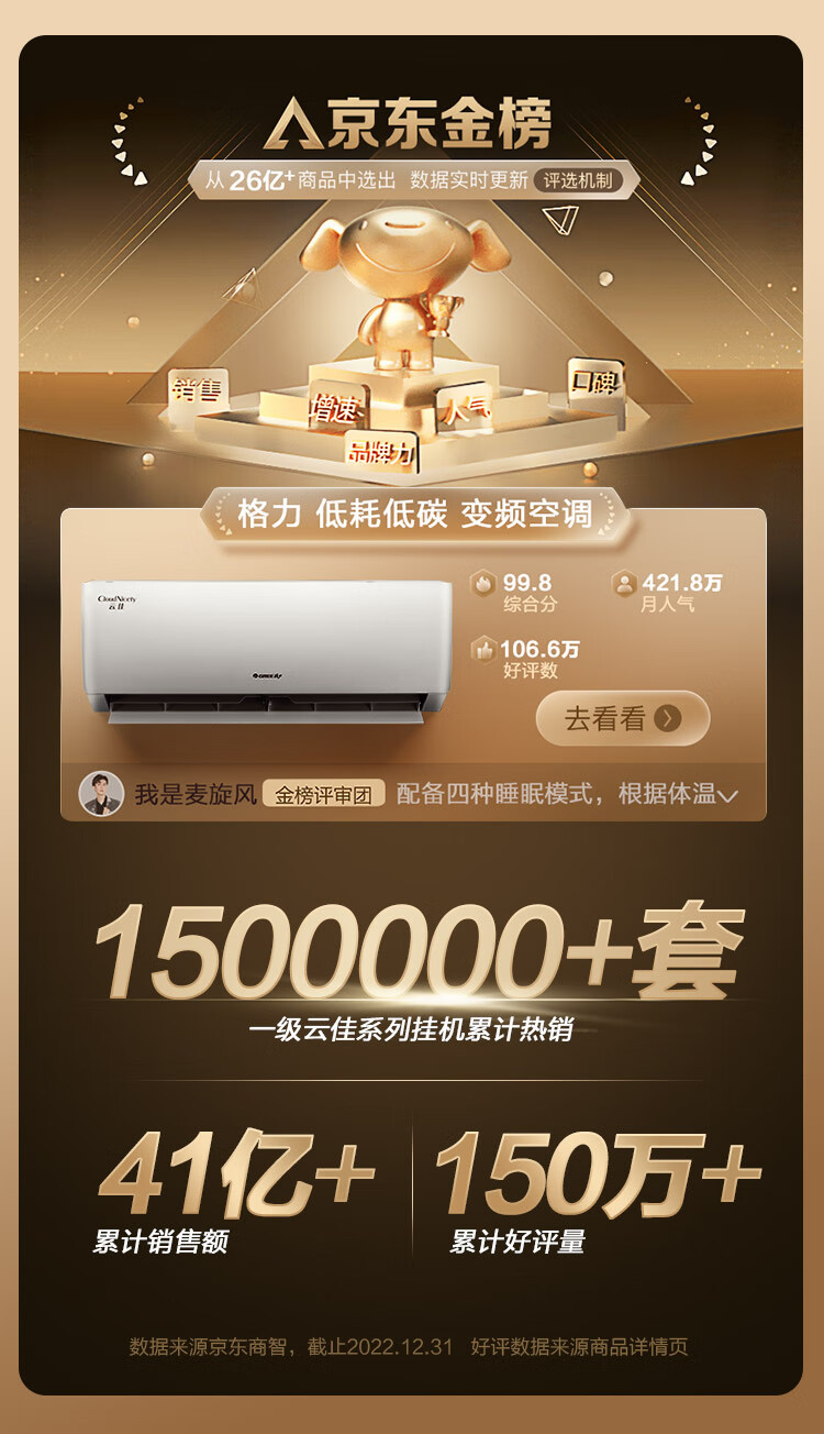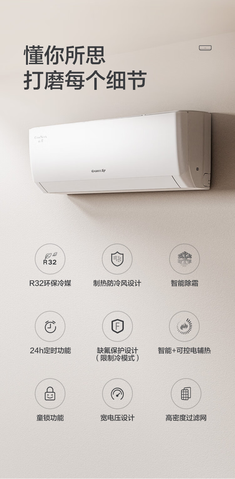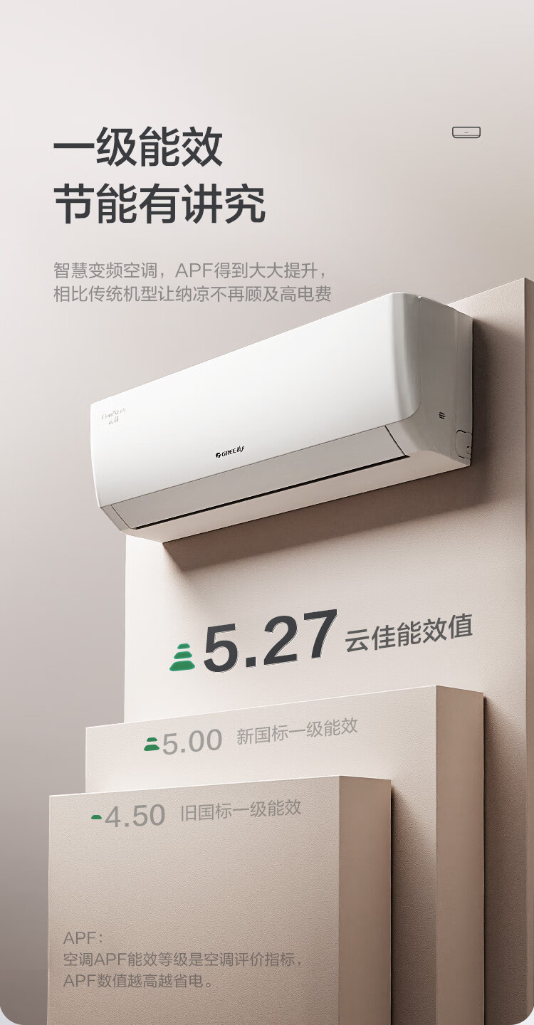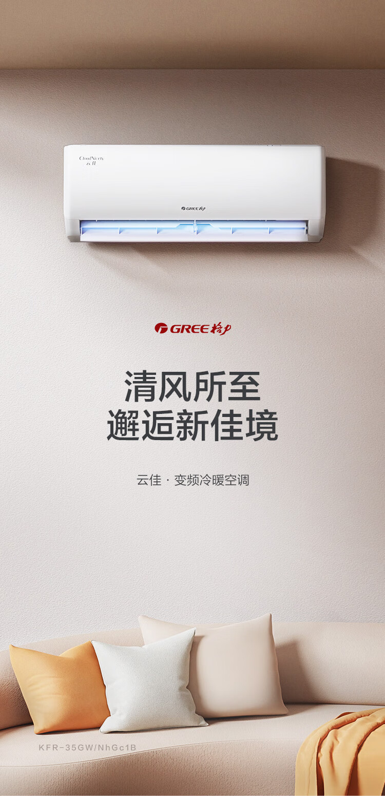 格力(GREE)1.5匹 云佳 新一级能效 变频冷暖 自清洁 壁挂式空调挂机KFR-35GW/NhGc1B