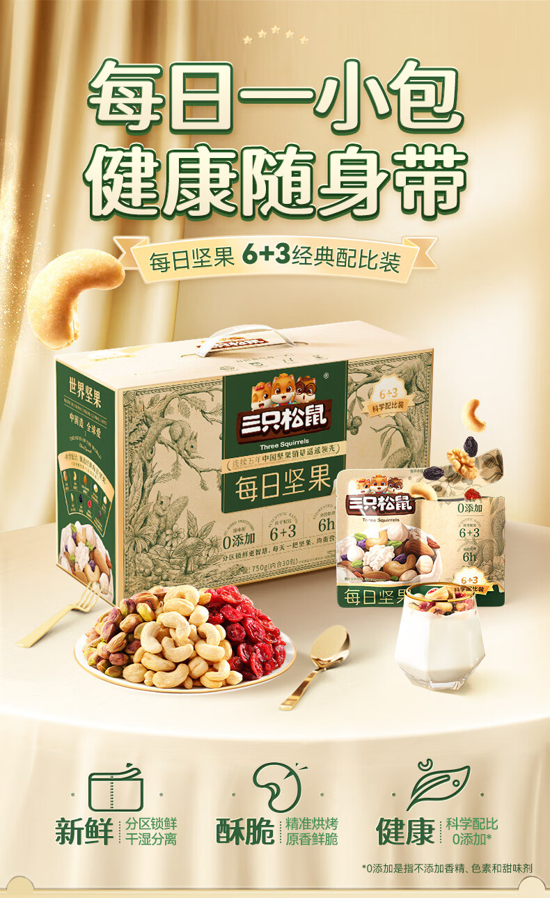 三只松鼠每日坚果 750g/30袋 儿童孕妇零食节日大礼包送女友混合干果节日礼盒腰果葡萄干核桃仁开心果