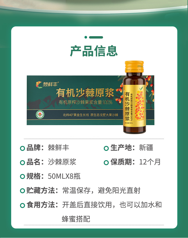 棘鲜丰沙棘原浆 50ml*8瓶