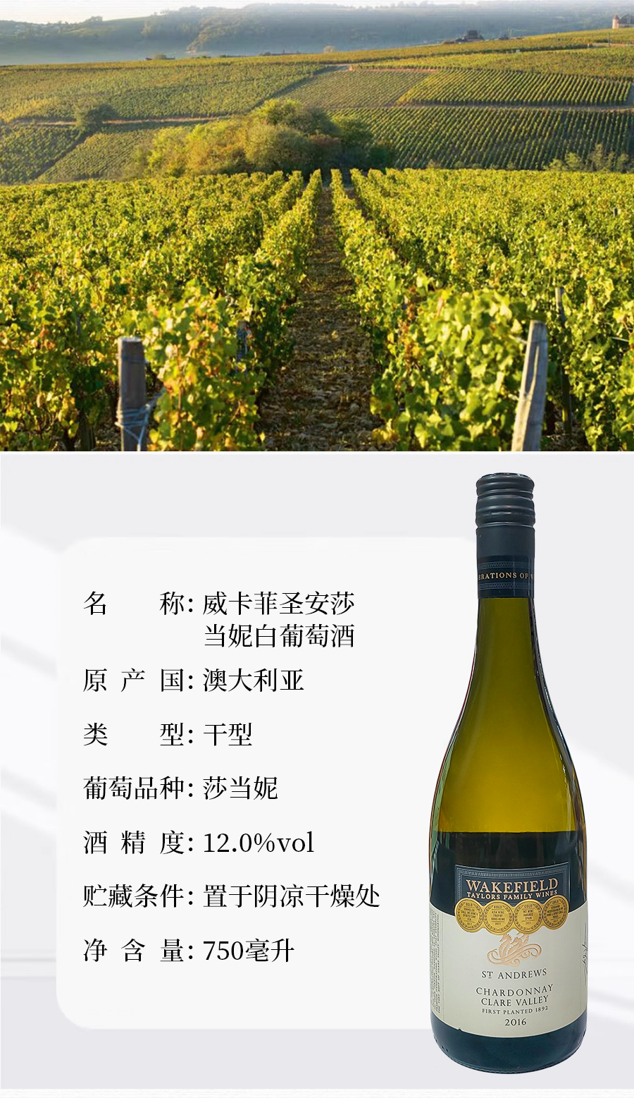 澳大利亚进口威卡菲圣安莎当妮白葡萄酒750ml