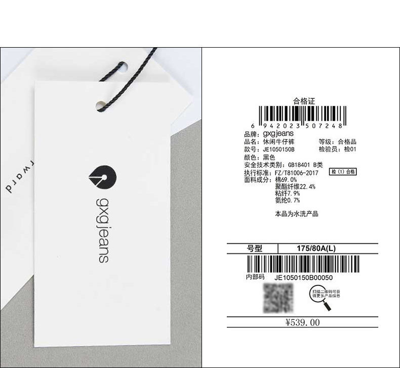 gxg.jeans男装黑色休闲简约长裤牛仔裤春季热卖牛仔长裤JE1050150B