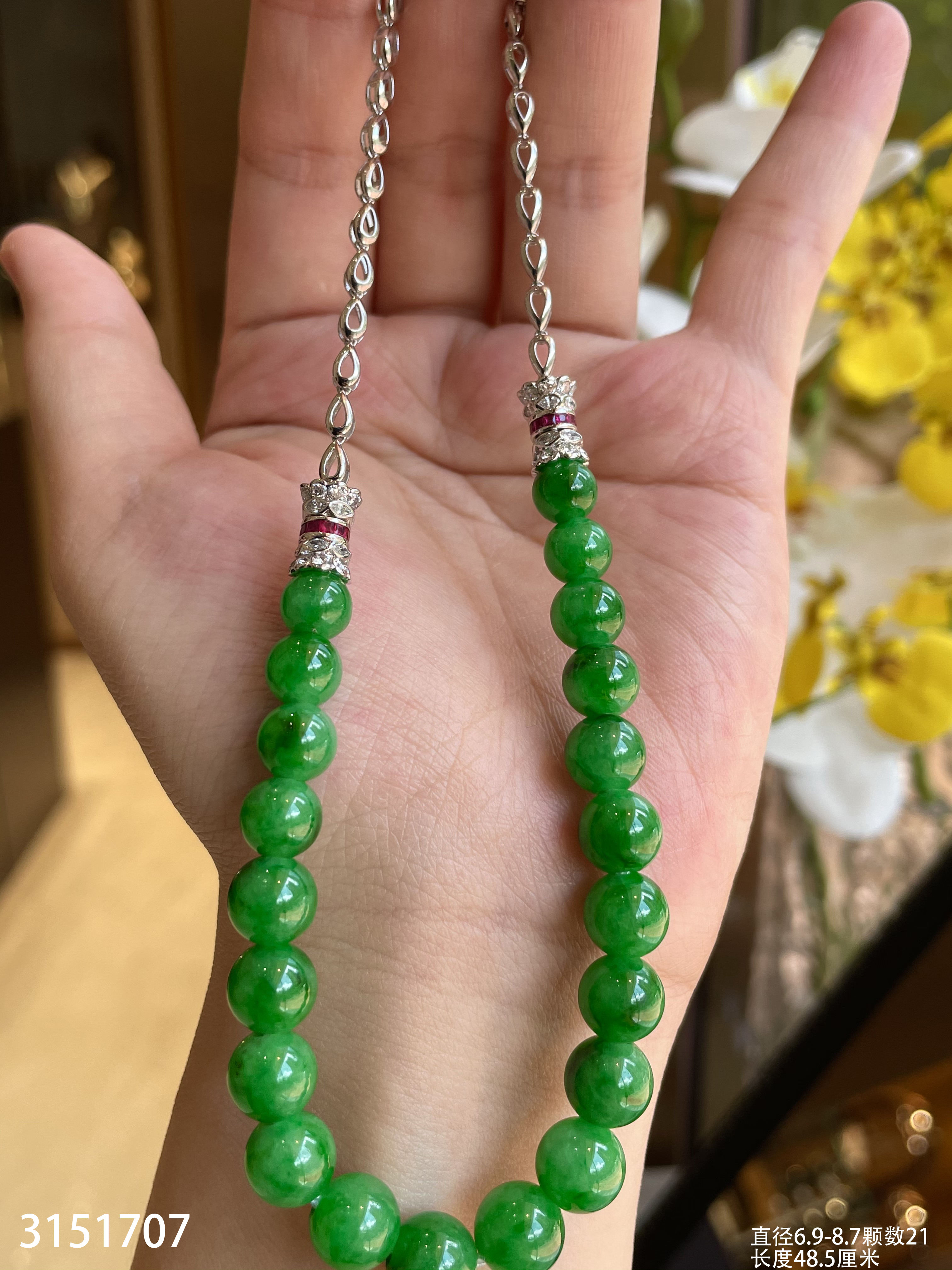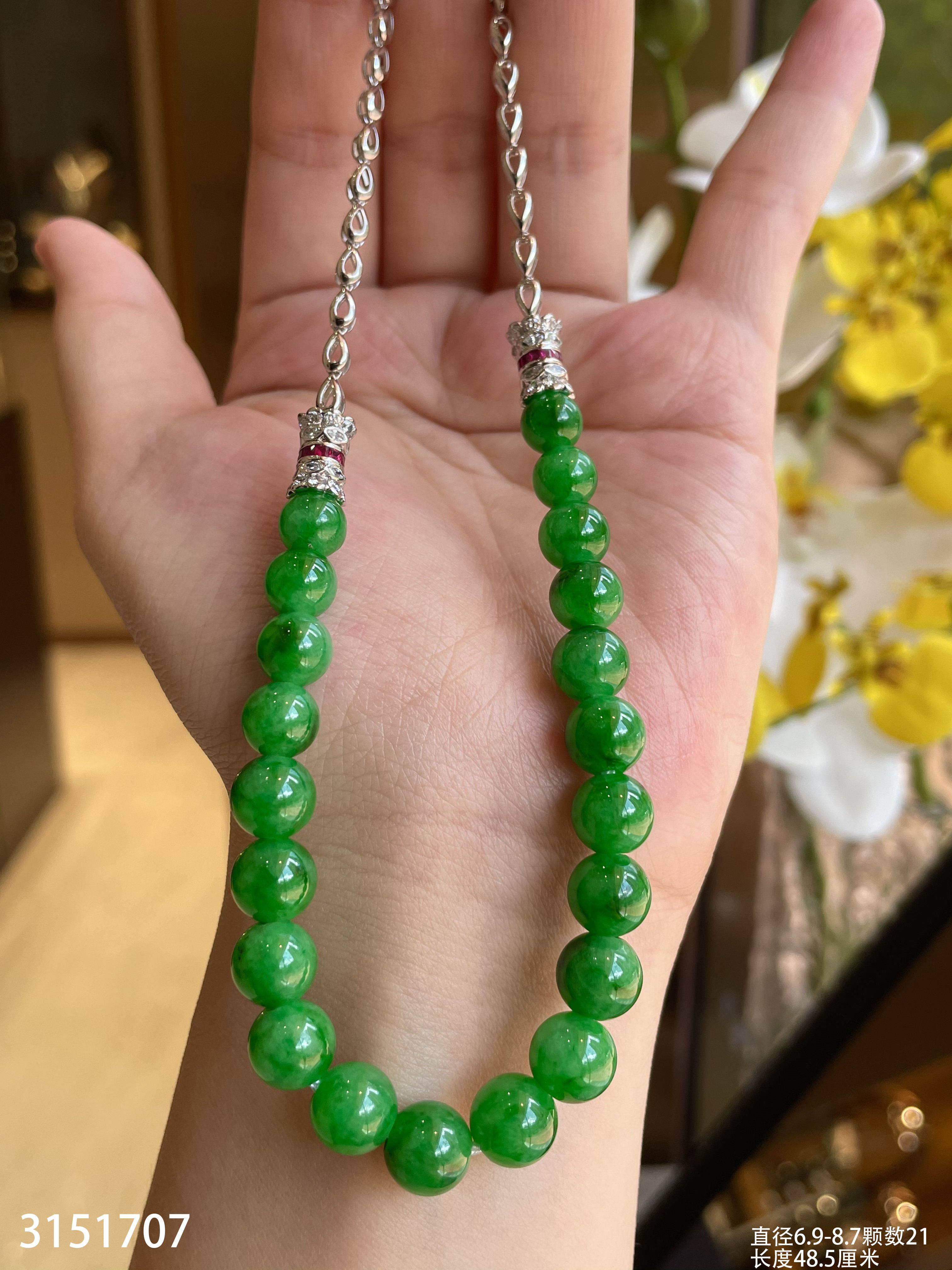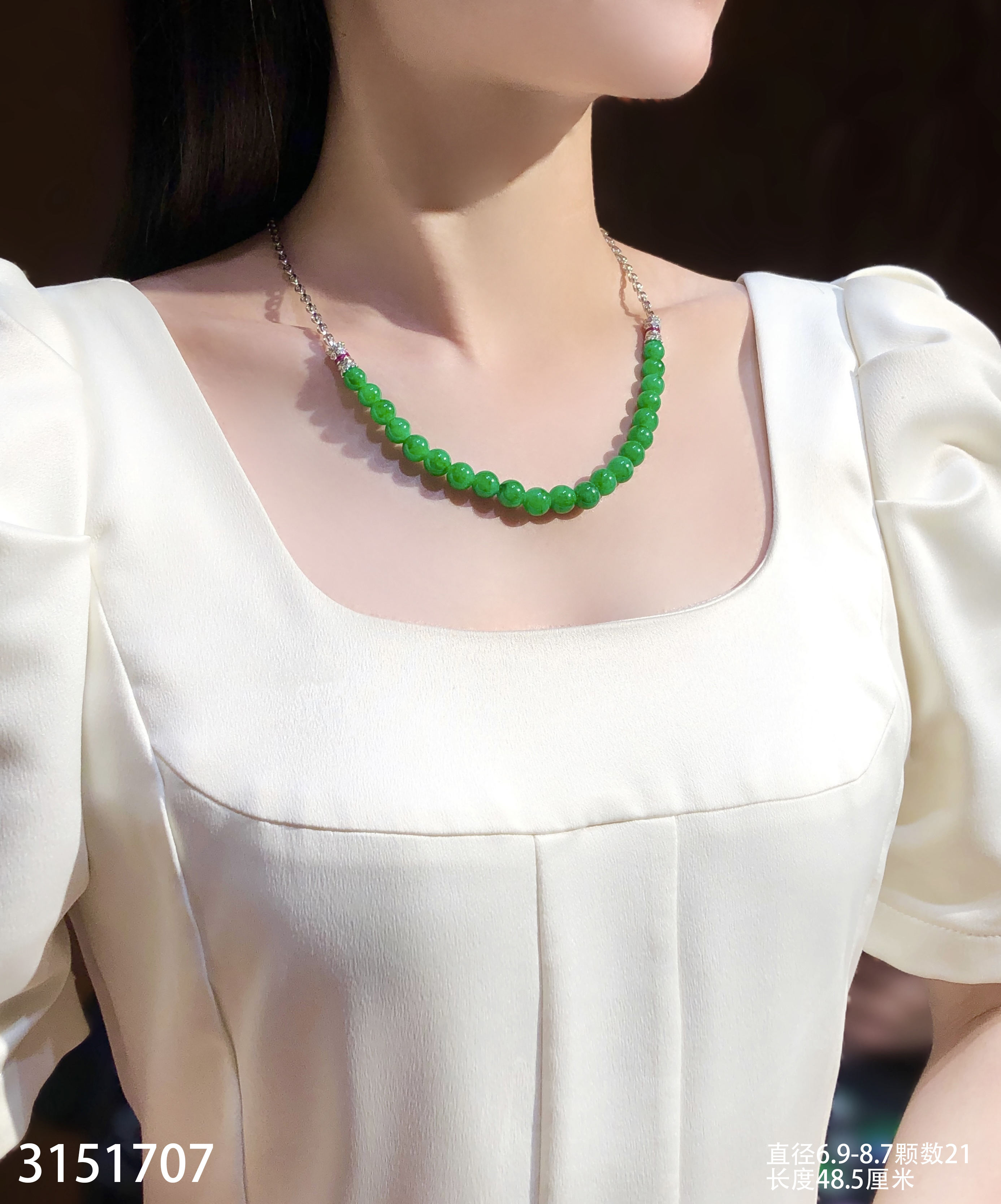 冰糯艳绿珠子套链【3151707】具体价格微信咨询