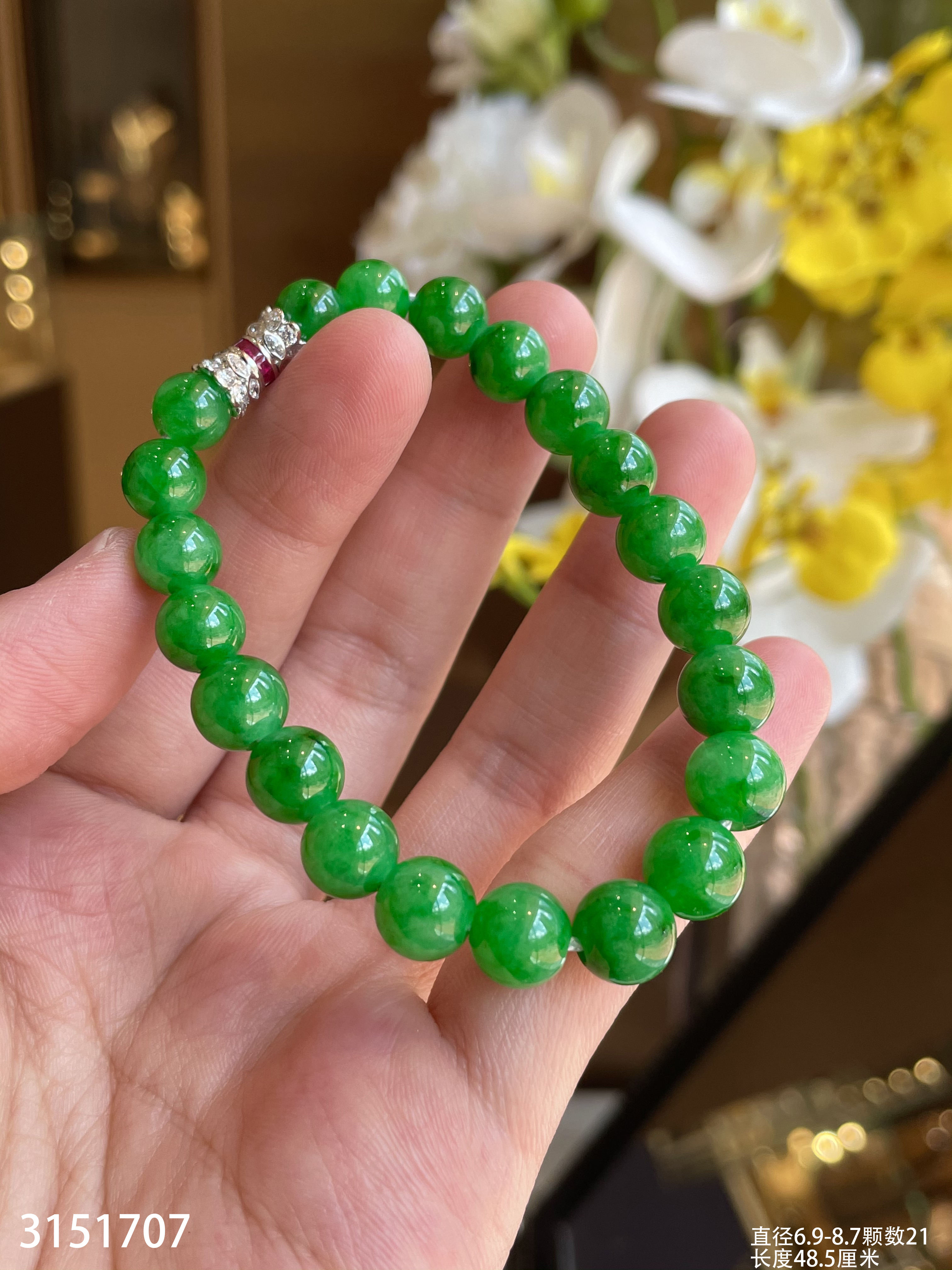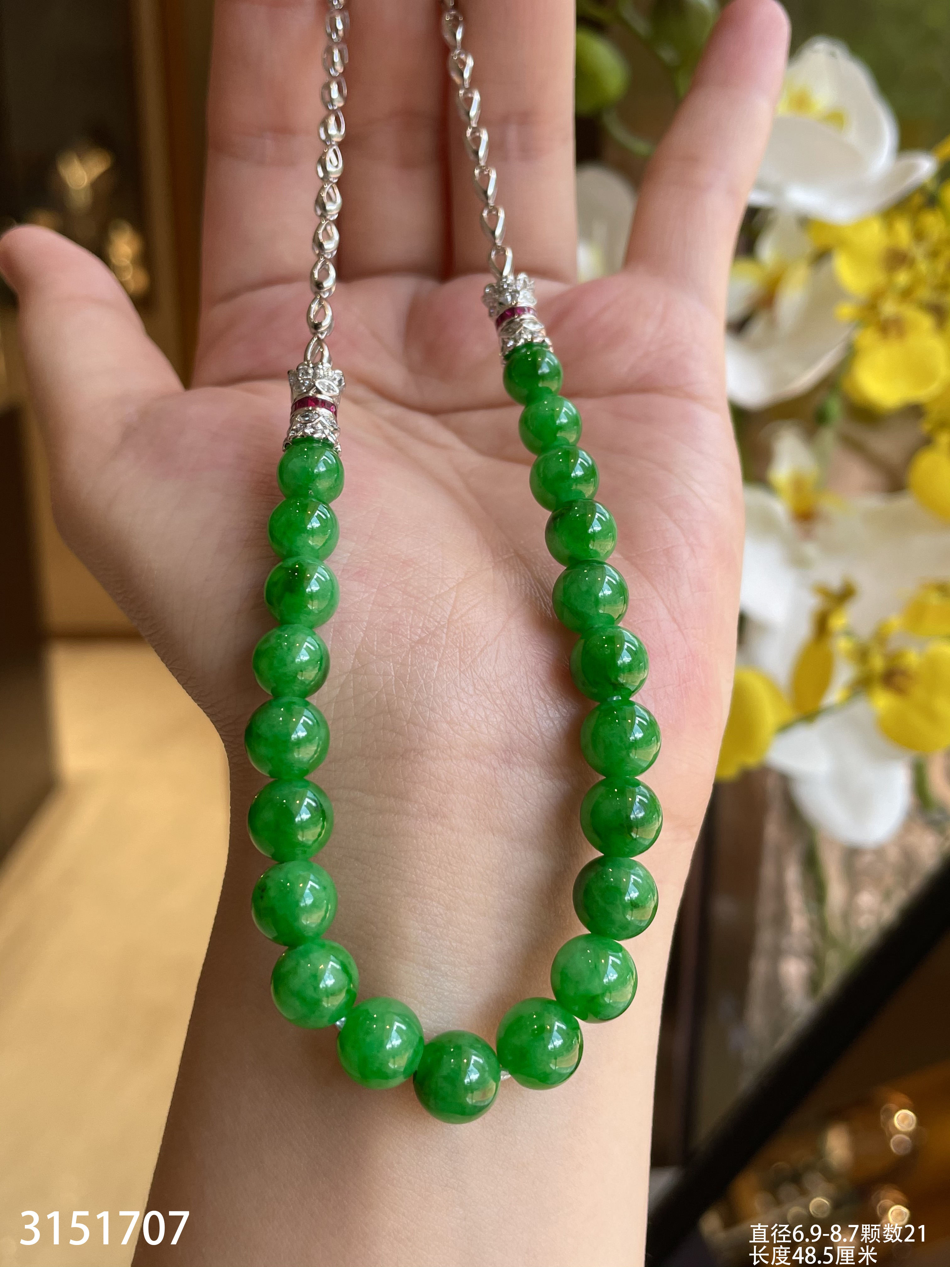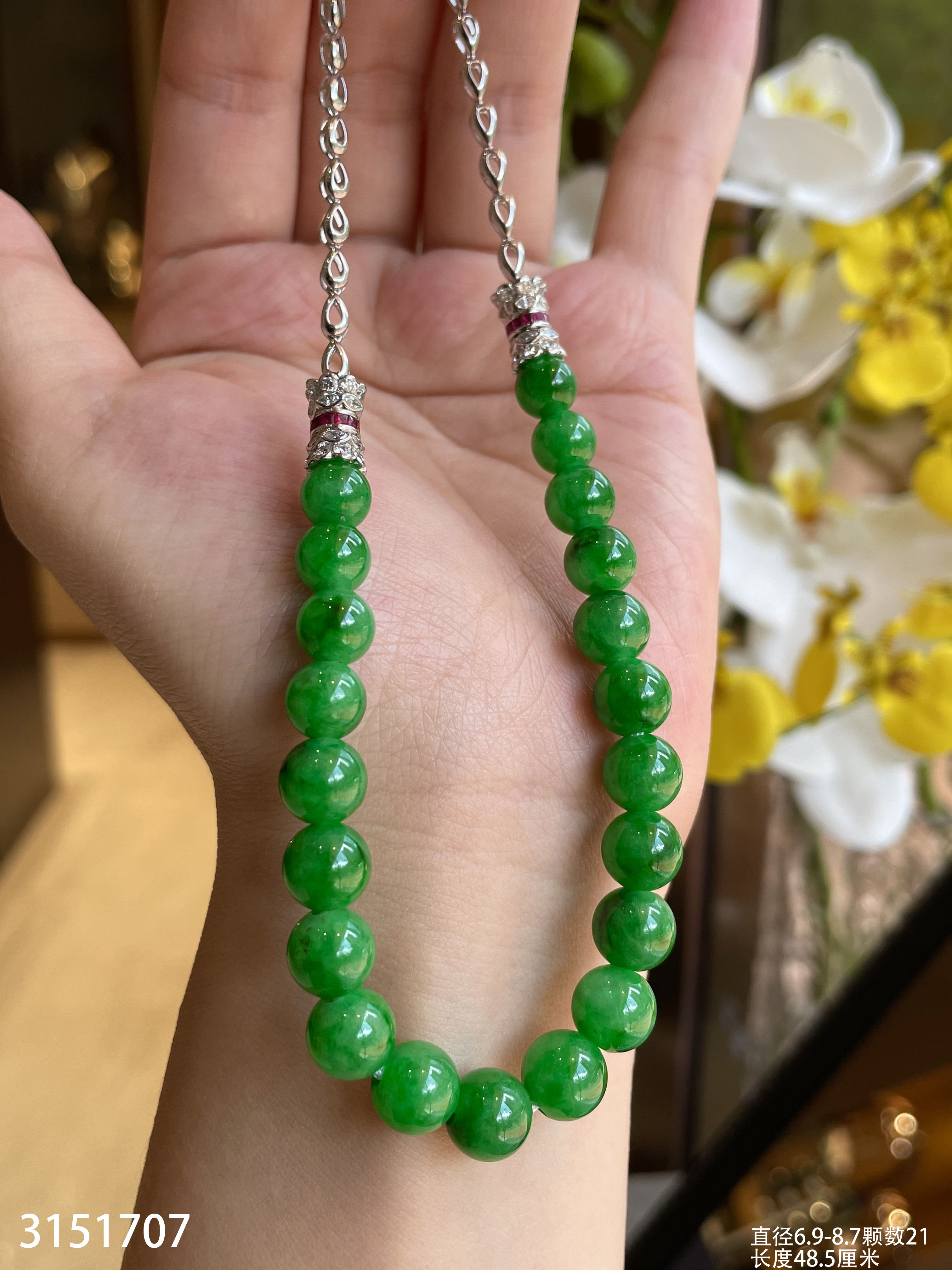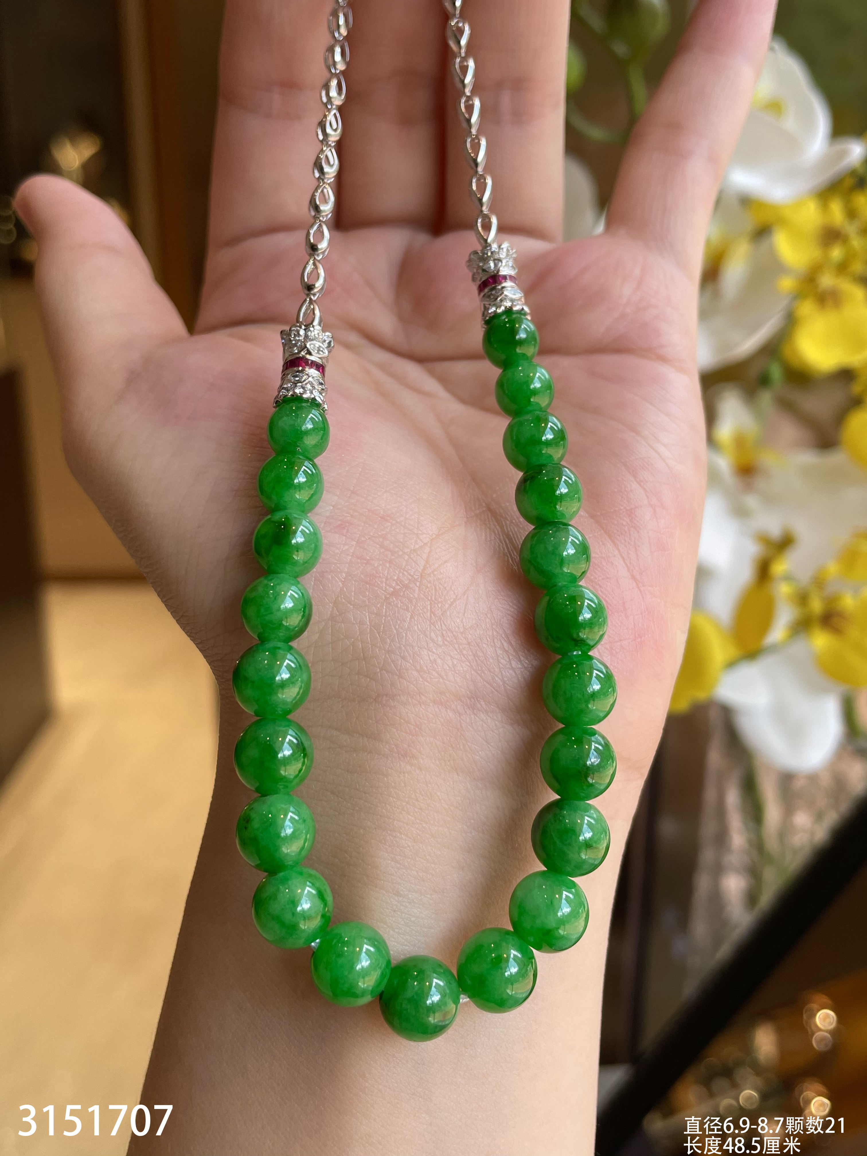 冰糯艳绿珠子套链【3151707】具体价格微信咨询